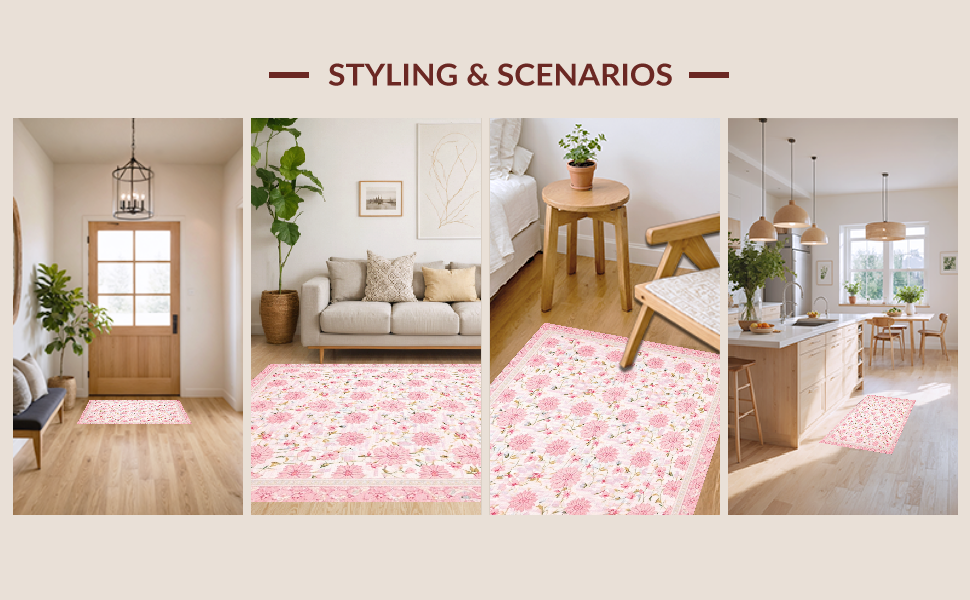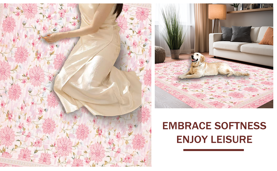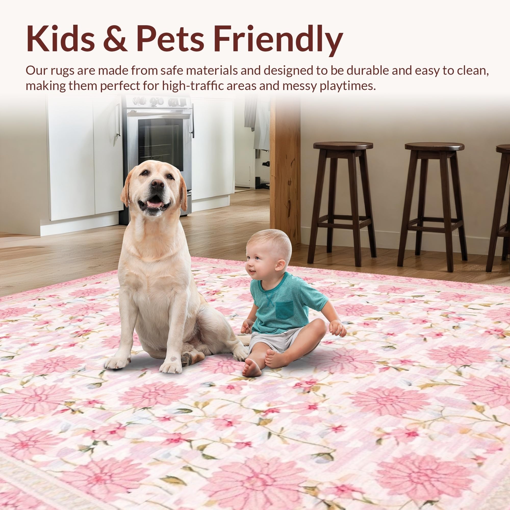 Ultra Soft Area Rug, Non Slip, Stain Resistant, Washable Area Rugs for Living Room, Bedroom, Vibrant Daisy Pattern Delight(Pink) Overview: