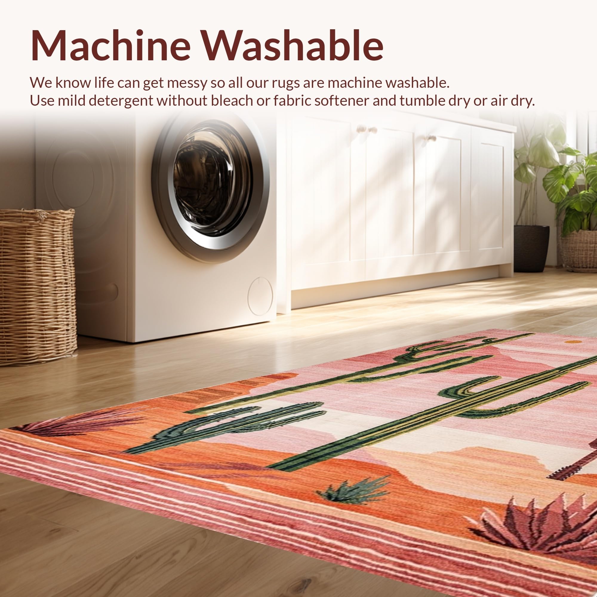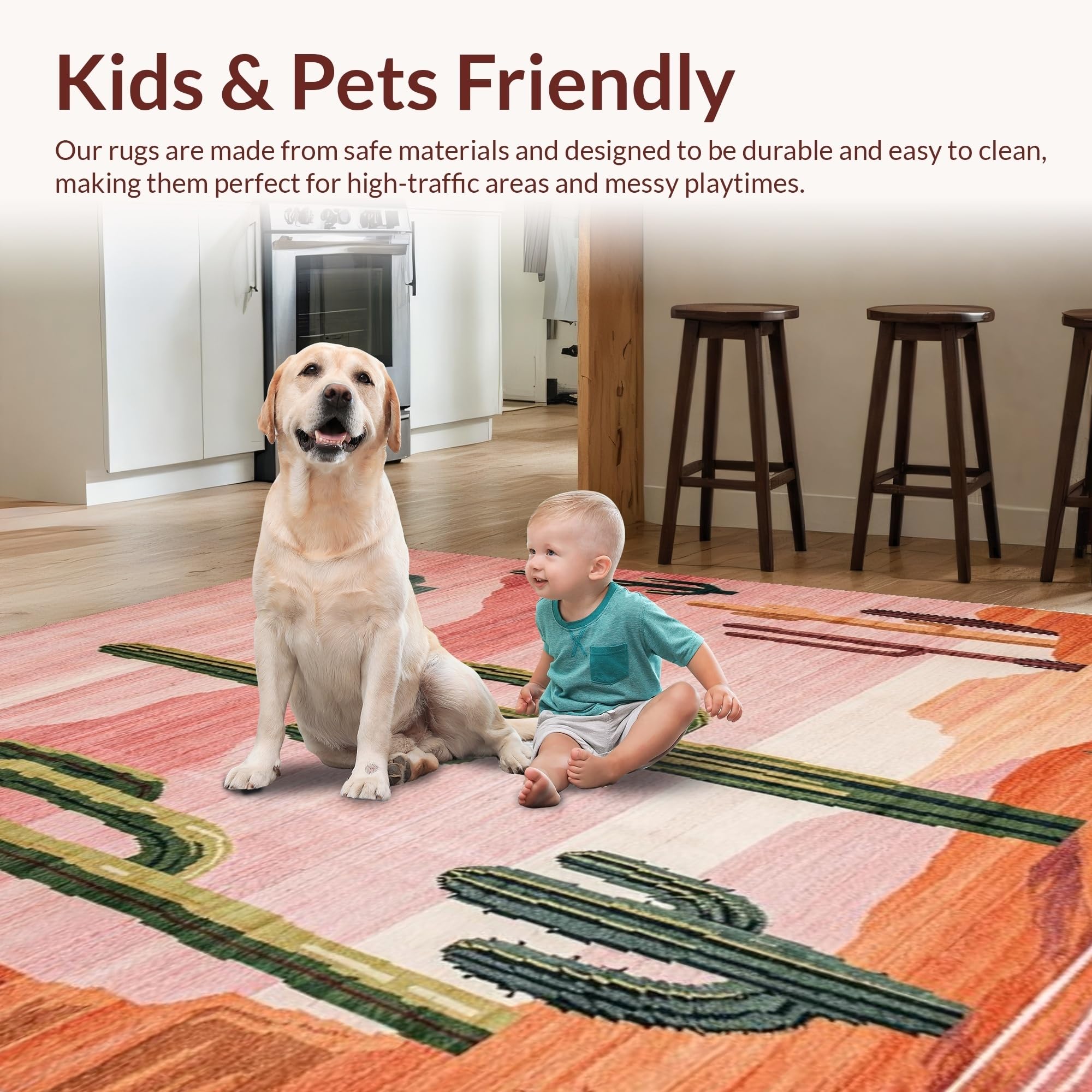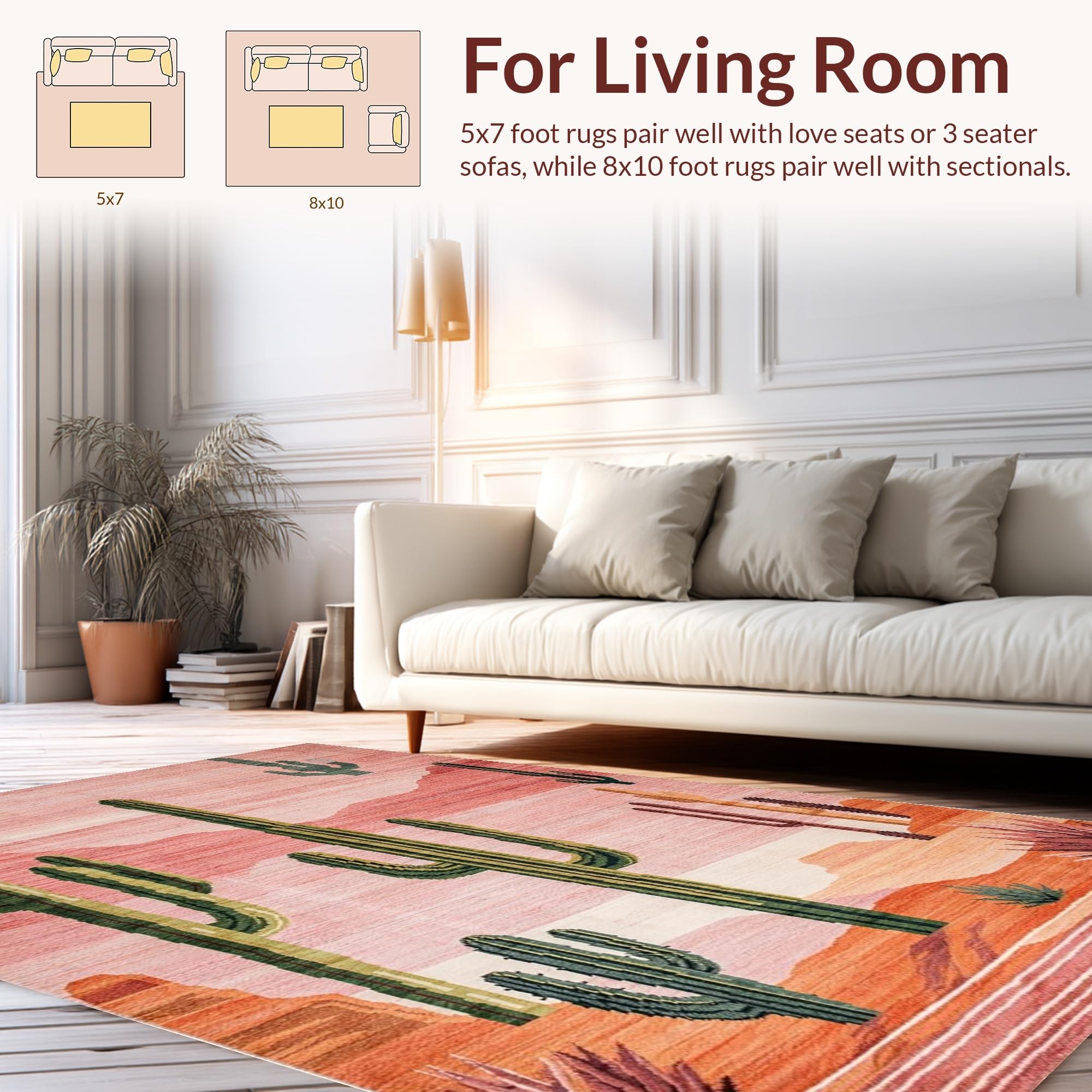 Ultra Soft Area Rug, Non Slip, Stain Resistant, Washable Area Rugs for Living Room, Bedroom, Vibrant Desert Oasis Aesthetic(Pink) Overview: