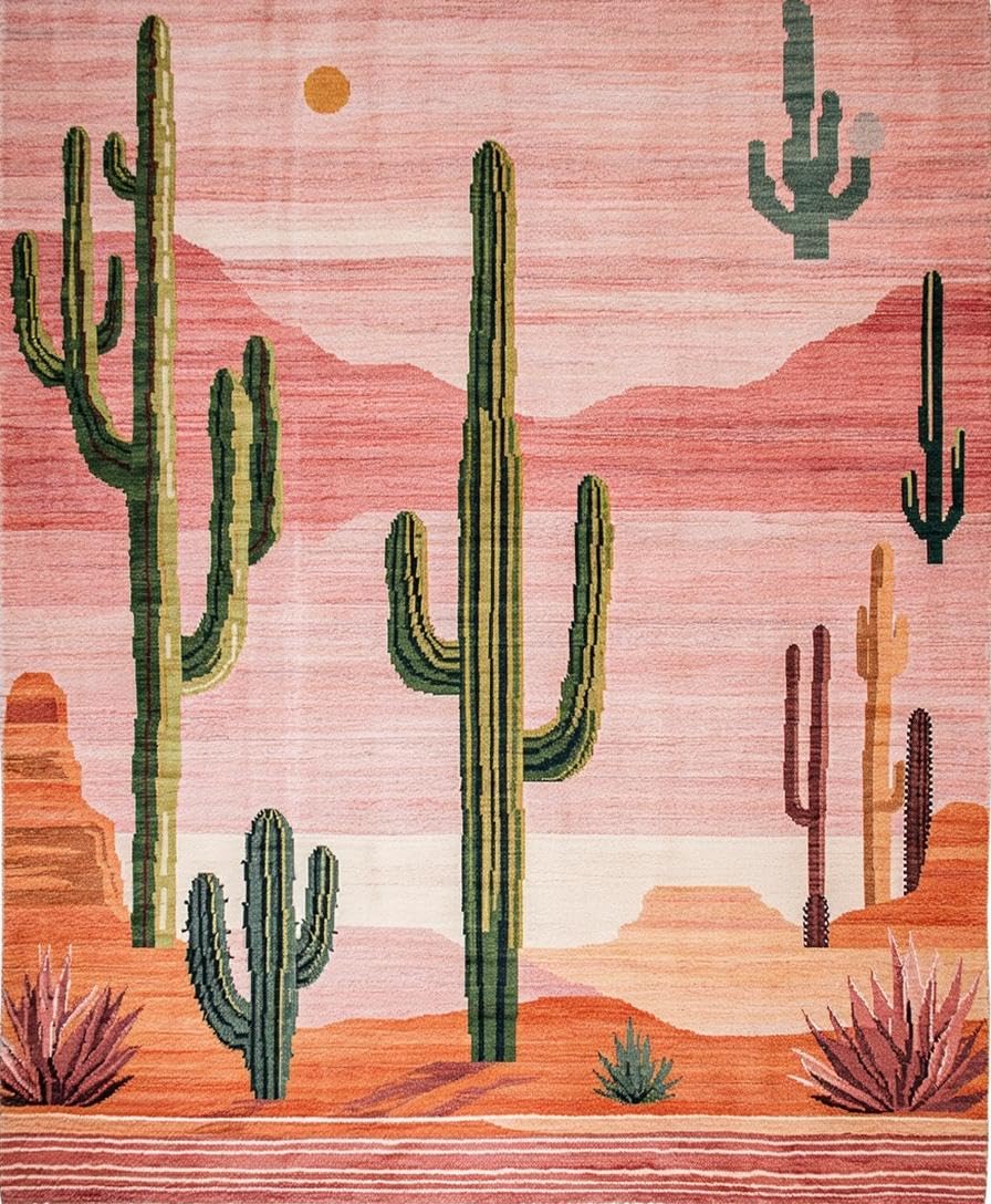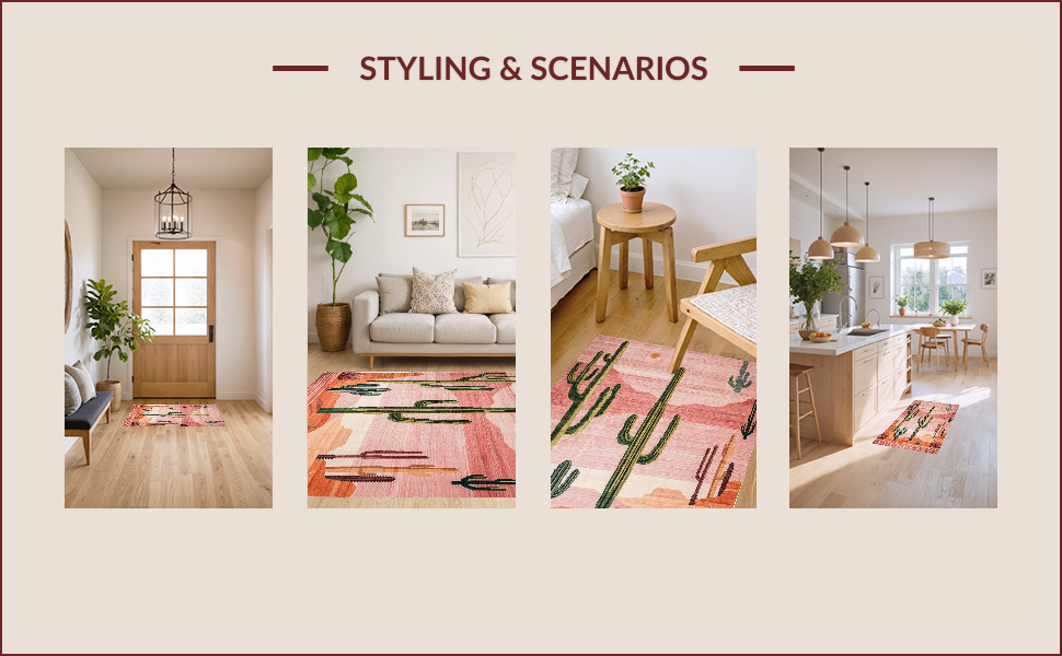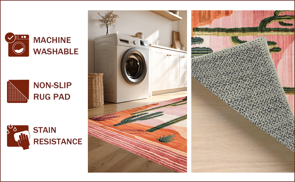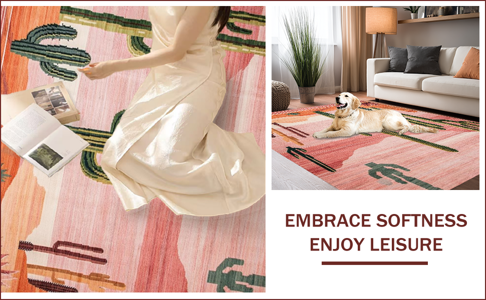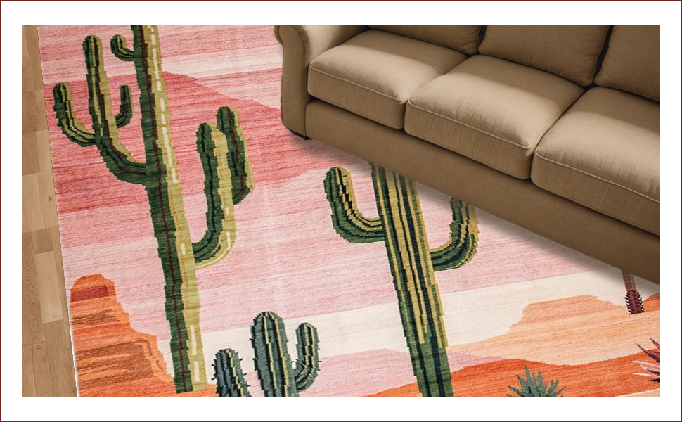 Ultra Soft Area Rug, Non Slip, Stain Resistant, Washable Area Rugs for Living Room, Bedroom, Vibrant Desert Oasis Aesthetic(Pink) Overview: