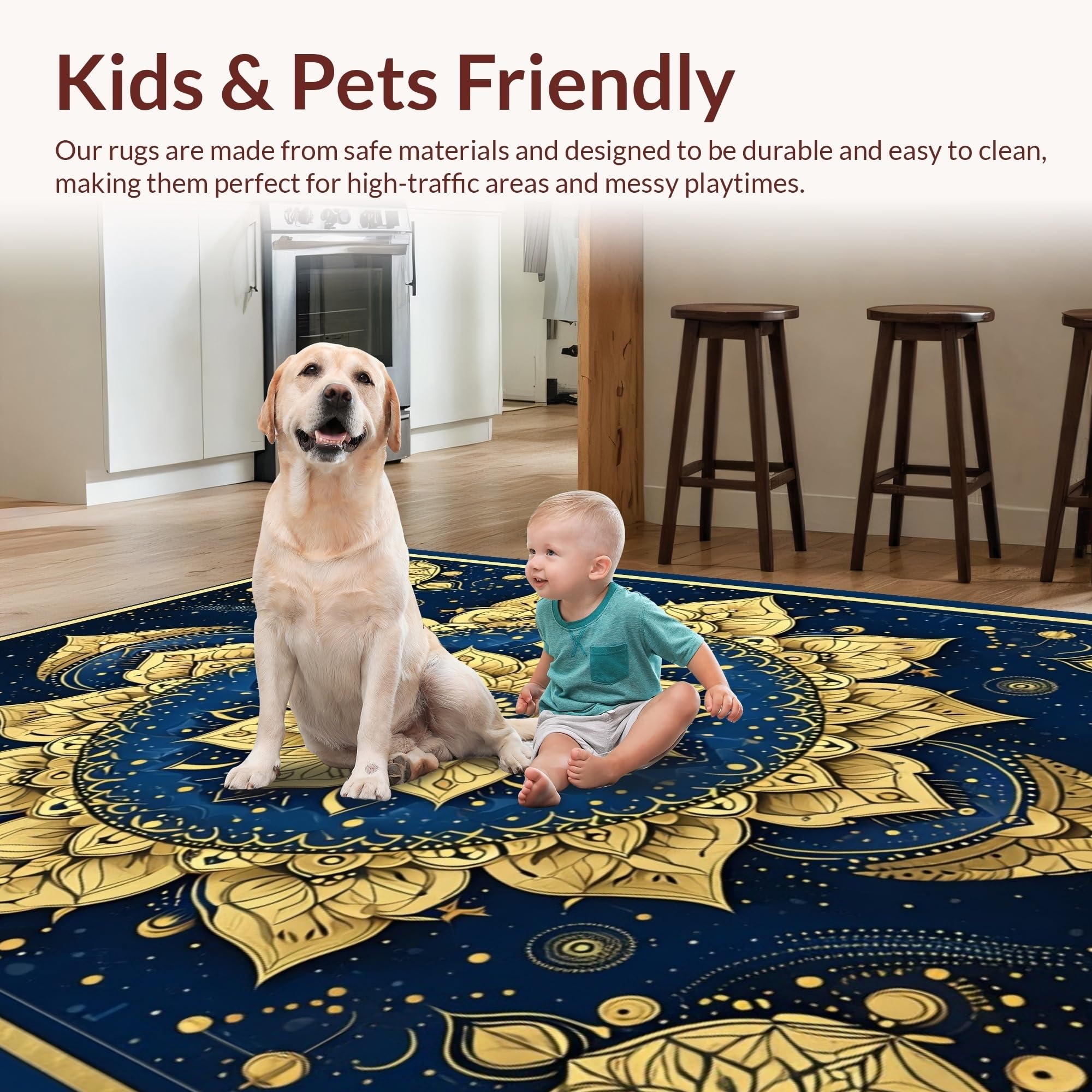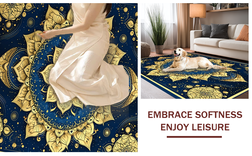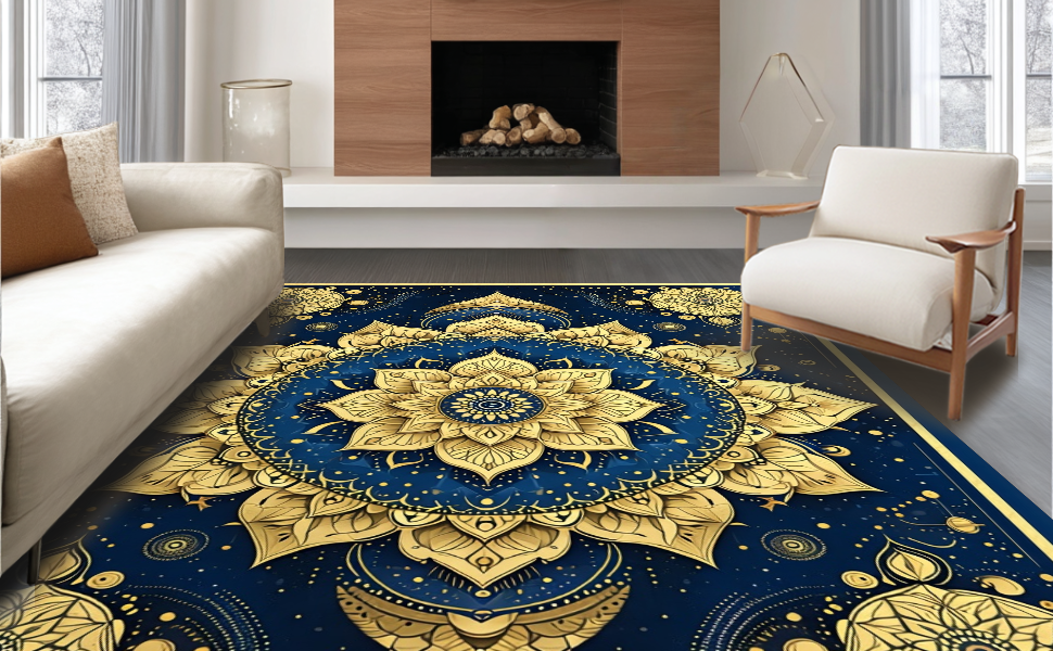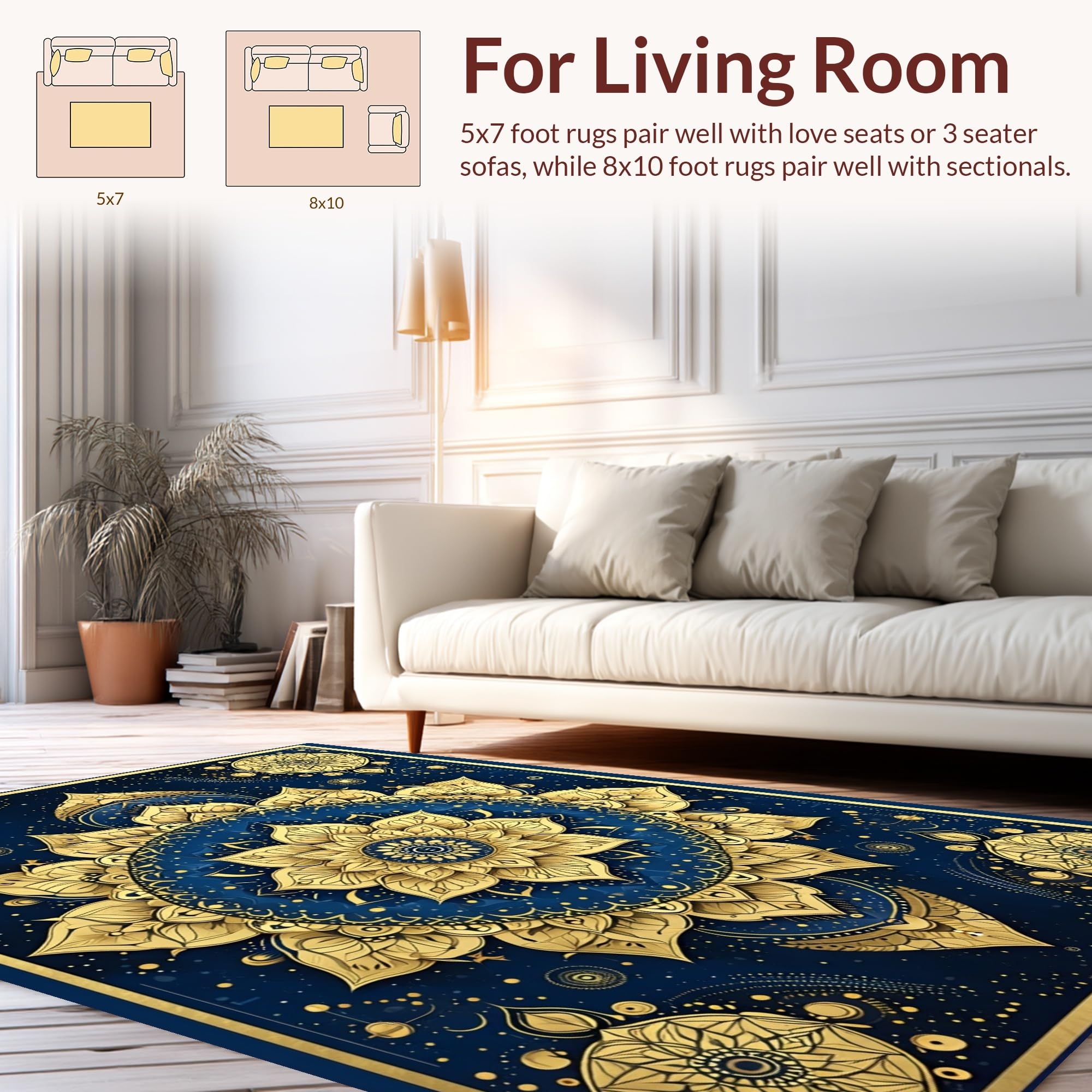 Ultra Soft Area Rug, Non Slip, Stain Resistant, Washable Area Rugs for Living Room, Bedroom, Vibrant Earth Tones Floral Motif(Blue) Overview: