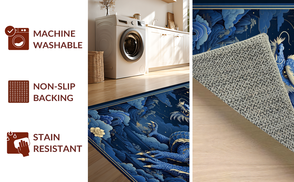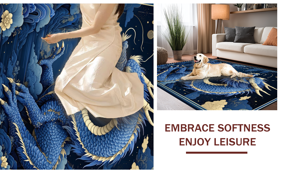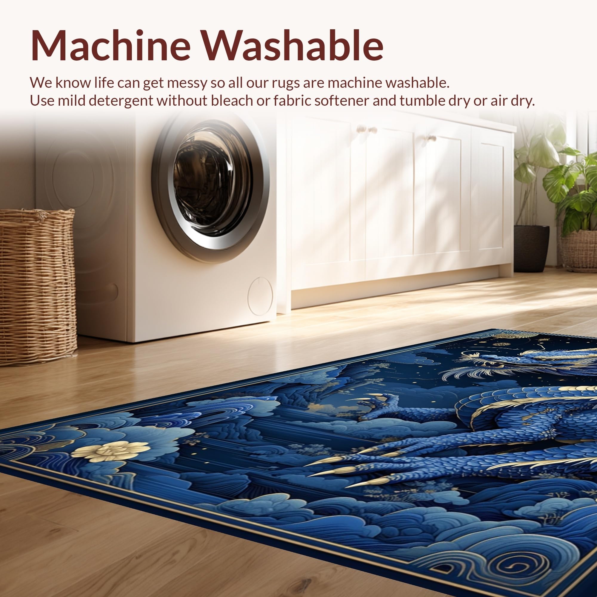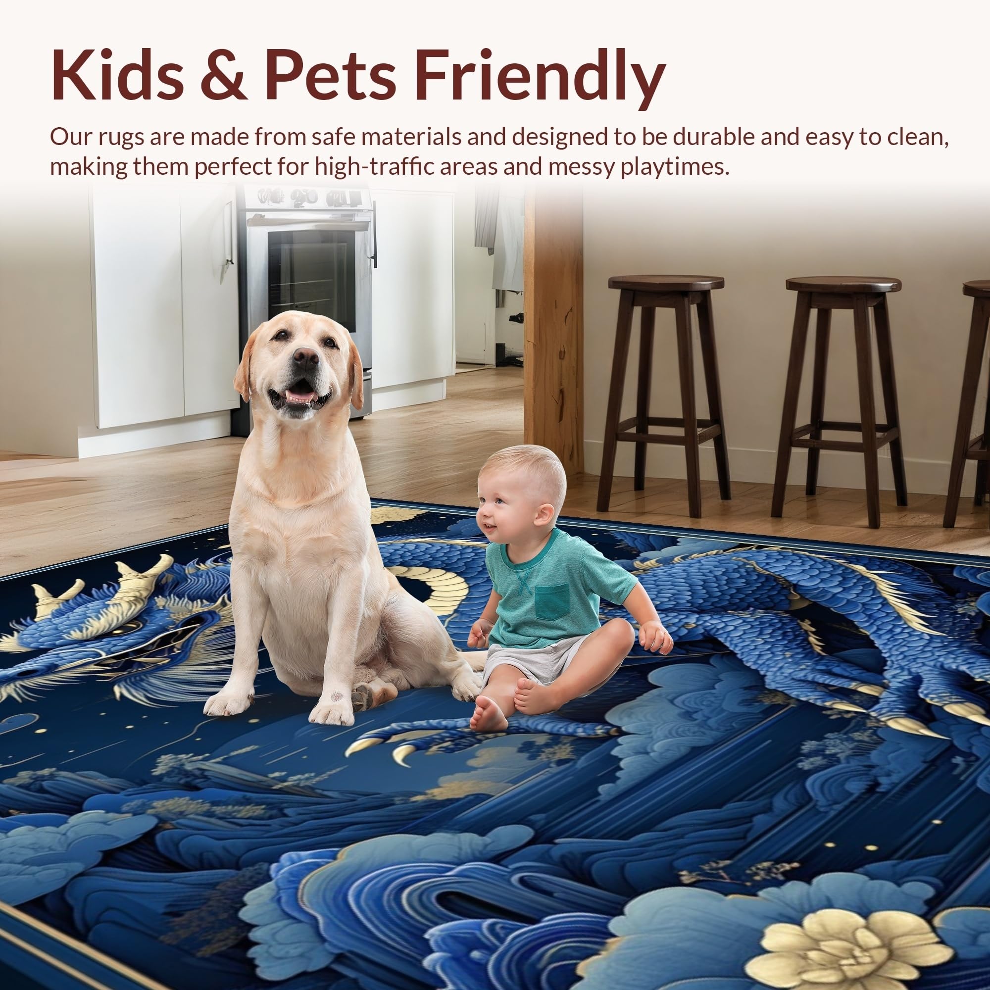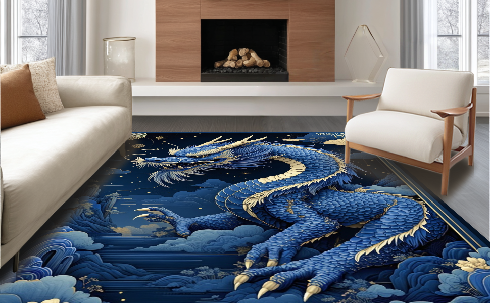 Ultra Soft Area Rug, Non Slip, Stain Resistant, Washable Area Rugs for Living Room, Bedroom, Vibrant Earthy Dragon Aesthetic(Blue) Overview: