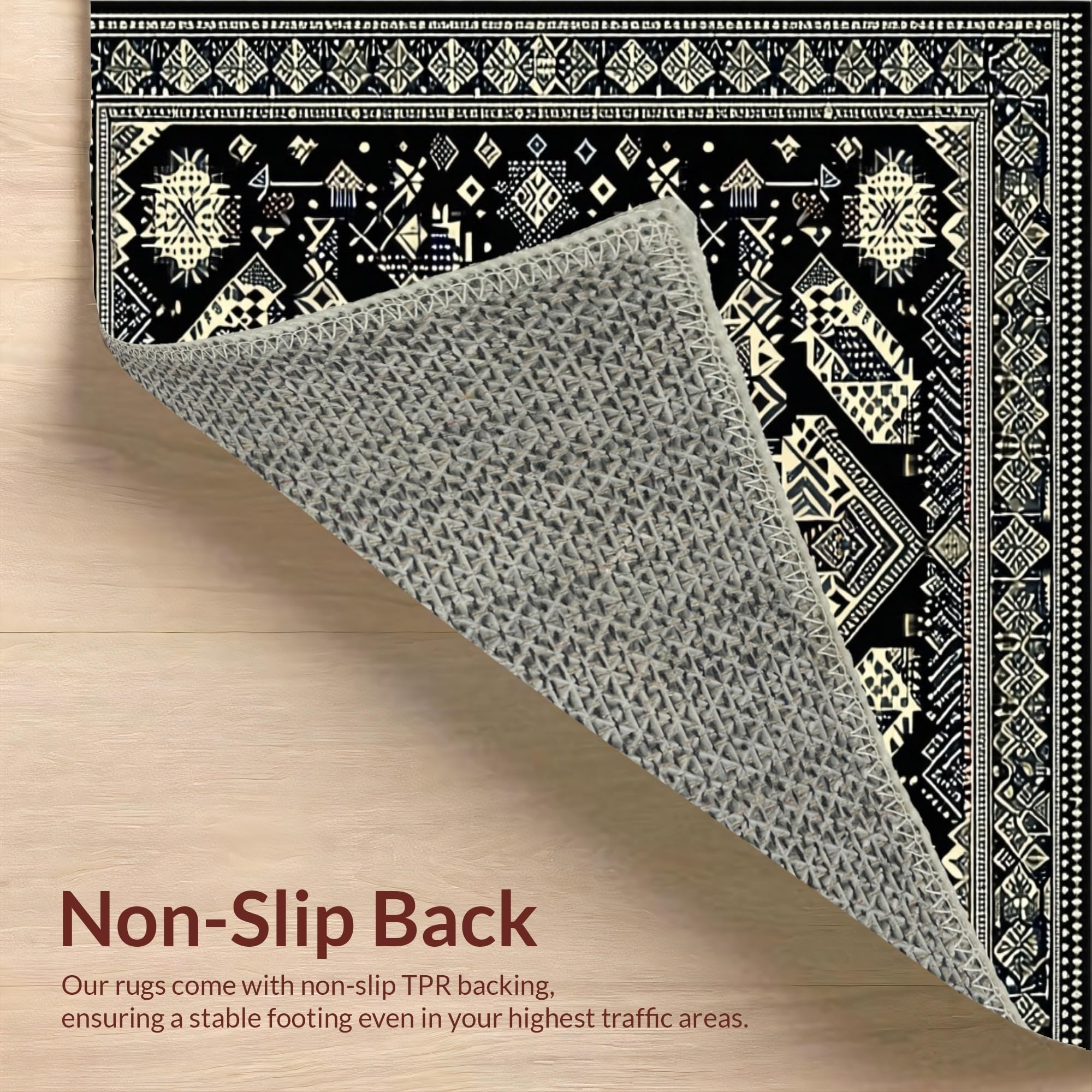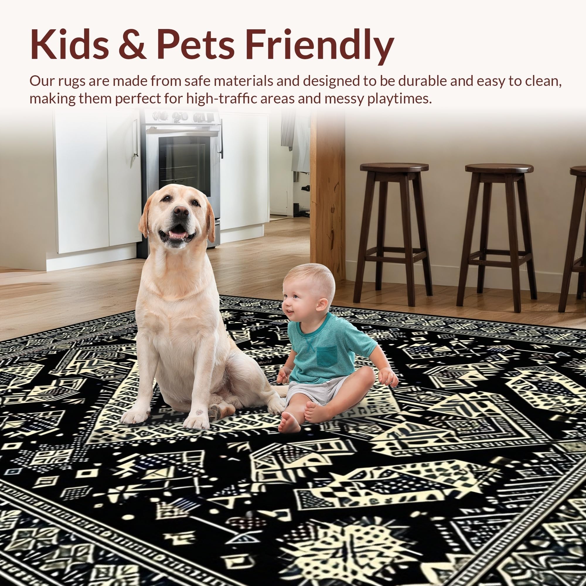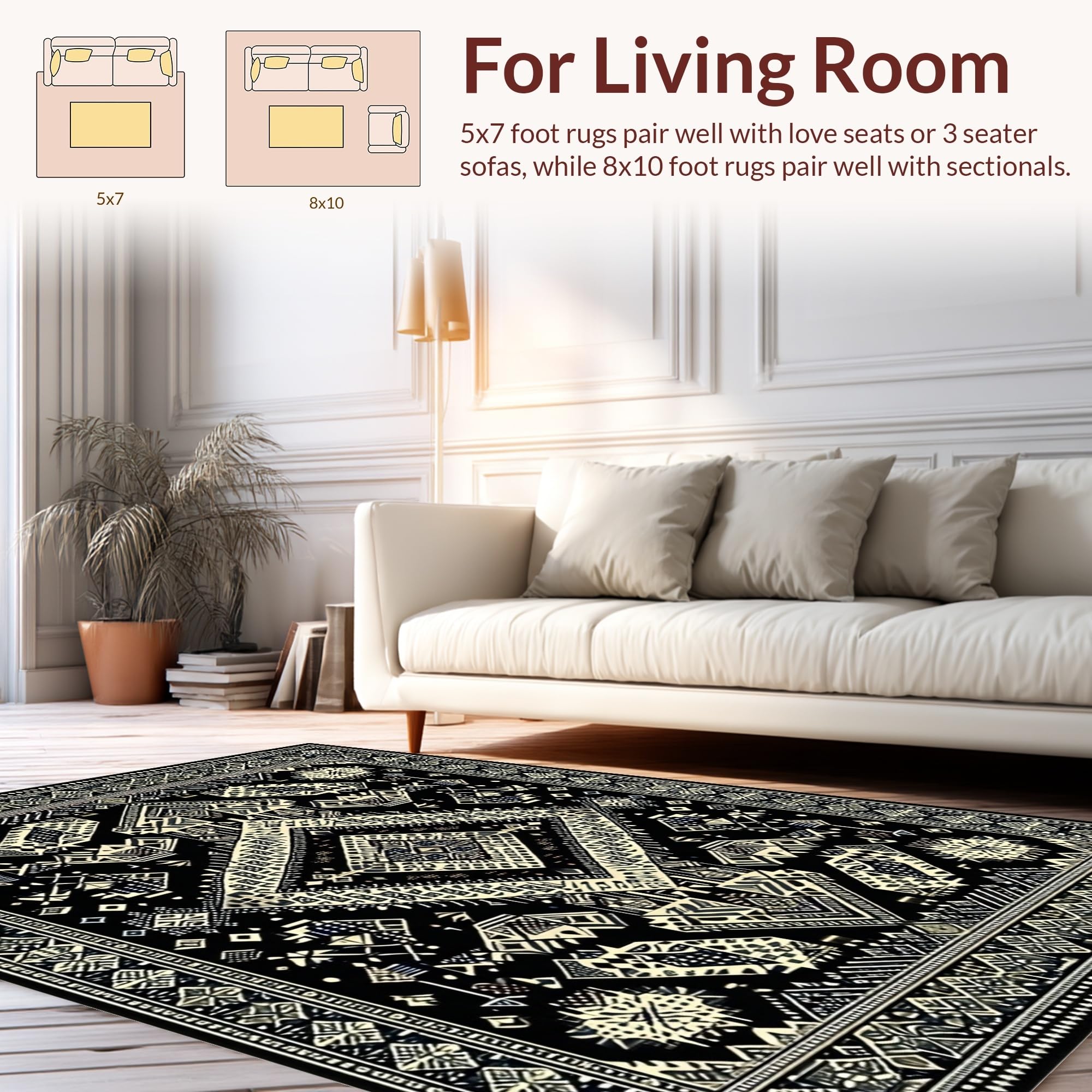 Ultra Soft Area Rug, Non Slip, Stain Resistant, Washable Area Rugs for Living Room, Bedroom, Vibrant Earthy Floral Composition(Black) Overview: