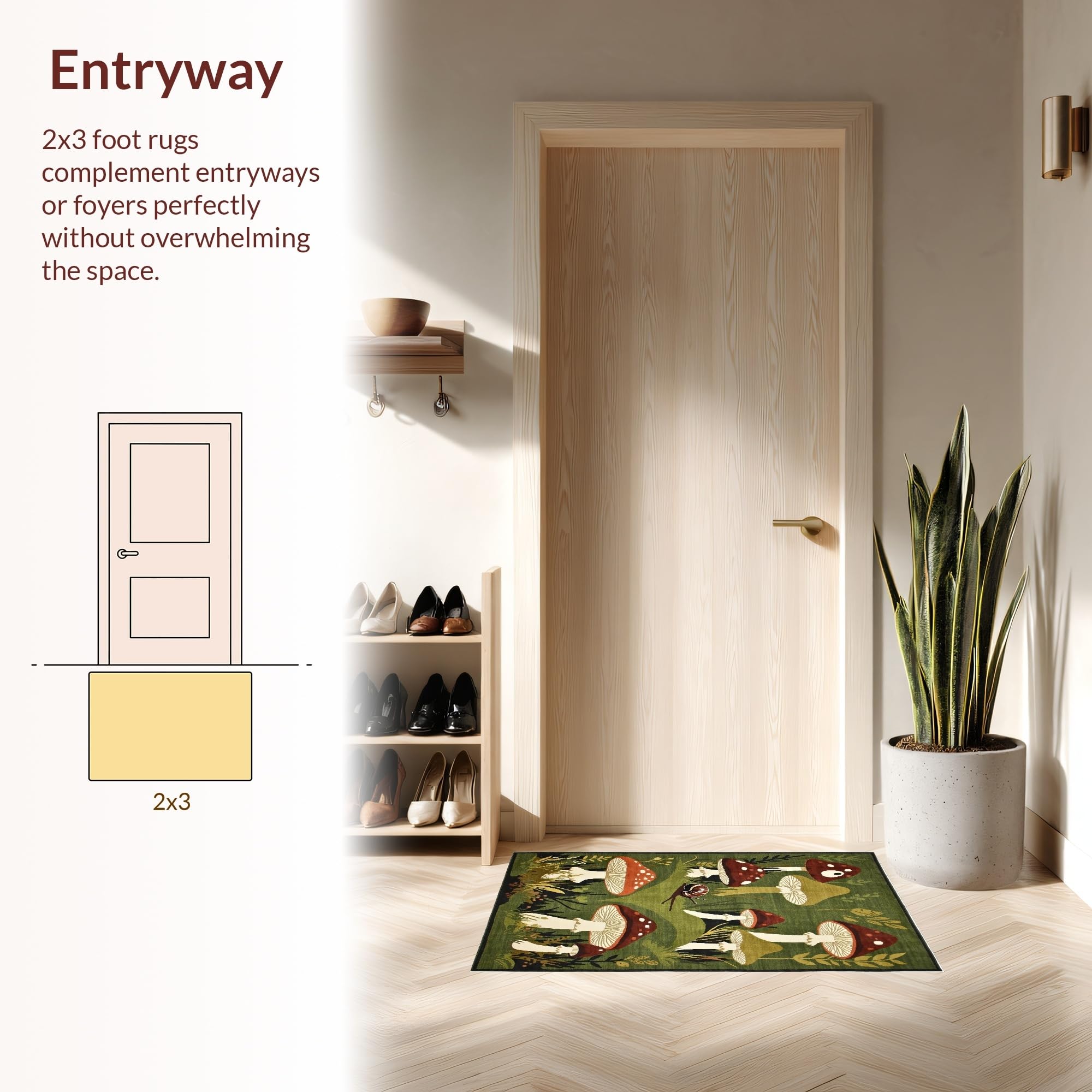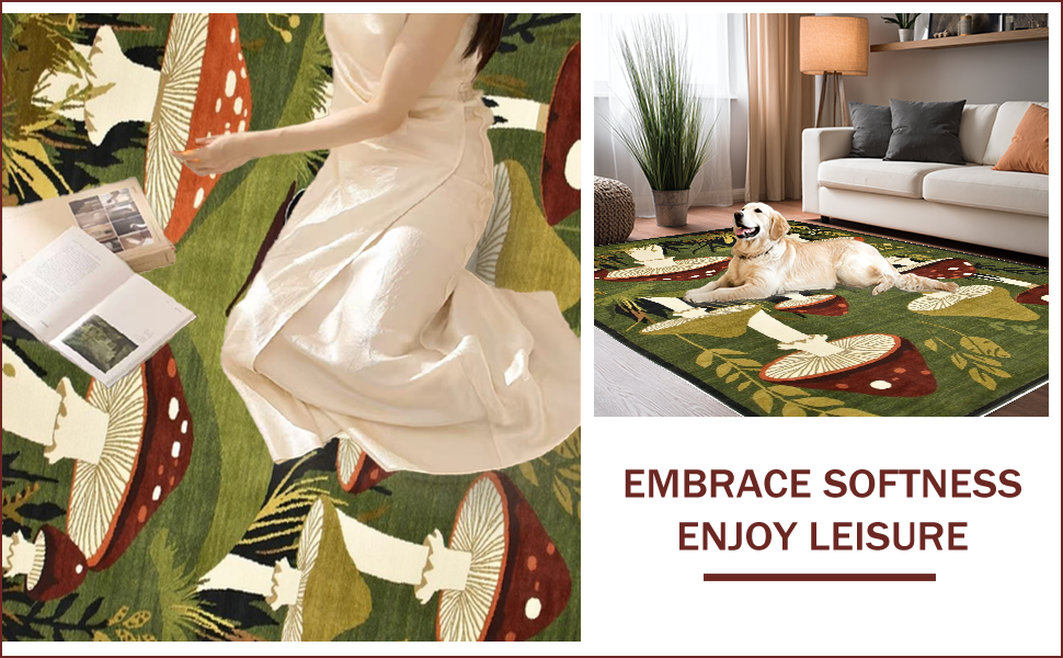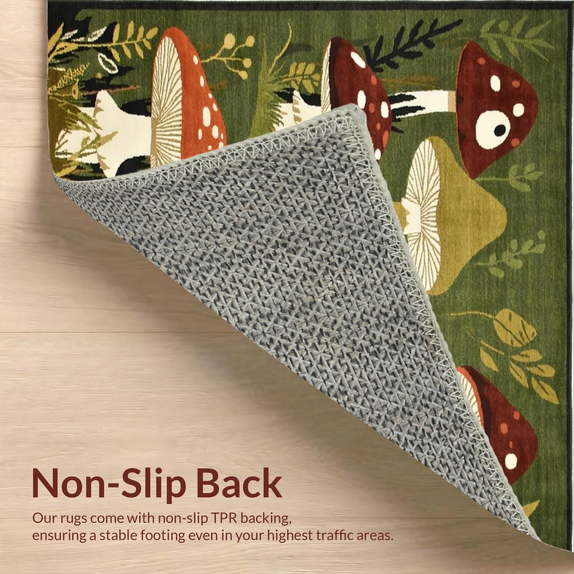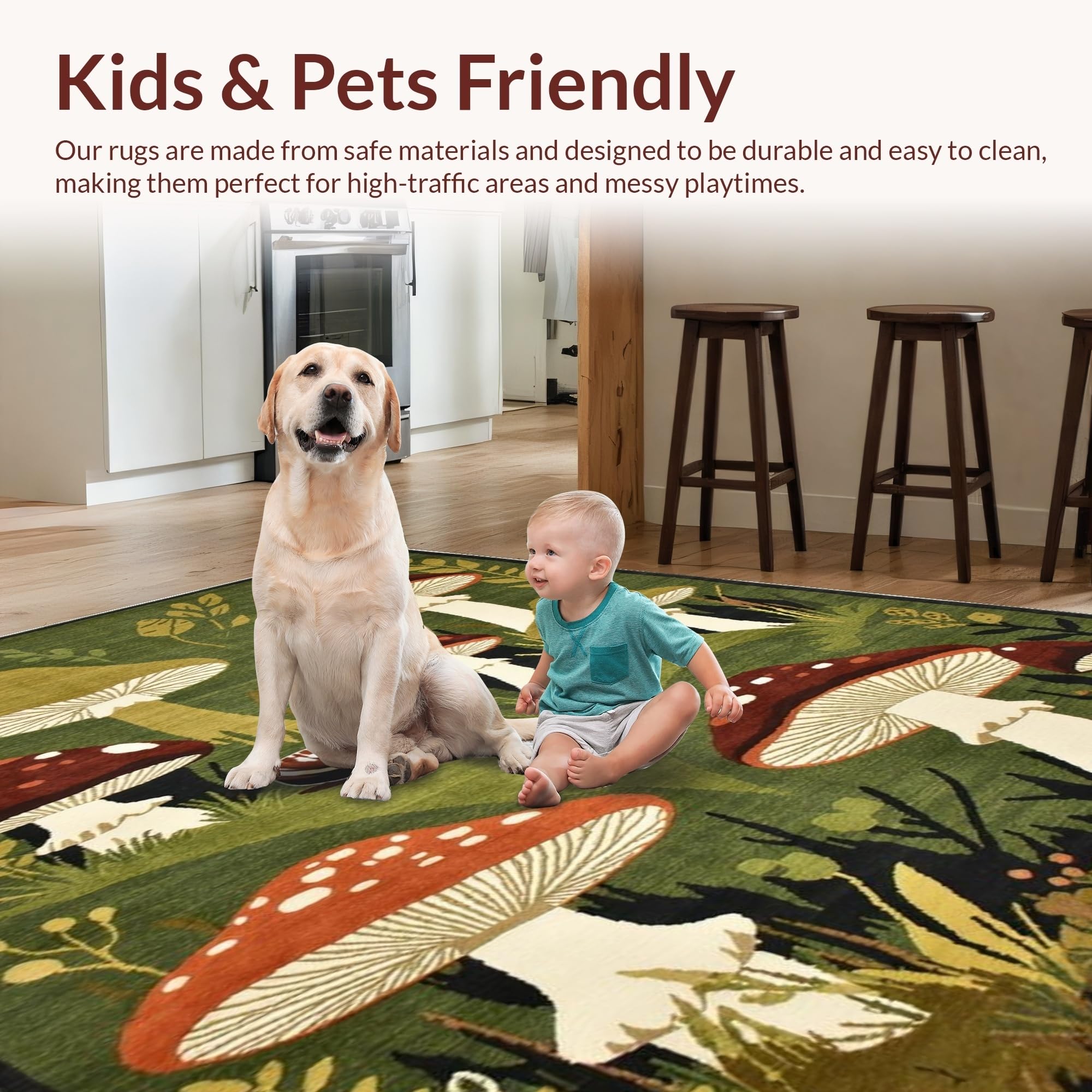Ultra Soft Area Rug, Non Slip, Stain Resistant, Washable Area Rugs for Living Room, Bedroom, Vibrant Earthy Mushroom Aesthetic(Green) Overview: