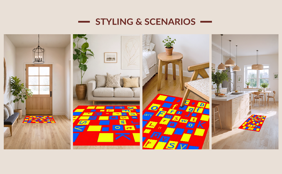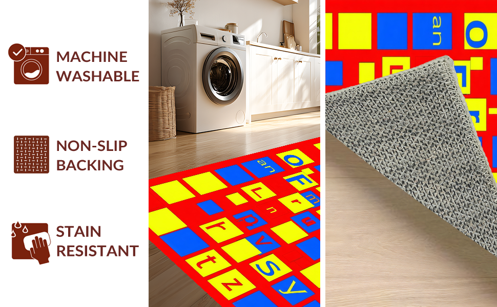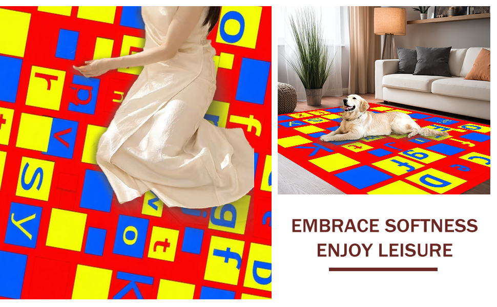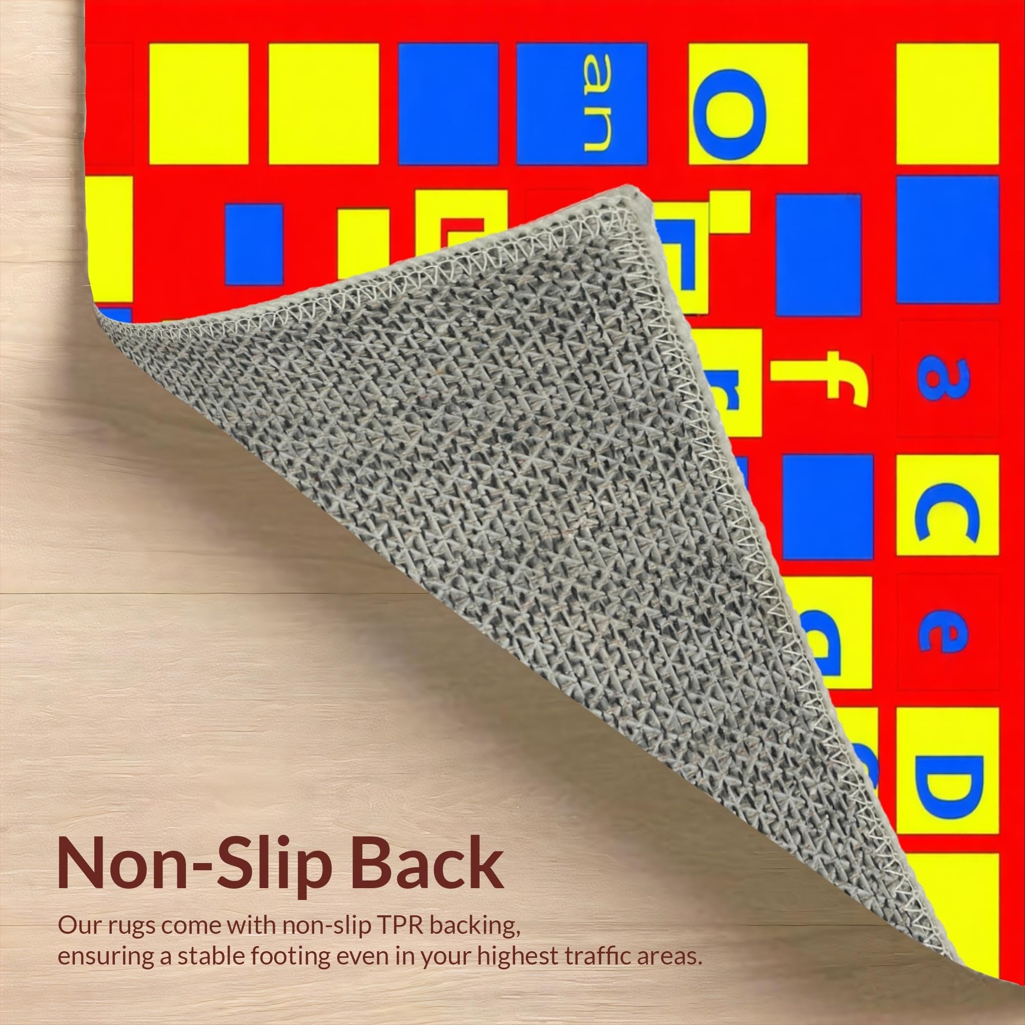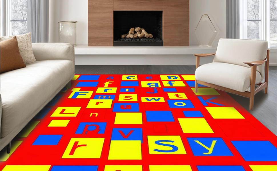 Ultra Soft Area Rug, Non Slip, Stain Resistant, Washable Area Rugs for Living Room, Bedroom, Vibrant Educational Alphabet Design(Blue) Overview: