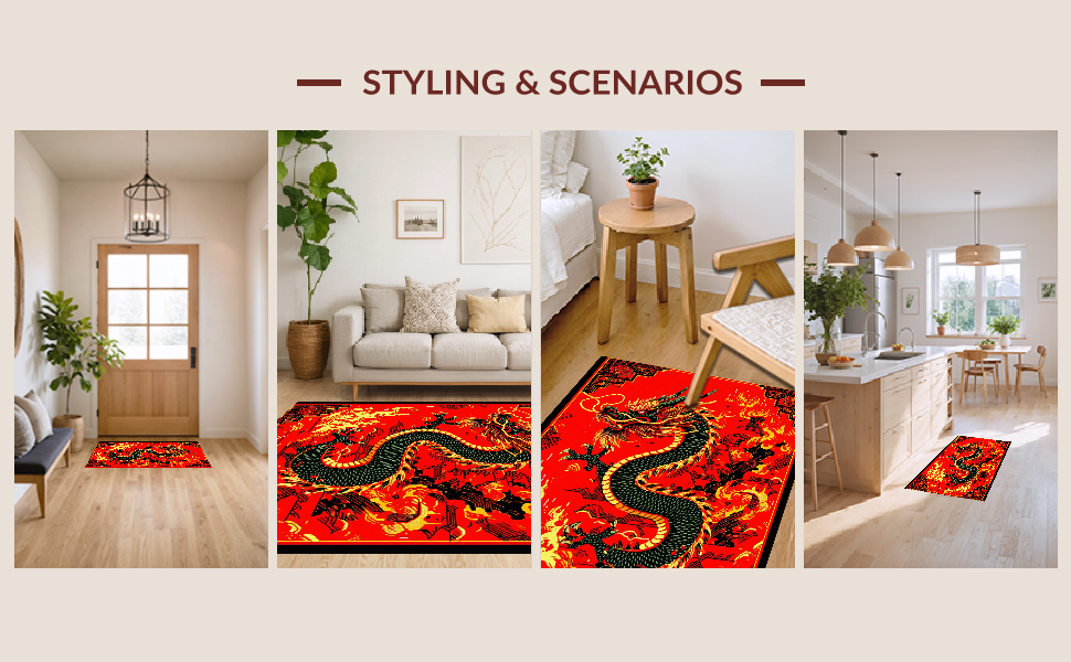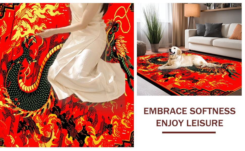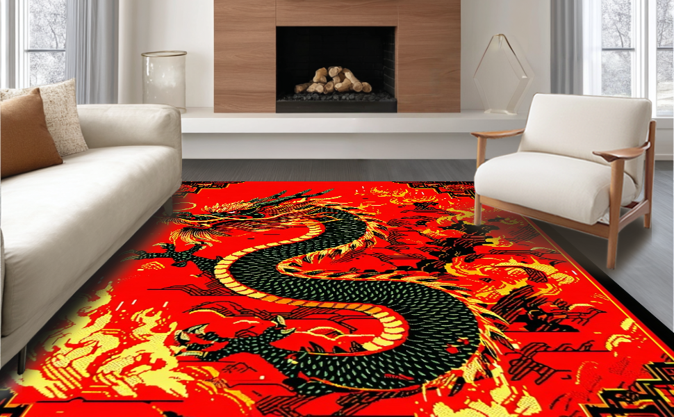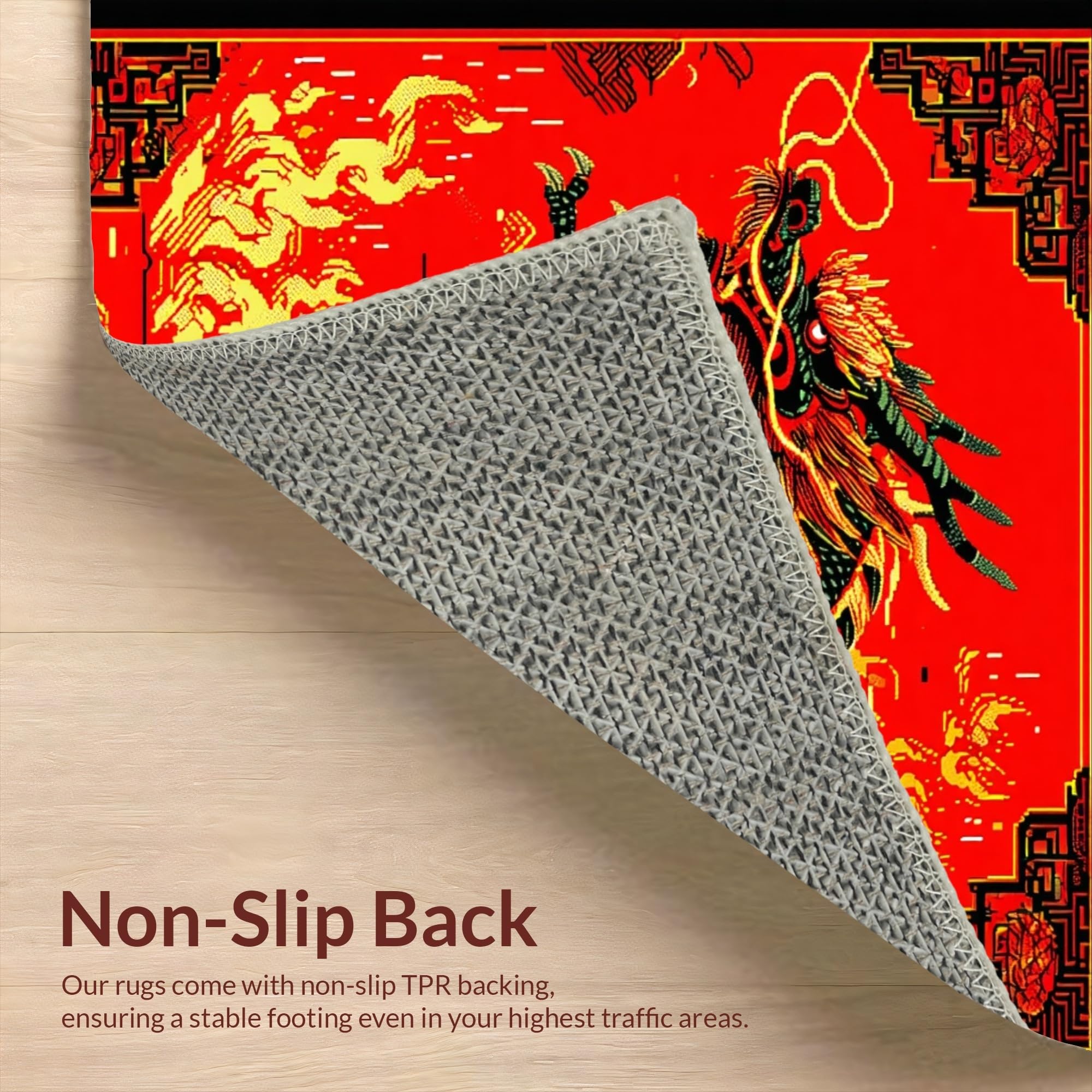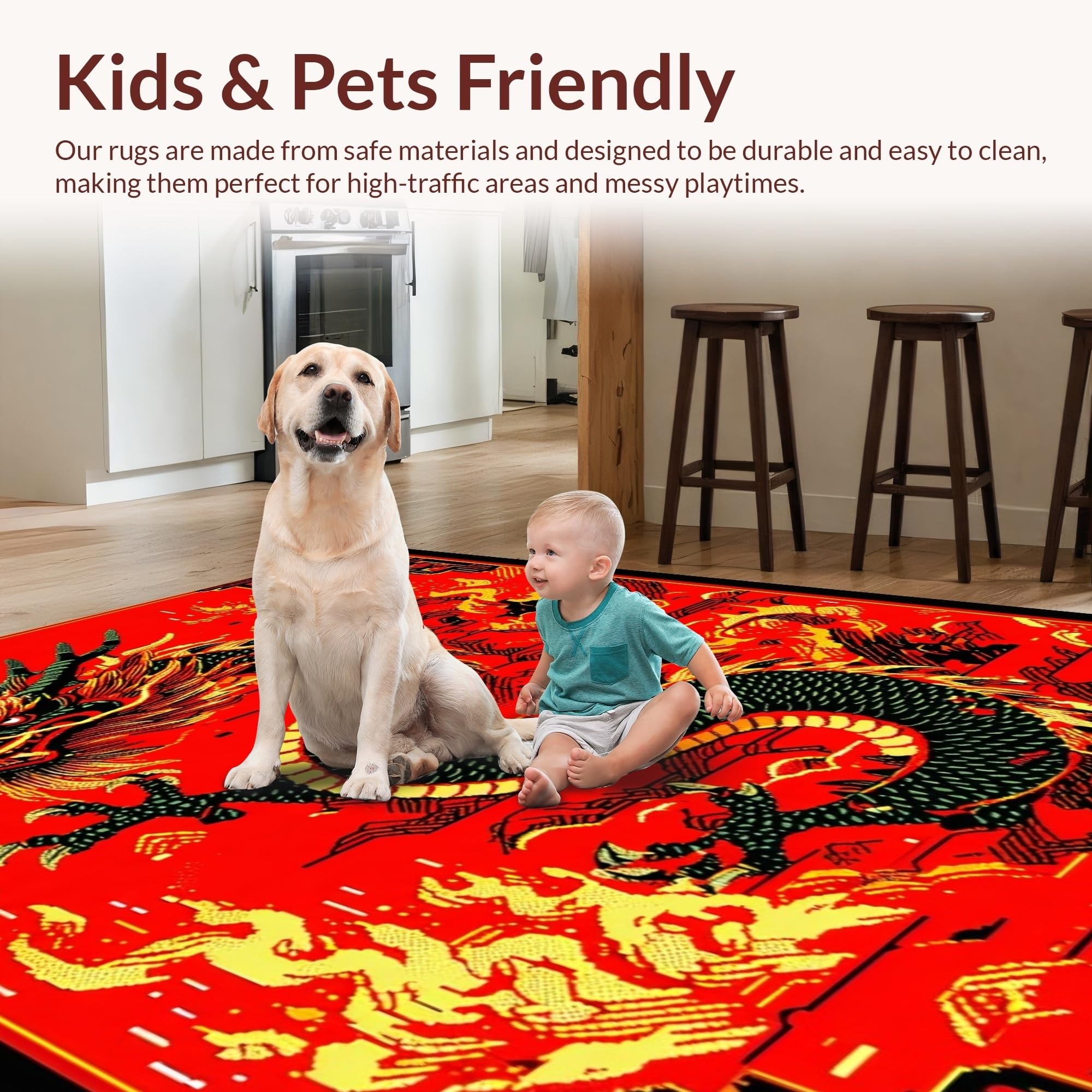 Ultra Soft Area Rug, Non Slip, Stain Resistant, Washable Area Rugs for Living Room, Bedroom, Vibrant Fantasy Creature Illustration(Red) Overview: