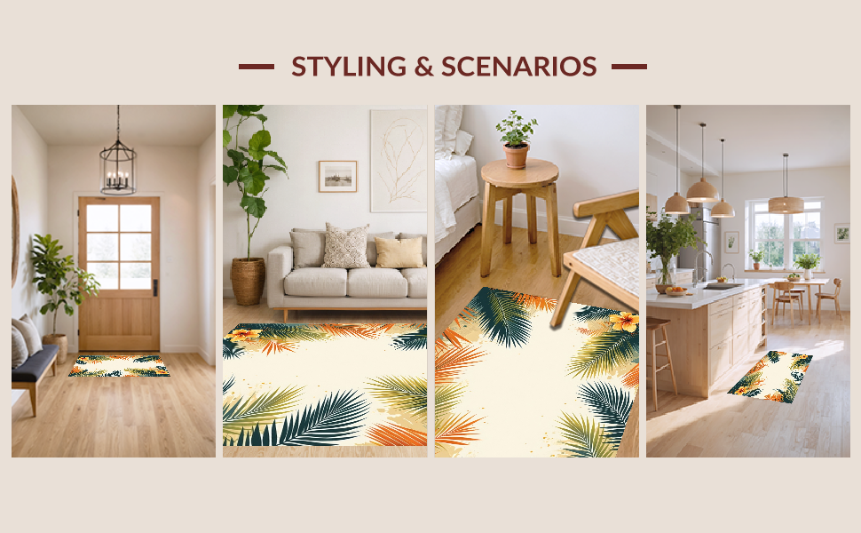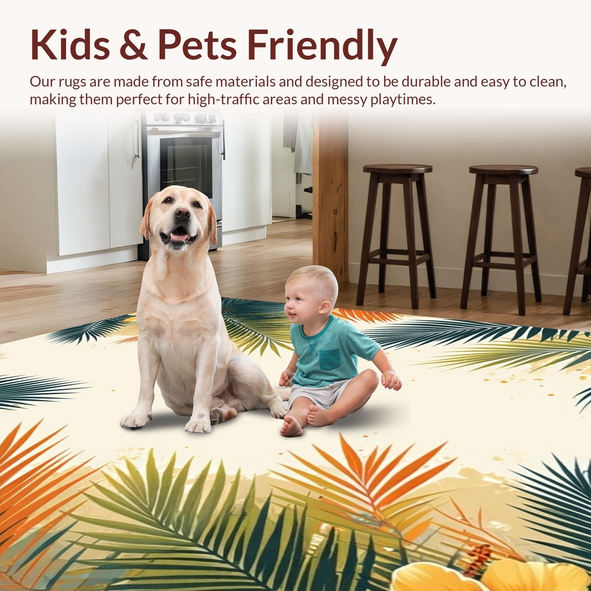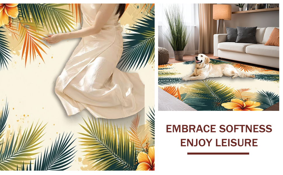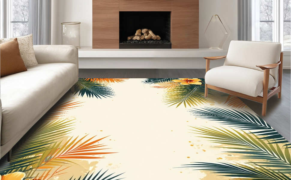 Ultra Soft Area Rug, Non Slip, Stain Resistant, Washable Area Rugs for Living Room, Bedroom, Vibrant Floral Coastal Charm(Beige) Overview: