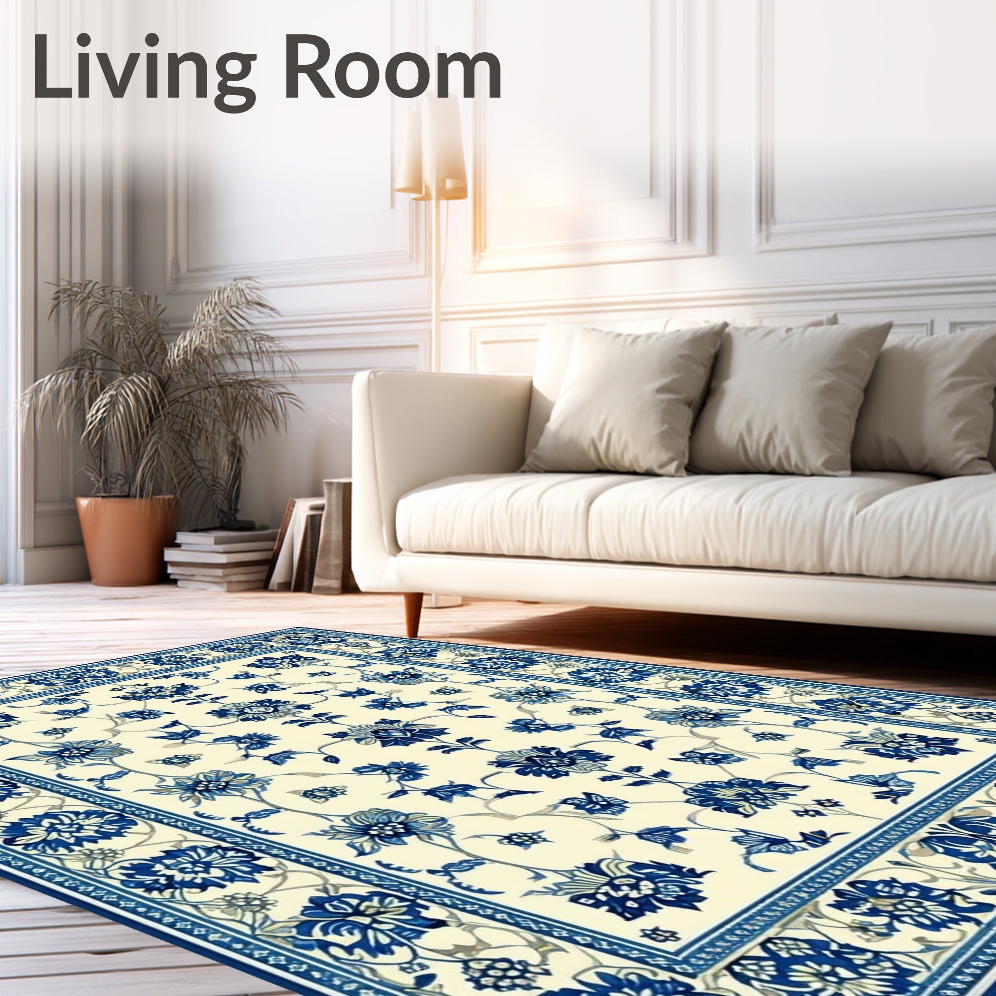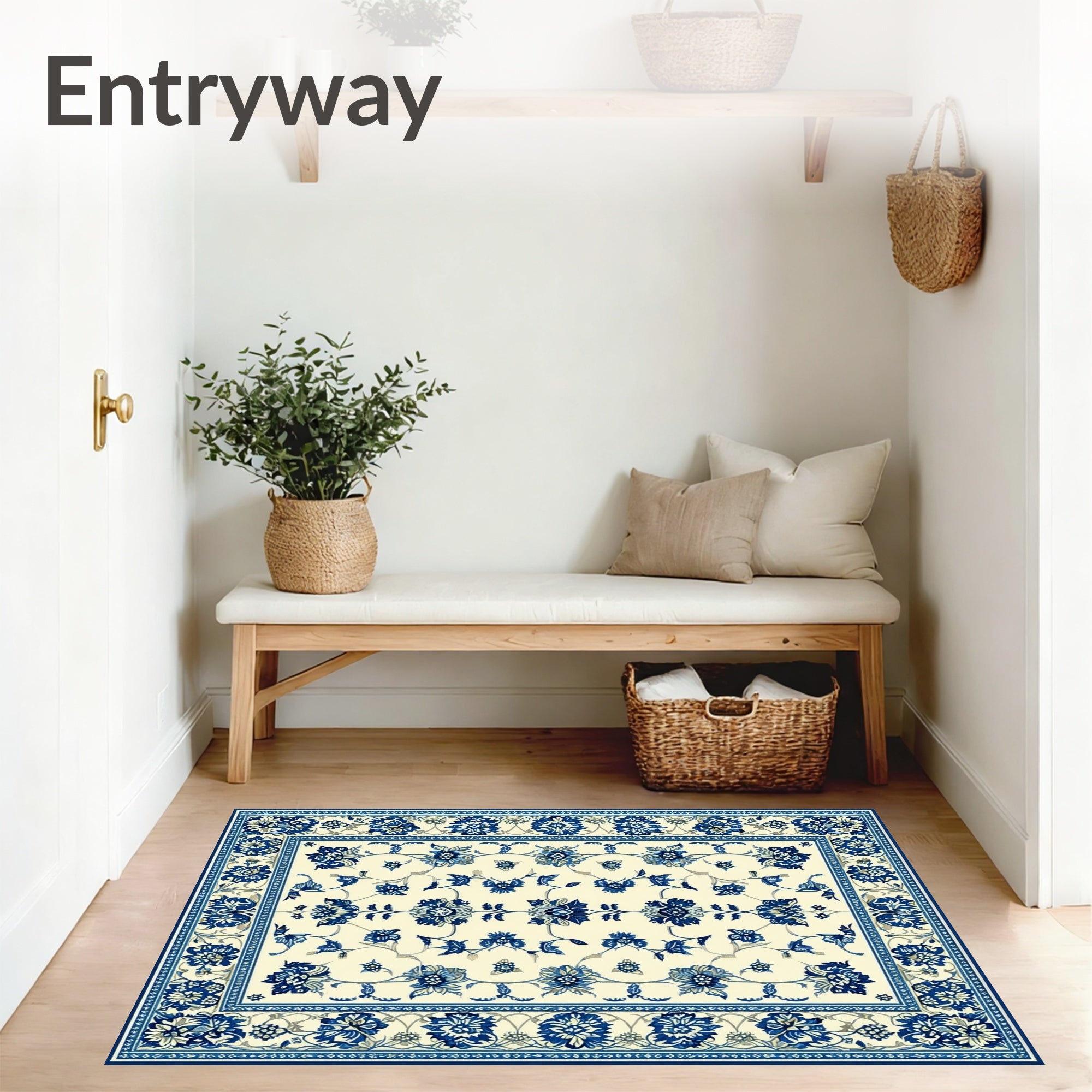 Flatwoven High Traffic Area Rug, Vibrant Floral for Areas, Non Slip, Stain Resistant, Washable Area Rugs for Living Room, Bedroom (Ivory) Overview: