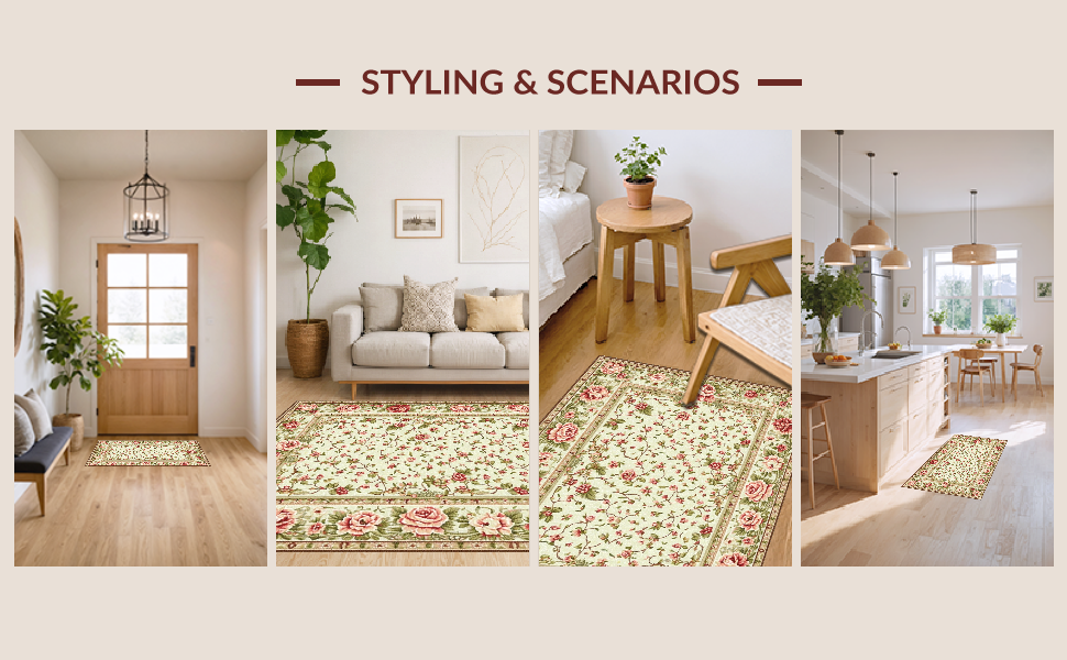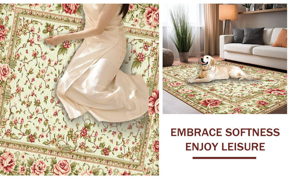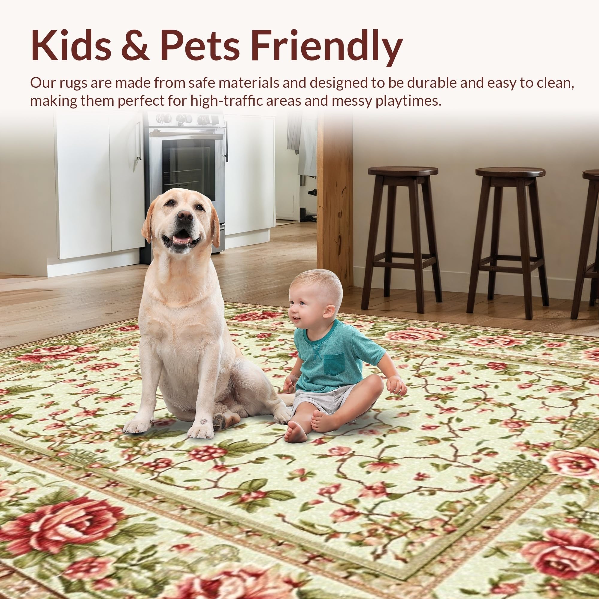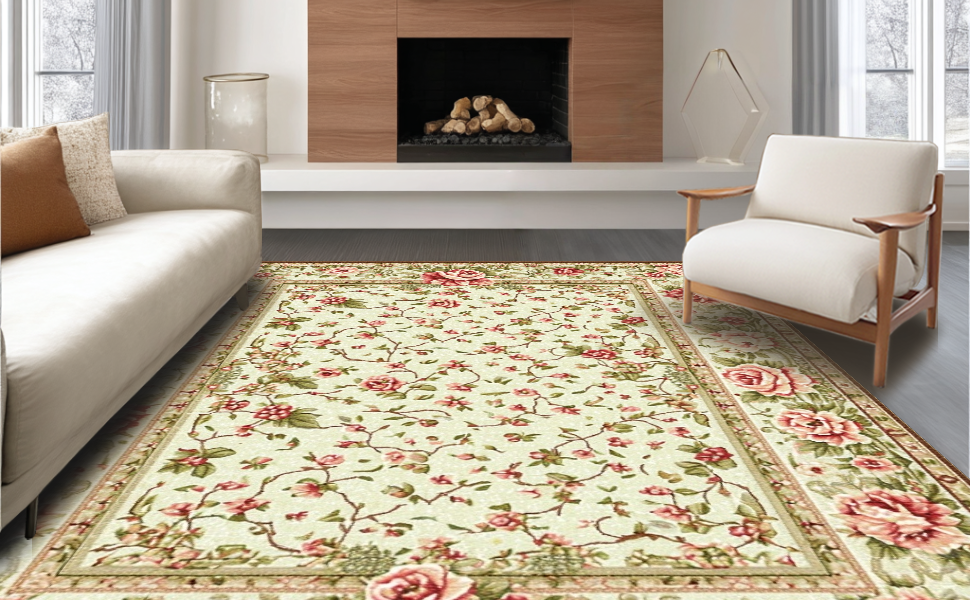 Ultra Soft Area Rug, Non Slip, Stain Resistant, Washable Area Rugs for Living Room, Bedroom, Vibrant Floral Garden Welcome Mat(Ivory) Overview: