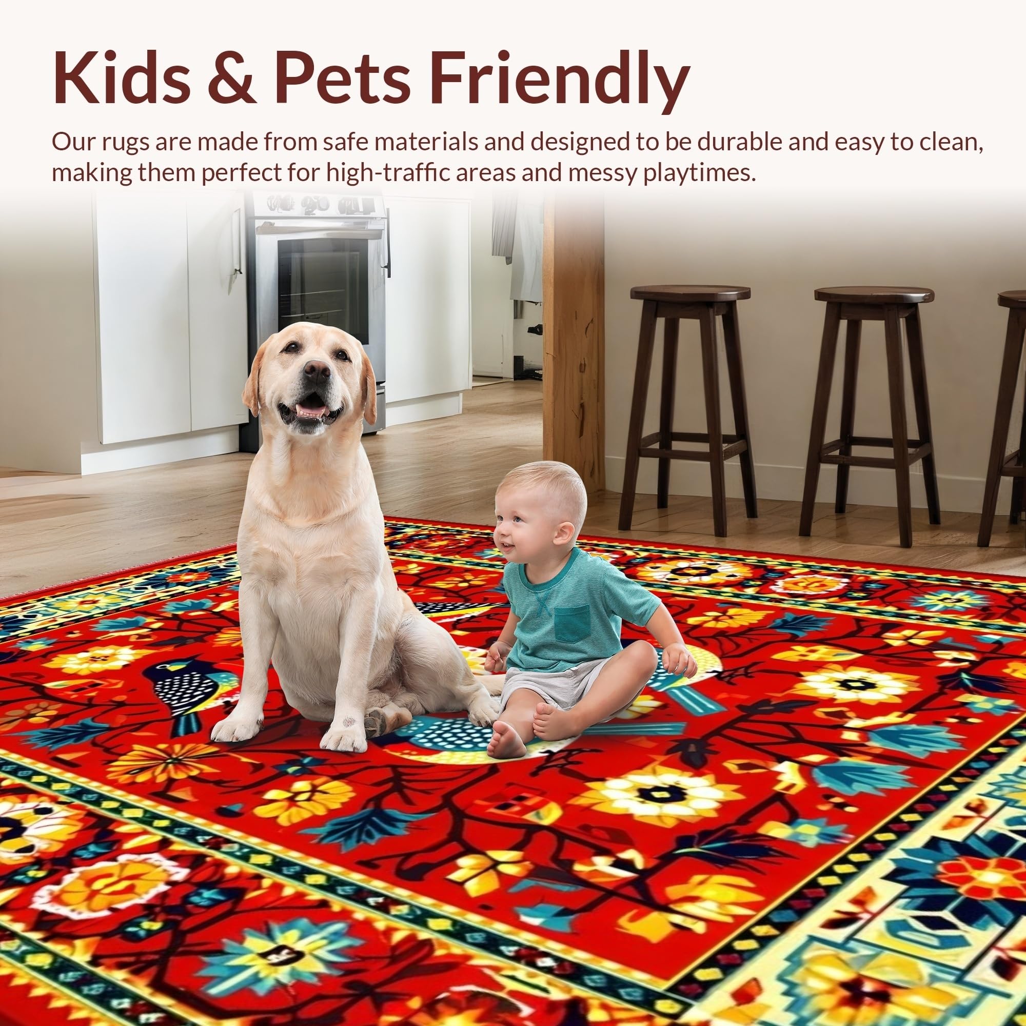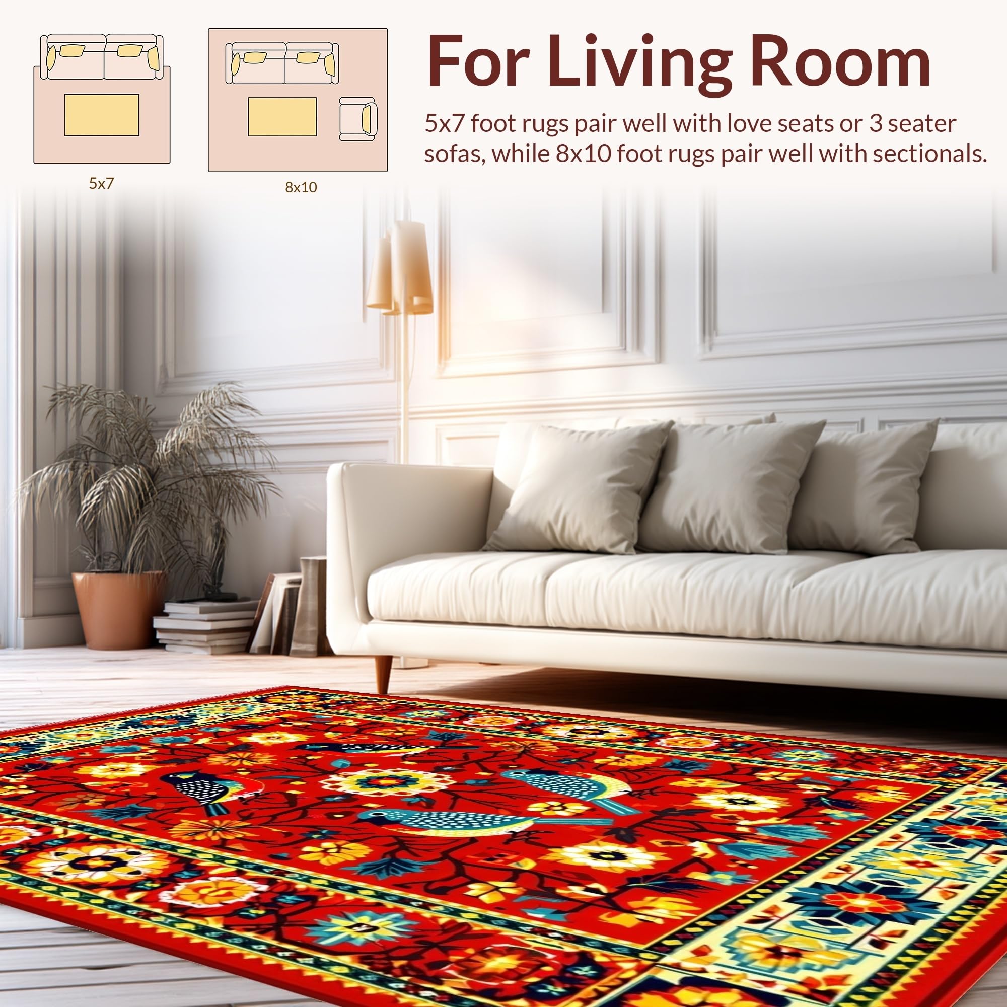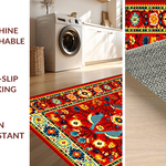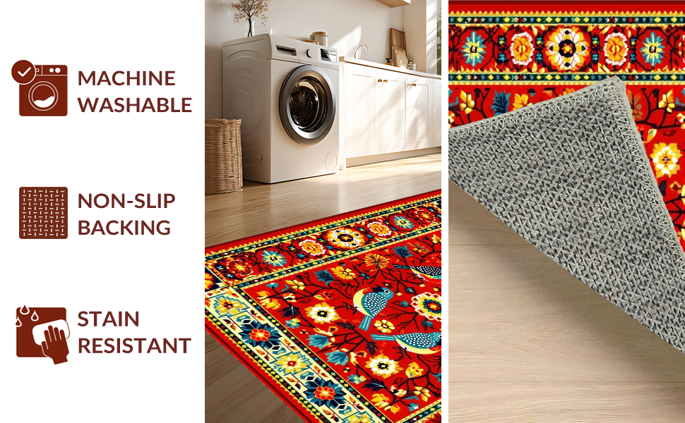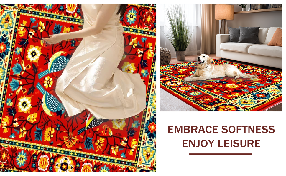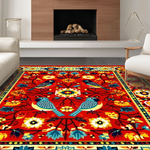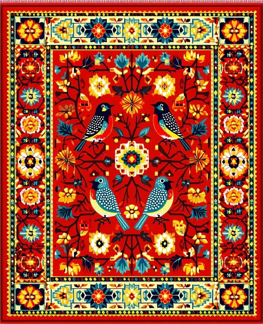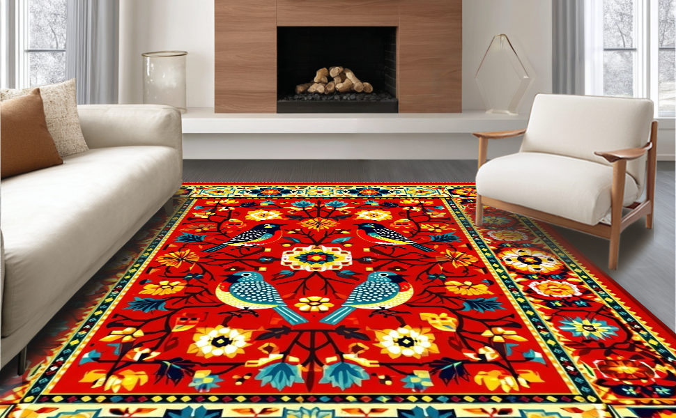 Ultra Soft Area Rug, Non Slip, Stain Resistant, Washable Area Rugs for Living Room, Bedroom, Vibrant Floral Mexican Bird Motif(Red) Overview: