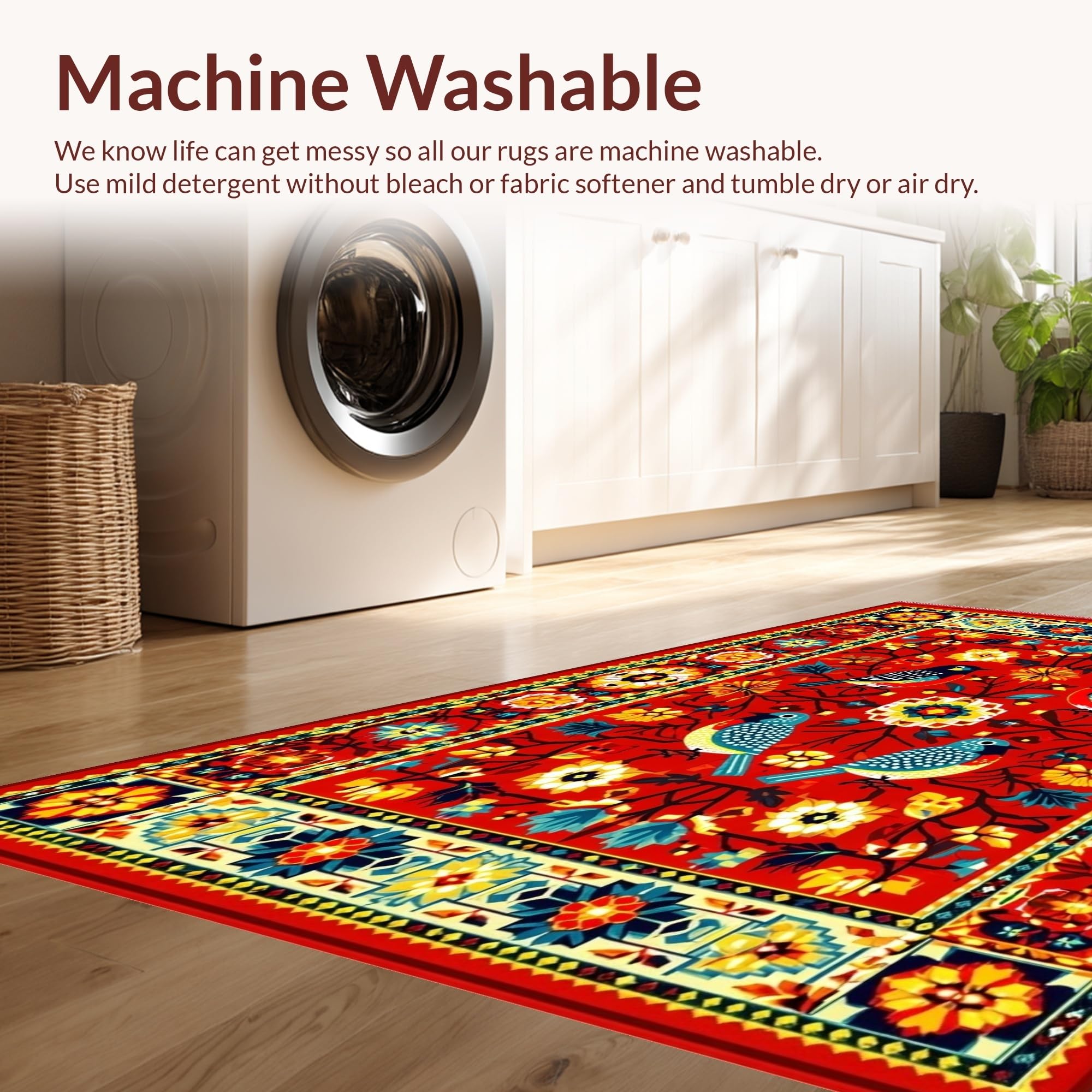 - Machine Washable: Our rugs can be easily thrown in the wash machine.