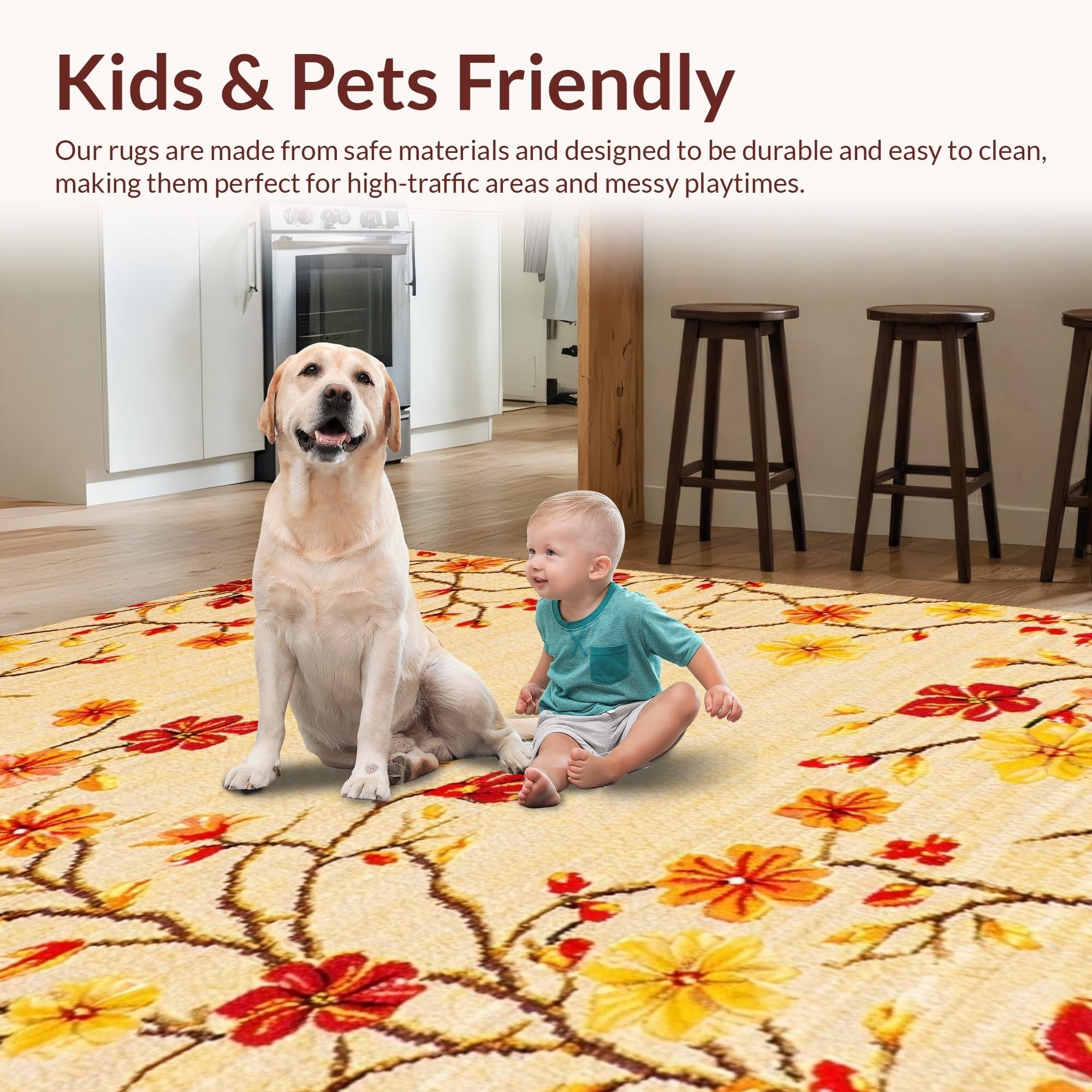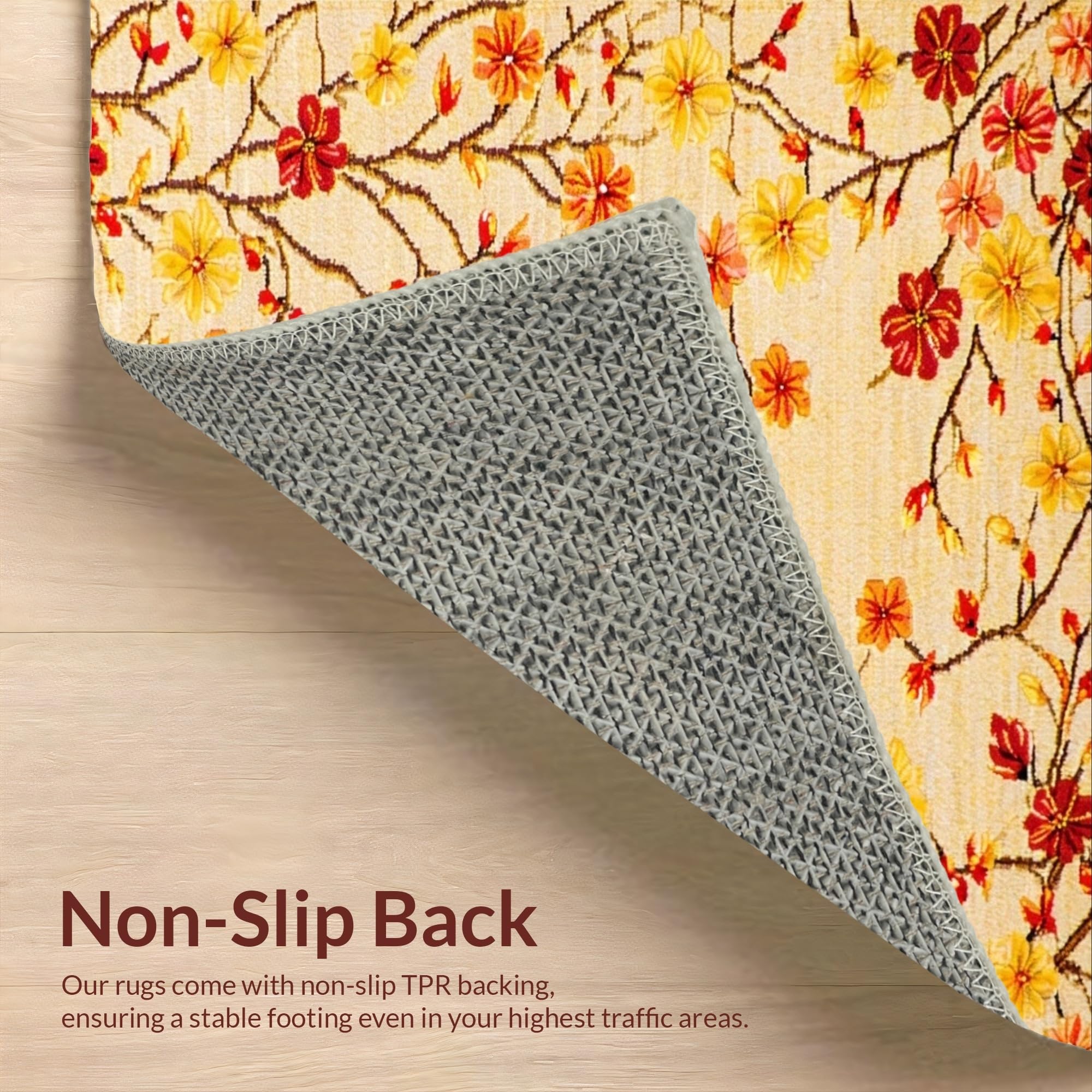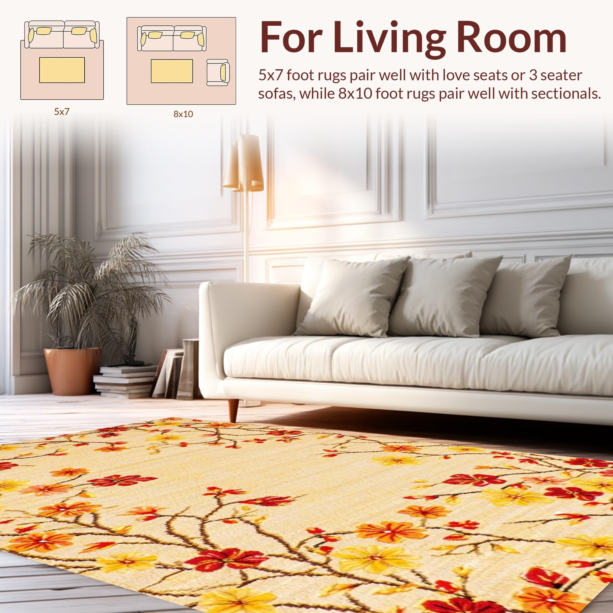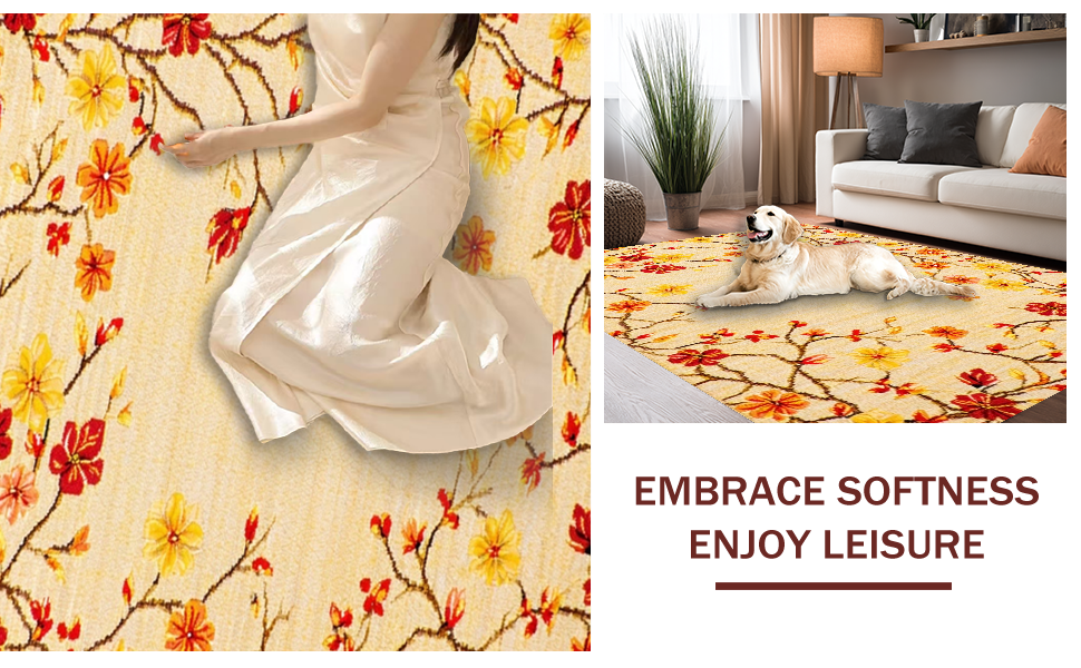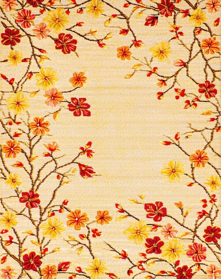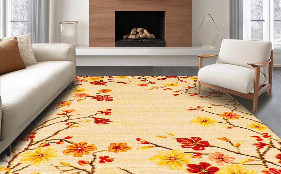 Ultra Soft Area Rug, Non Slip, Stain Resistant, Washable Area Rugs for Living Room, Bedroom, Vibrant Floral Outdoor Statement(Beige) Overview: