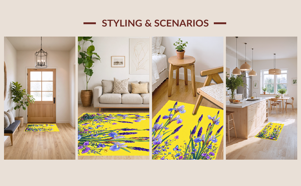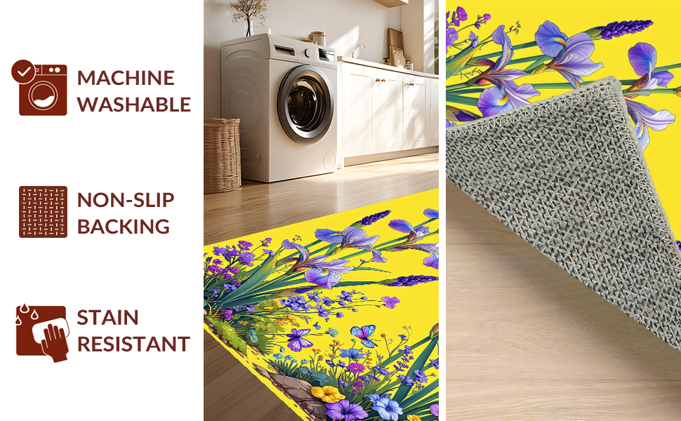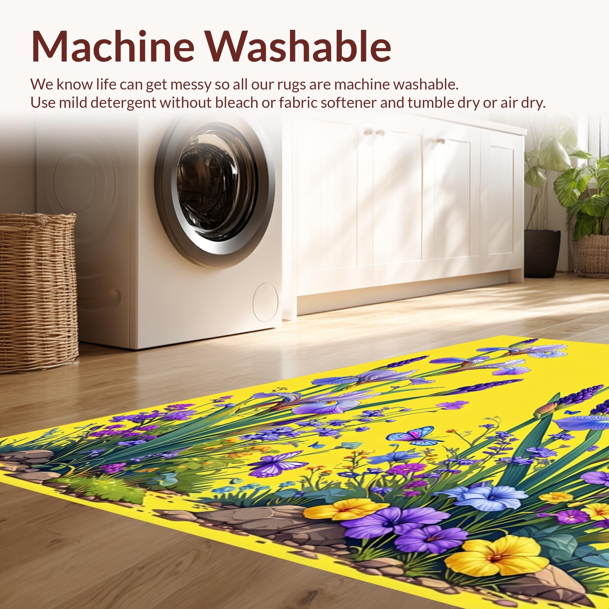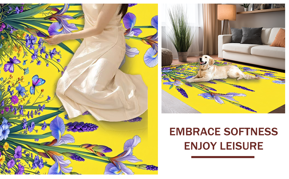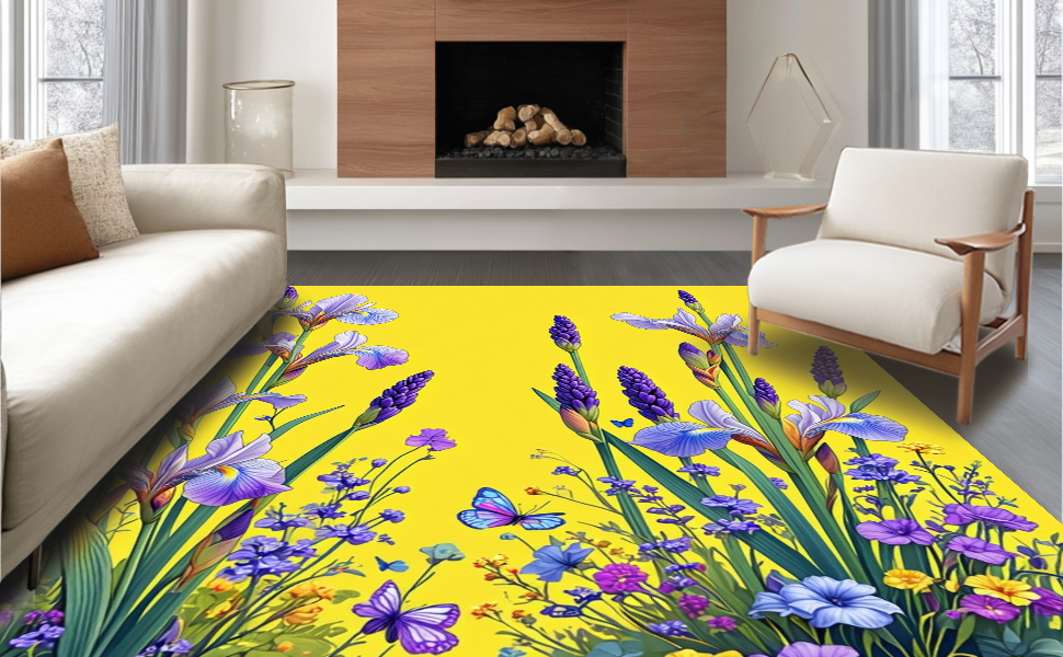 Ultra Soft Area Rug, Non Slip, Stain Resistant, Washable Area Rugs for Living Room, Bedroom, Vibrant Floral Spring Aesthetic(Yellow) Overview: