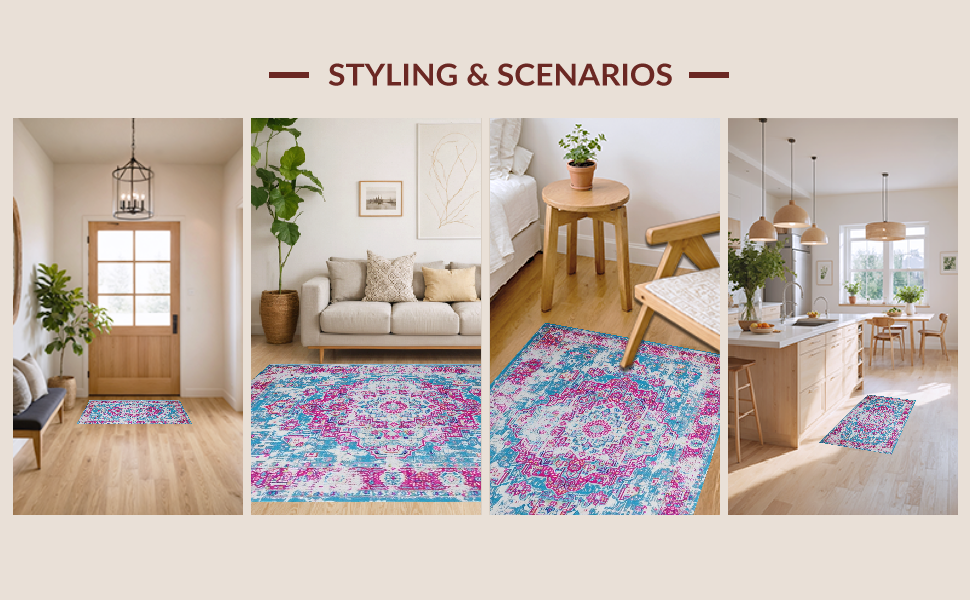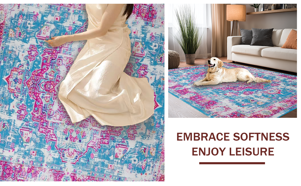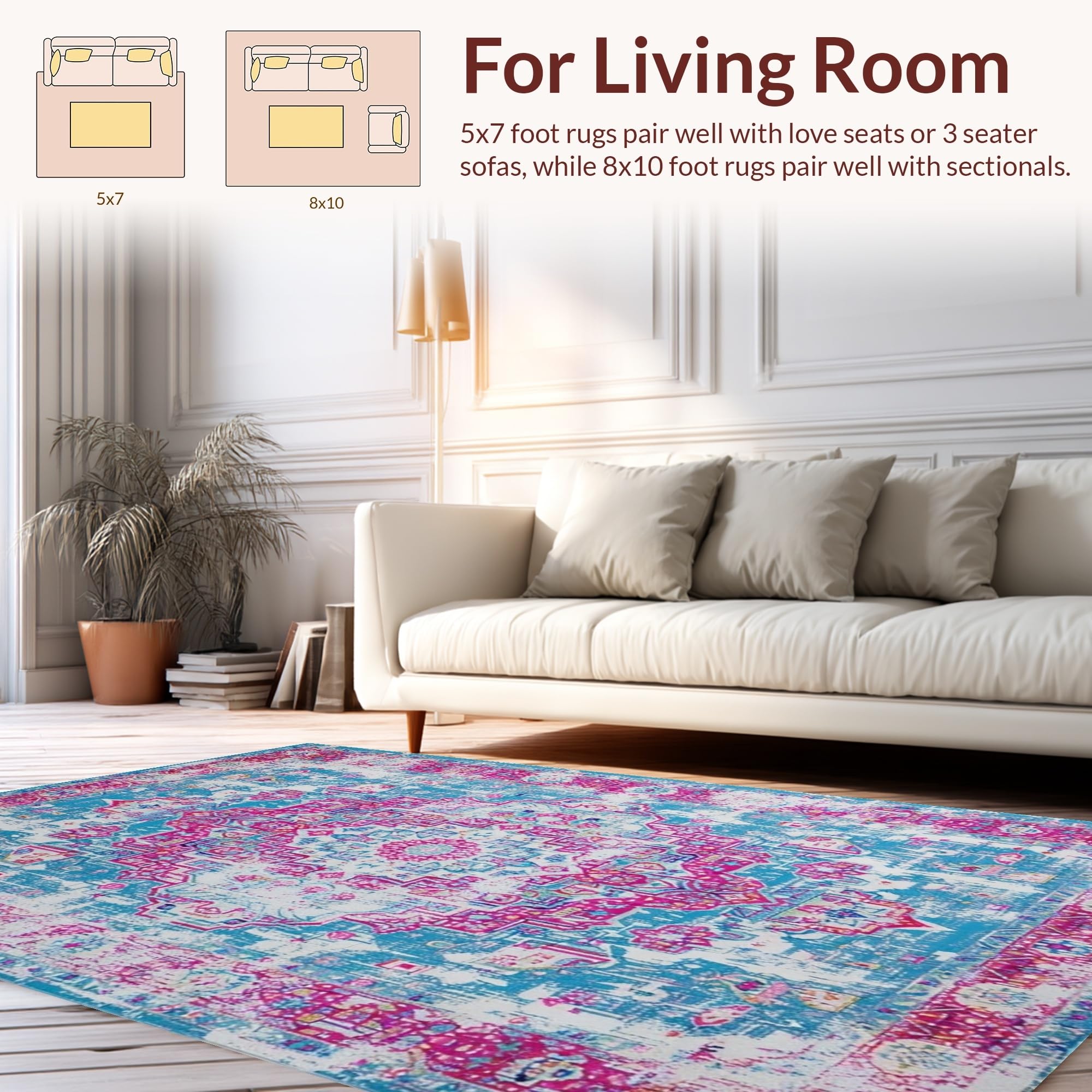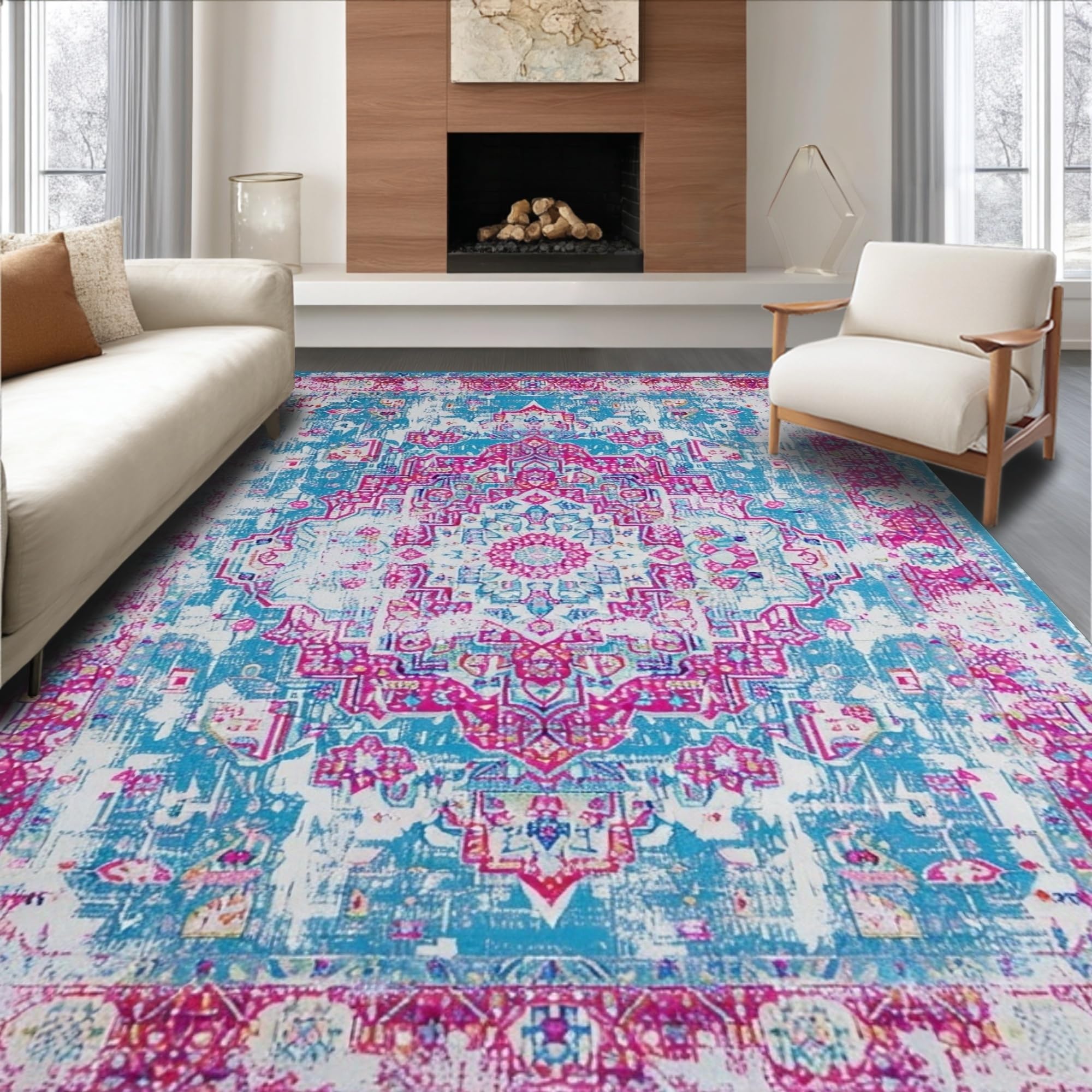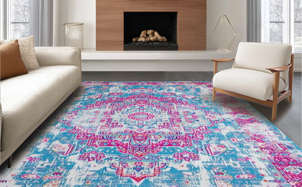 Ultra Soft Area Rug, Non Slip, Stain Resistant, Washable Area Rugs for Living Room, Bedroom, Vibrant Fuchsia Geometric Artistry(Blue) Overview: