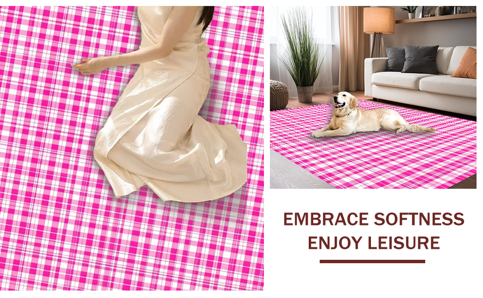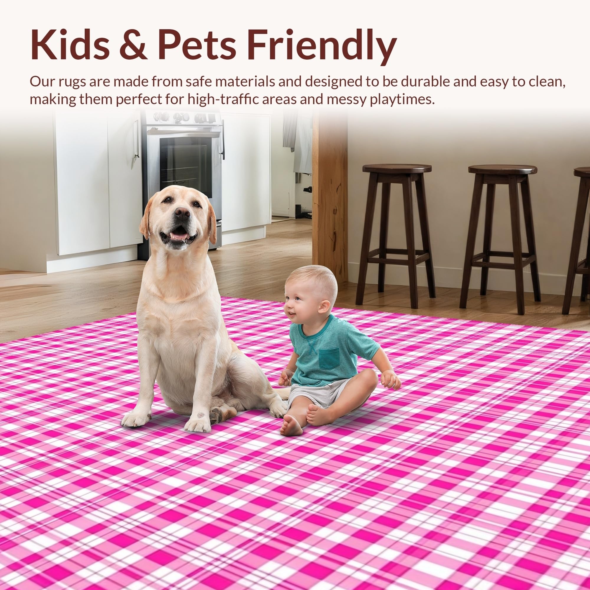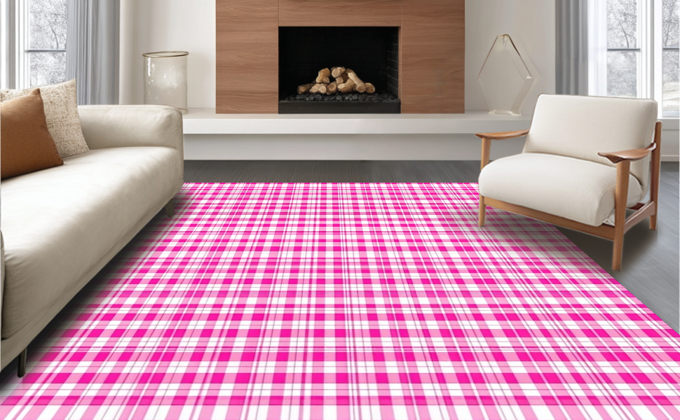 Ultra Soft Area Rug, Non Slip, Stain Resistant, Washable Area Rugs for Living Room, Bedroom, Vibrant Fun Checkered Texture(Pink) Overview:
