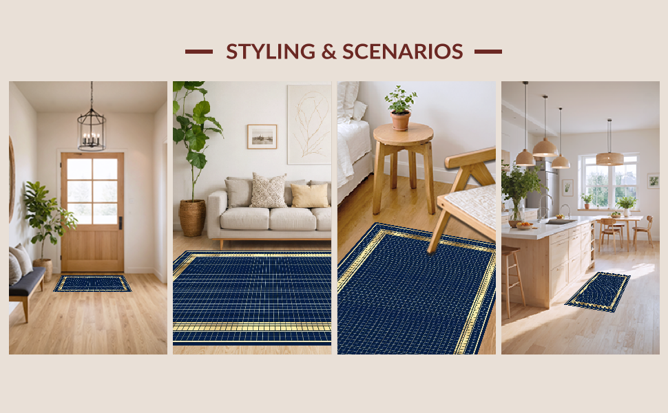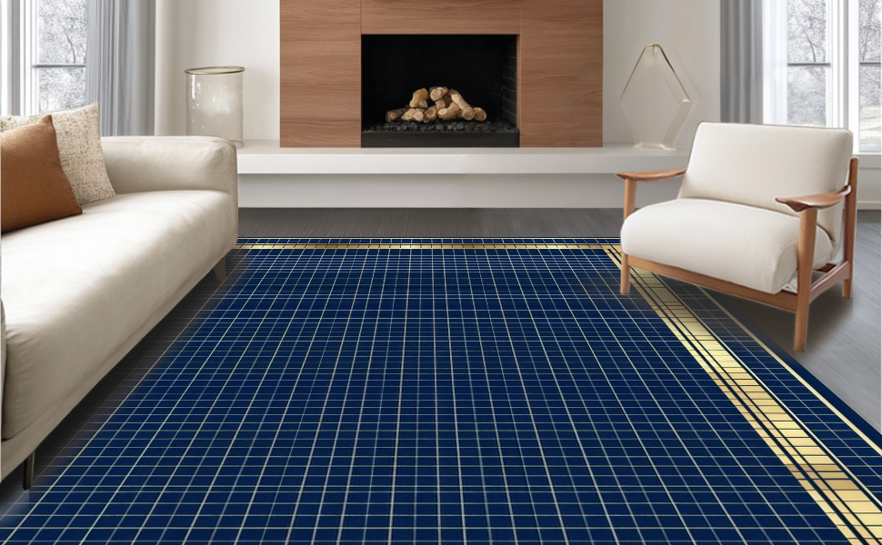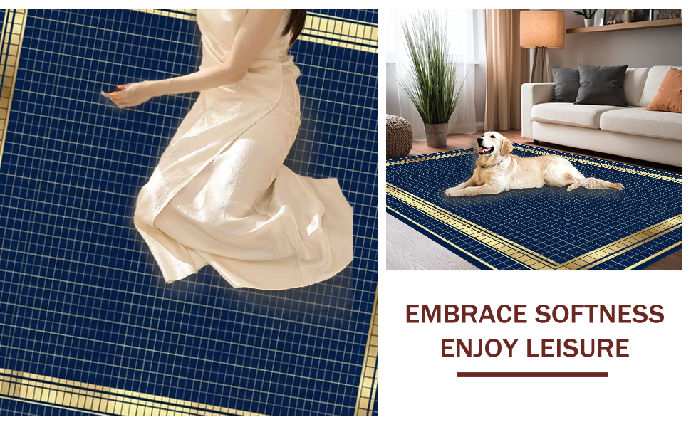Ultra Soft Area Rug, Non Slip, Stain Resistant, Washable Area Rugs for Living Room, Bedroom, Vibrant Geometric Arrangement with Luxe Borders(Blue) Overview: