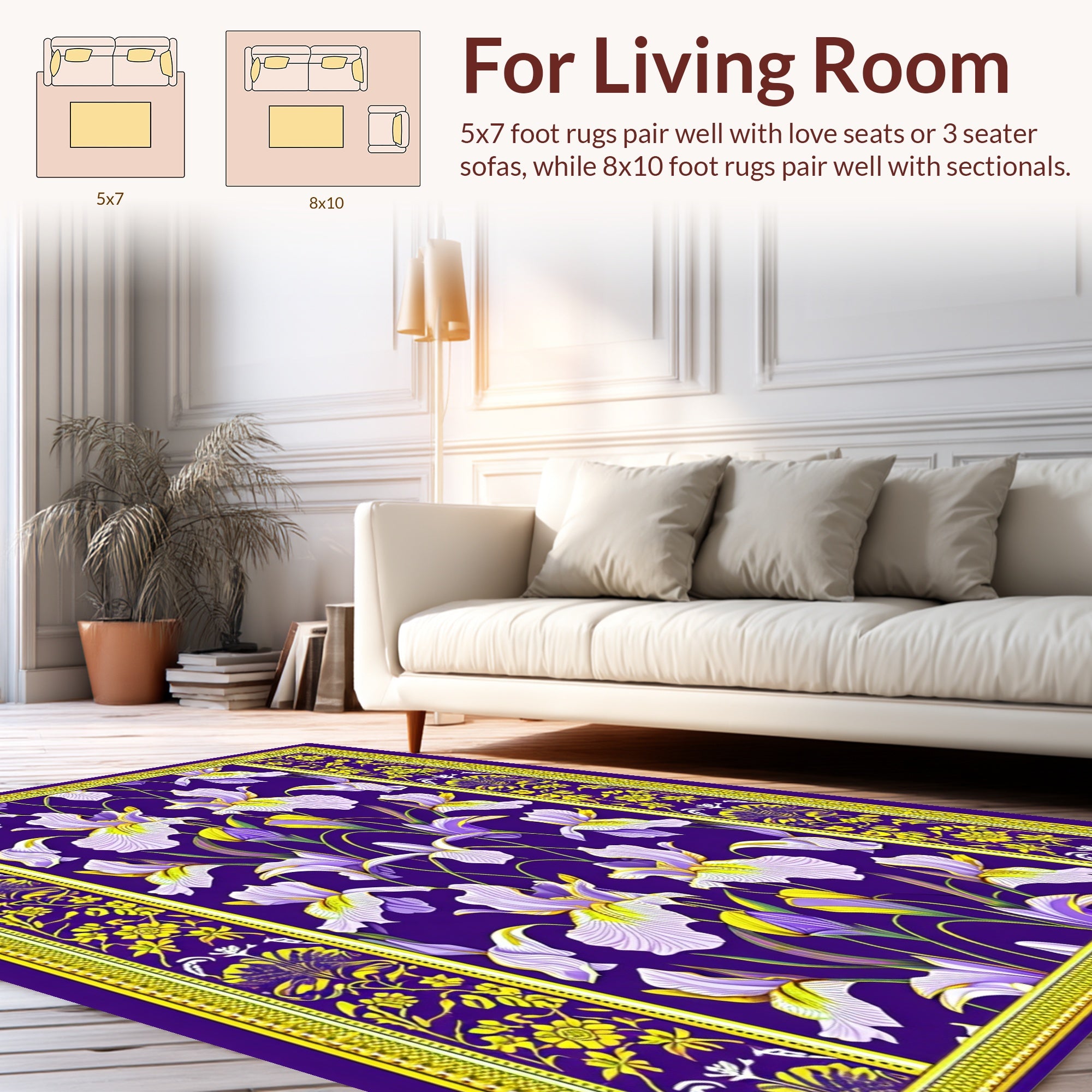 Flatwoven High Traffic Area Rug, Vibrant Geometric Seasonal Accents, Non Slip, Stain Resistant, Washable Area Rugs for Living Room, Bedroom (Purple) Overview: