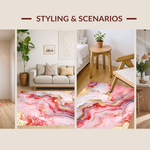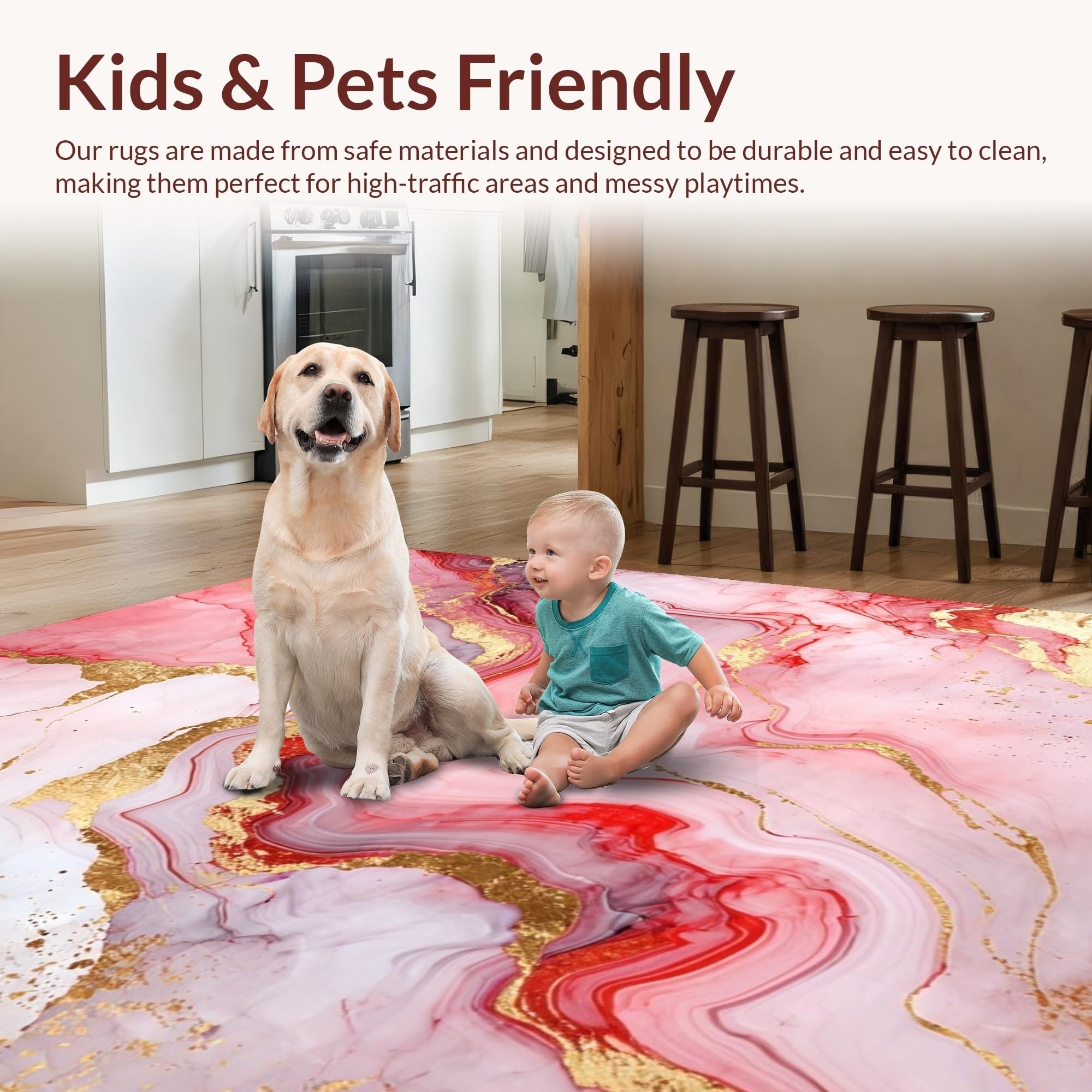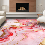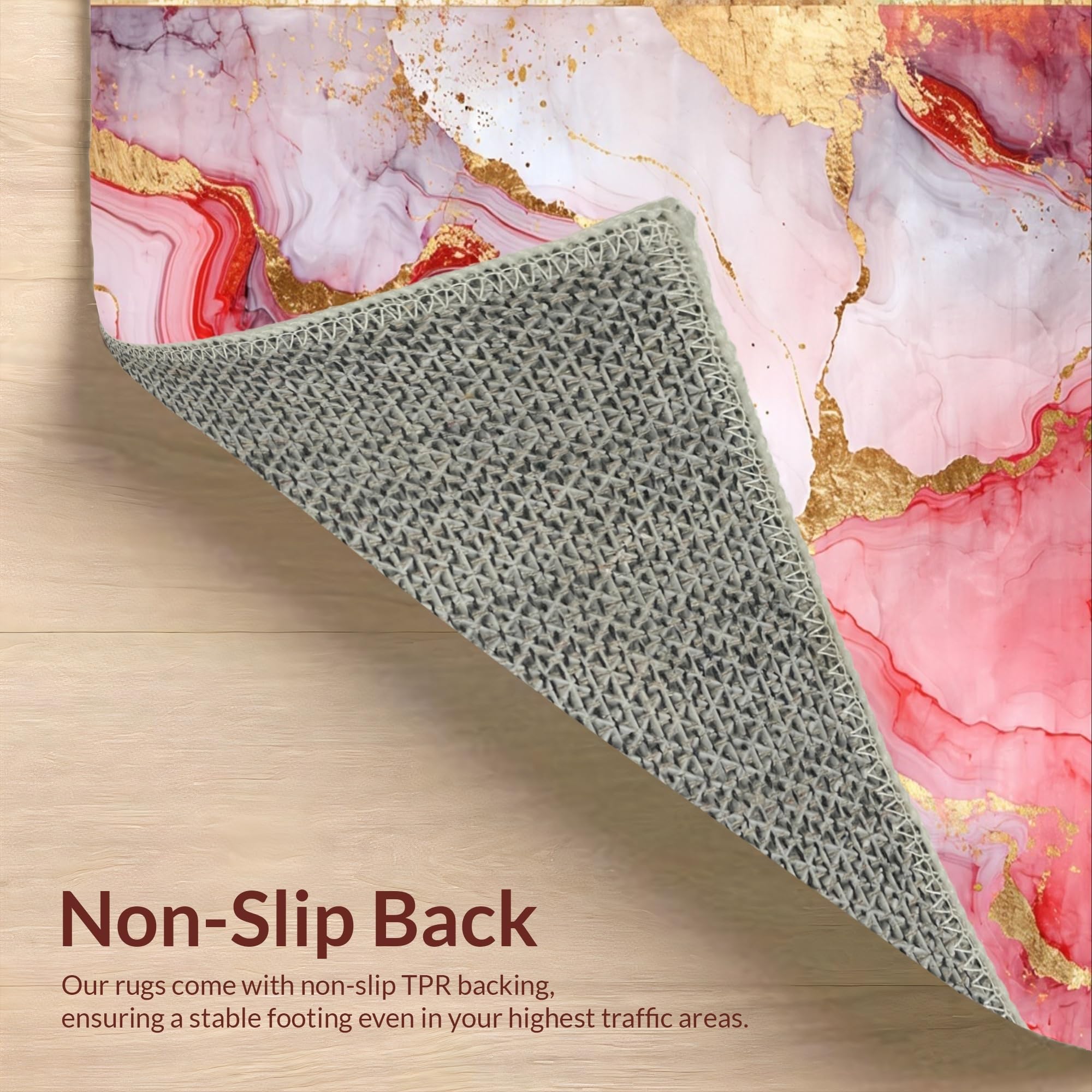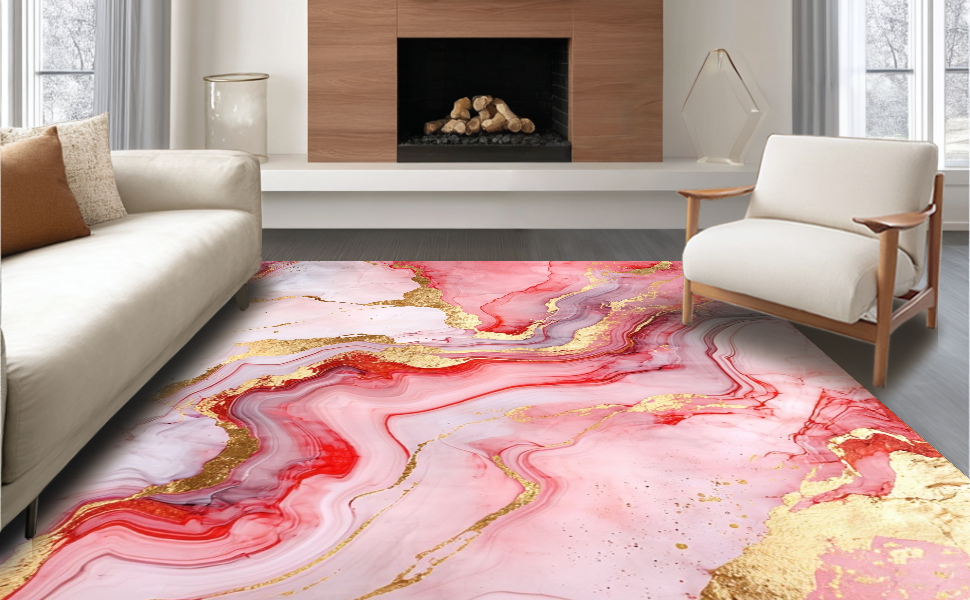 Ultra Soft Area Rug, Non Slip, Stain Resistant, Washable Area Rugs for Living Room, Bedroom, Vibrant Gold Accented Fluid Motif(Red) Overview: