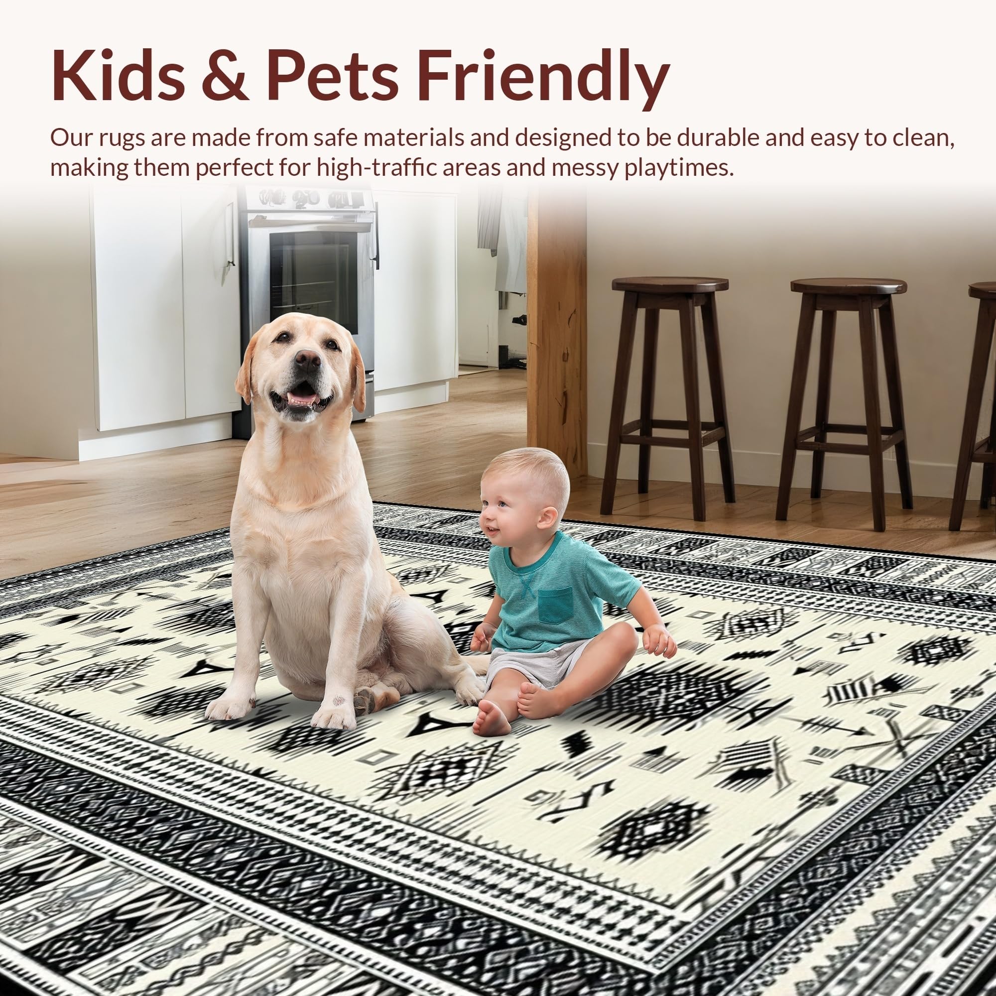 Ultra Soft Area Rug, Non Slip, Stain Resistant, Washable Area Rugs for Living Room, Bedroom, Vibrant Graphic Abstract Layout(Gray) Overview: