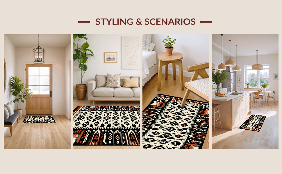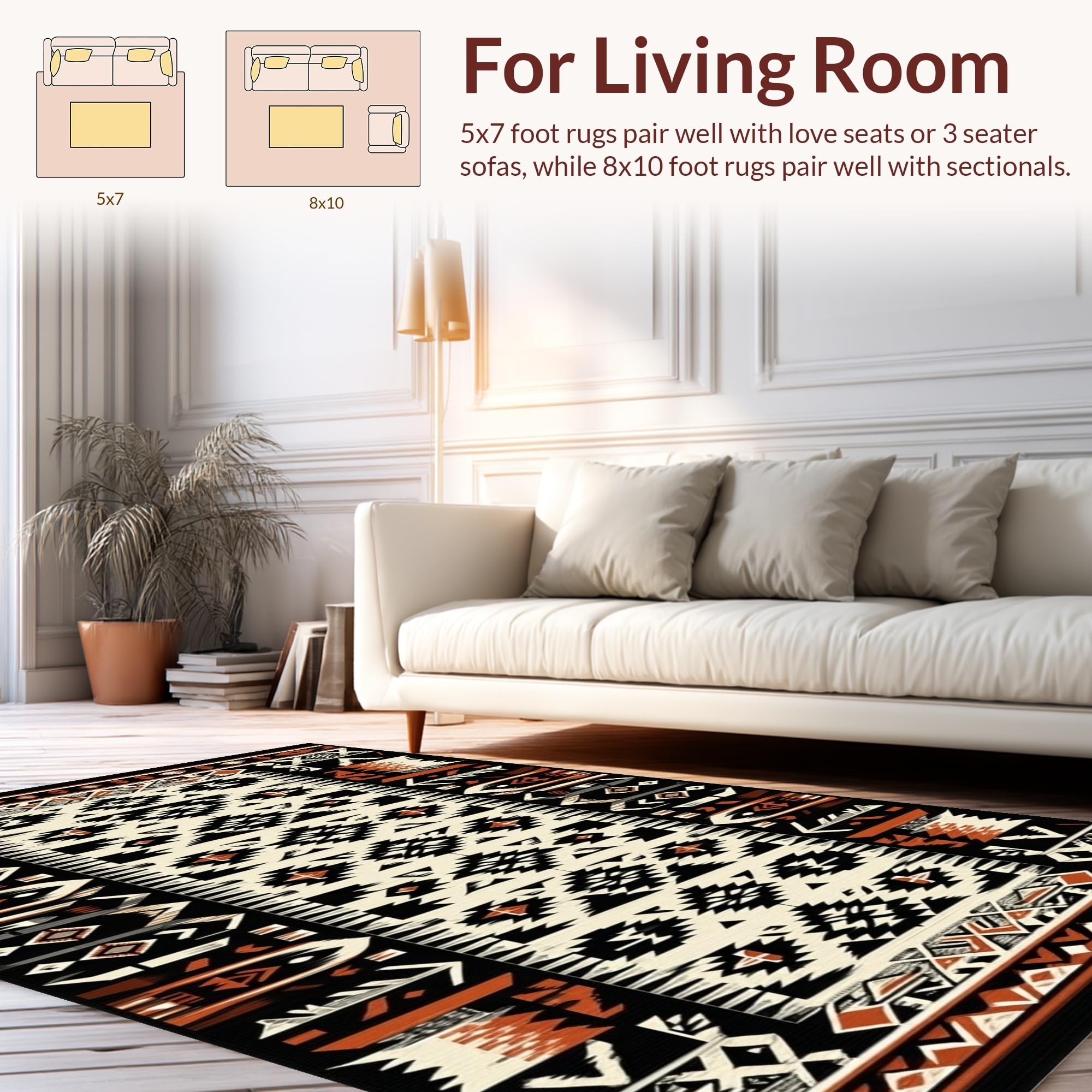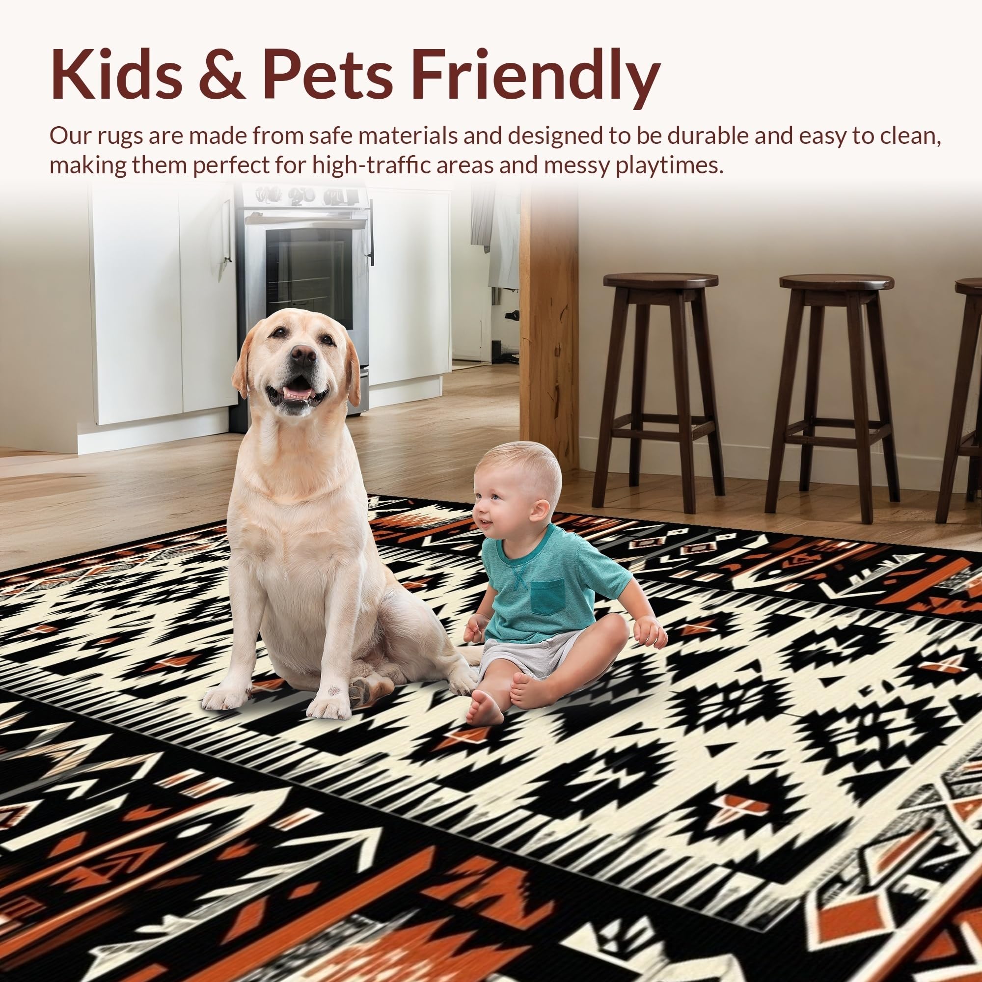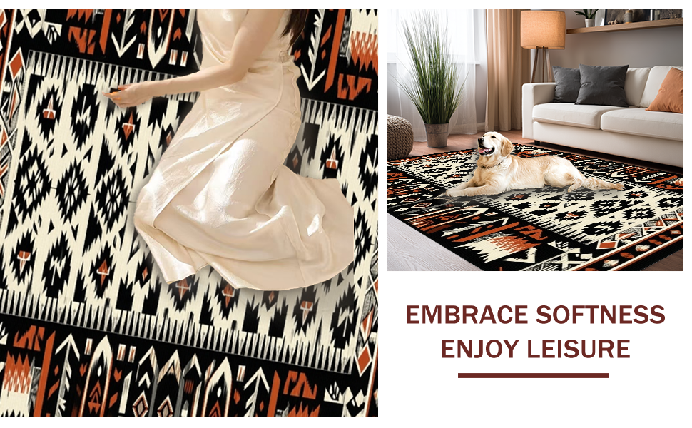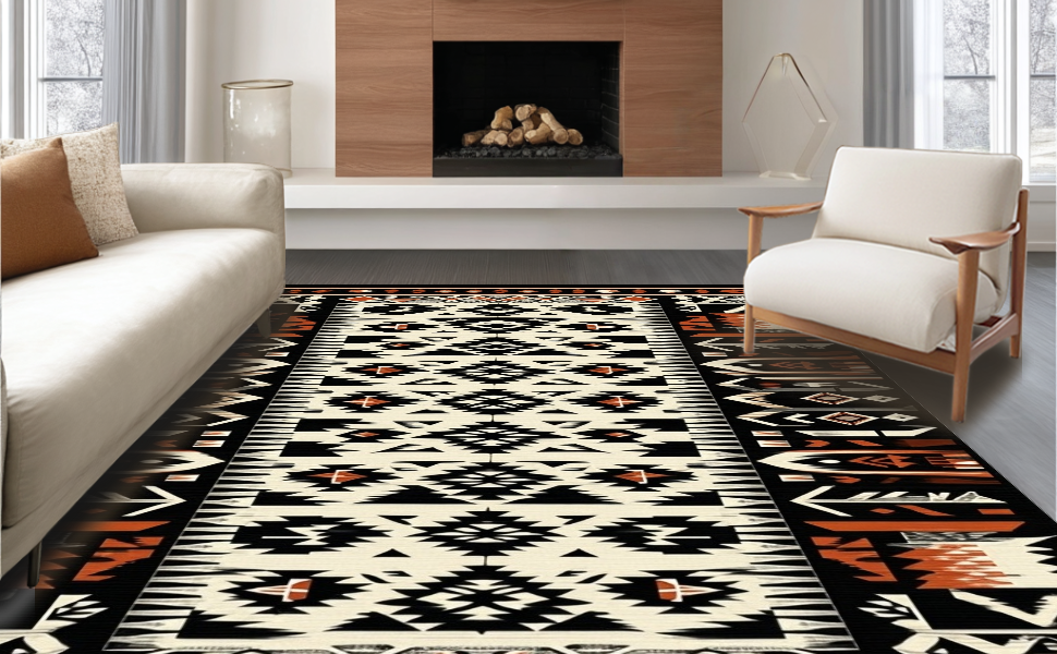 Ultra Soft Area Rug, Non Slip, Stain Resistant, Washable Area Rugs for Living Room, Bedroom, Vibrant Graphic Trellis Motif(Black) Overview: