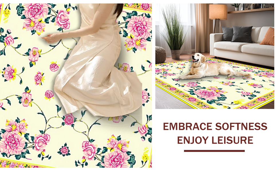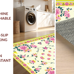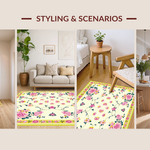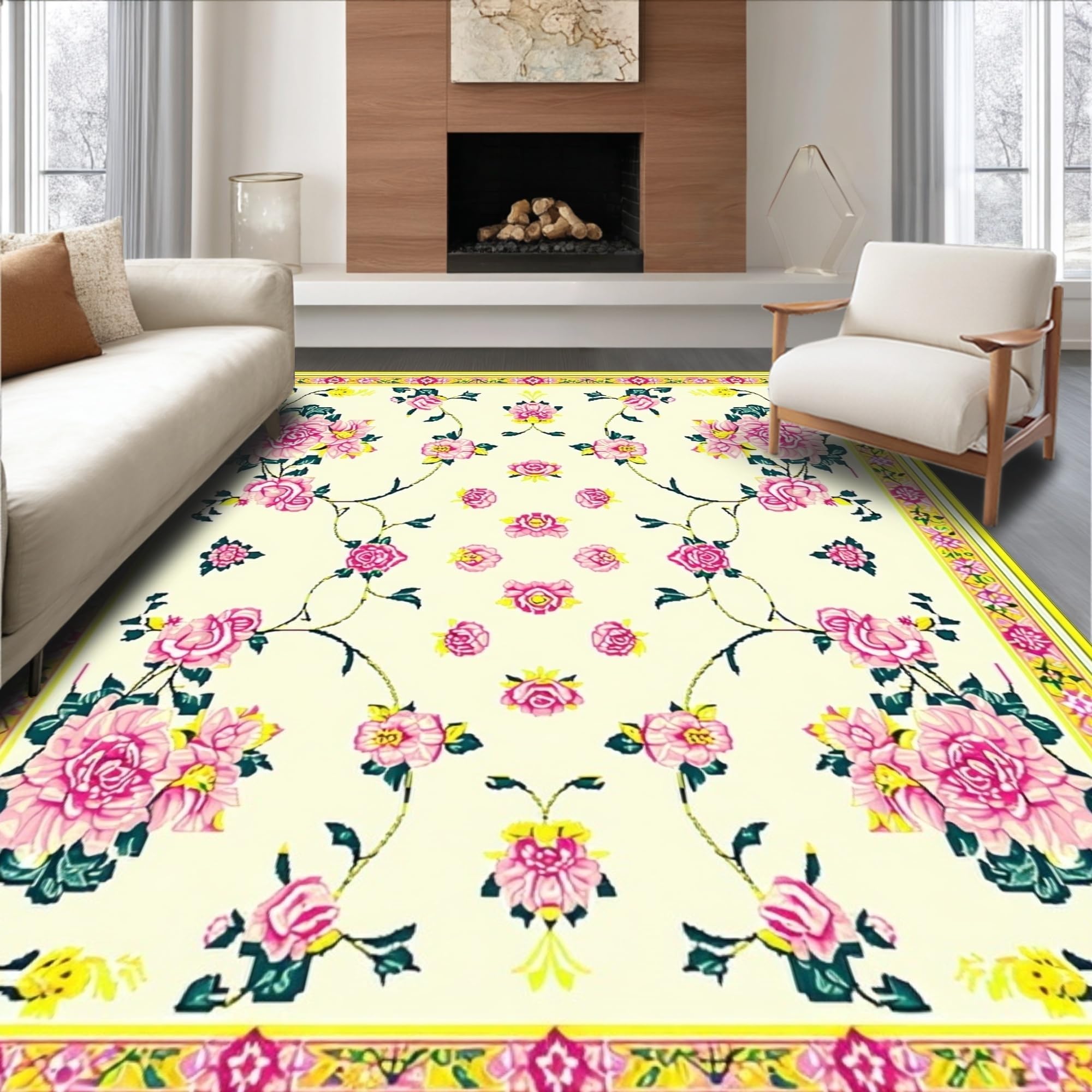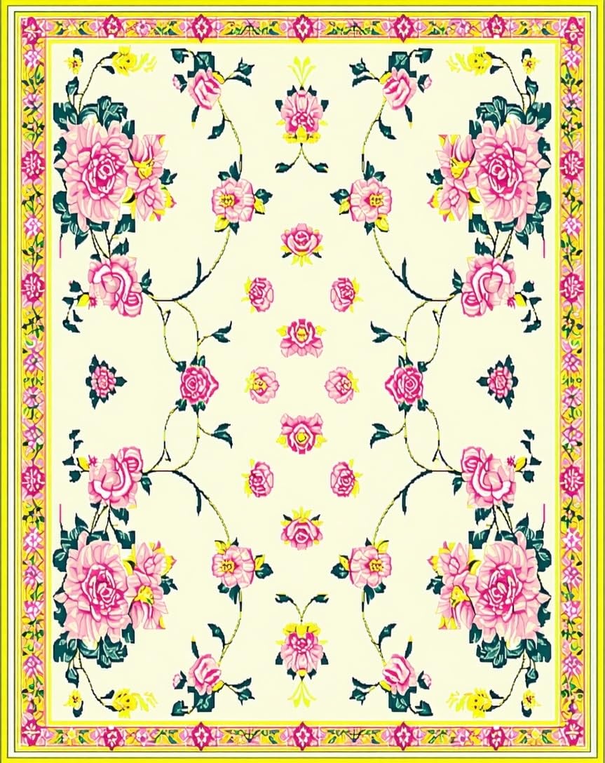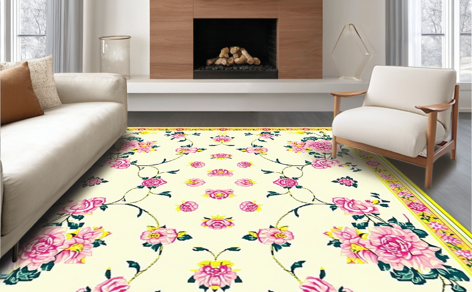 Ultra Soft Area Rug, Non Slip, Stain Resistant, Washable Area Rugs for Living Room, Bedroom, Vibrant Green and Pink Floral Elegance(Ivory) Overview: