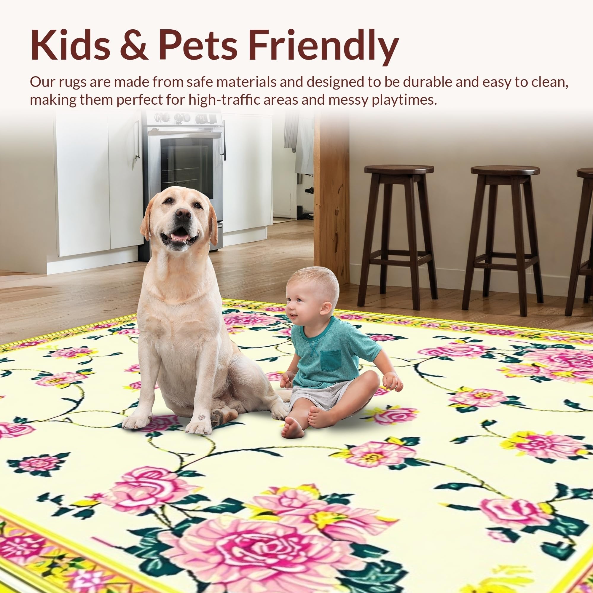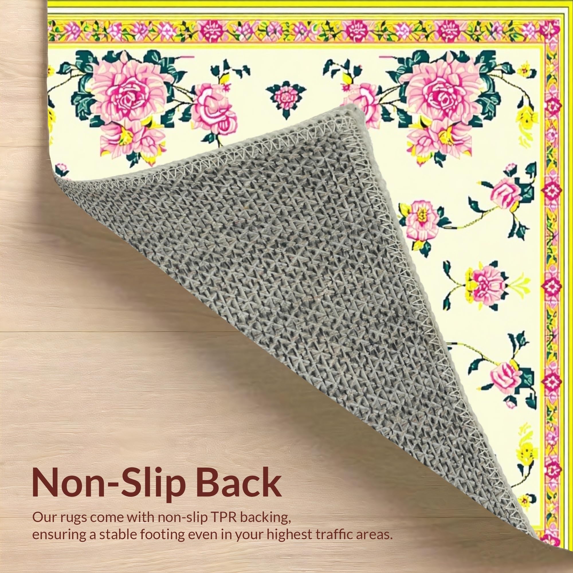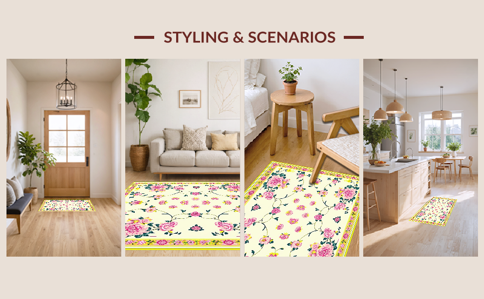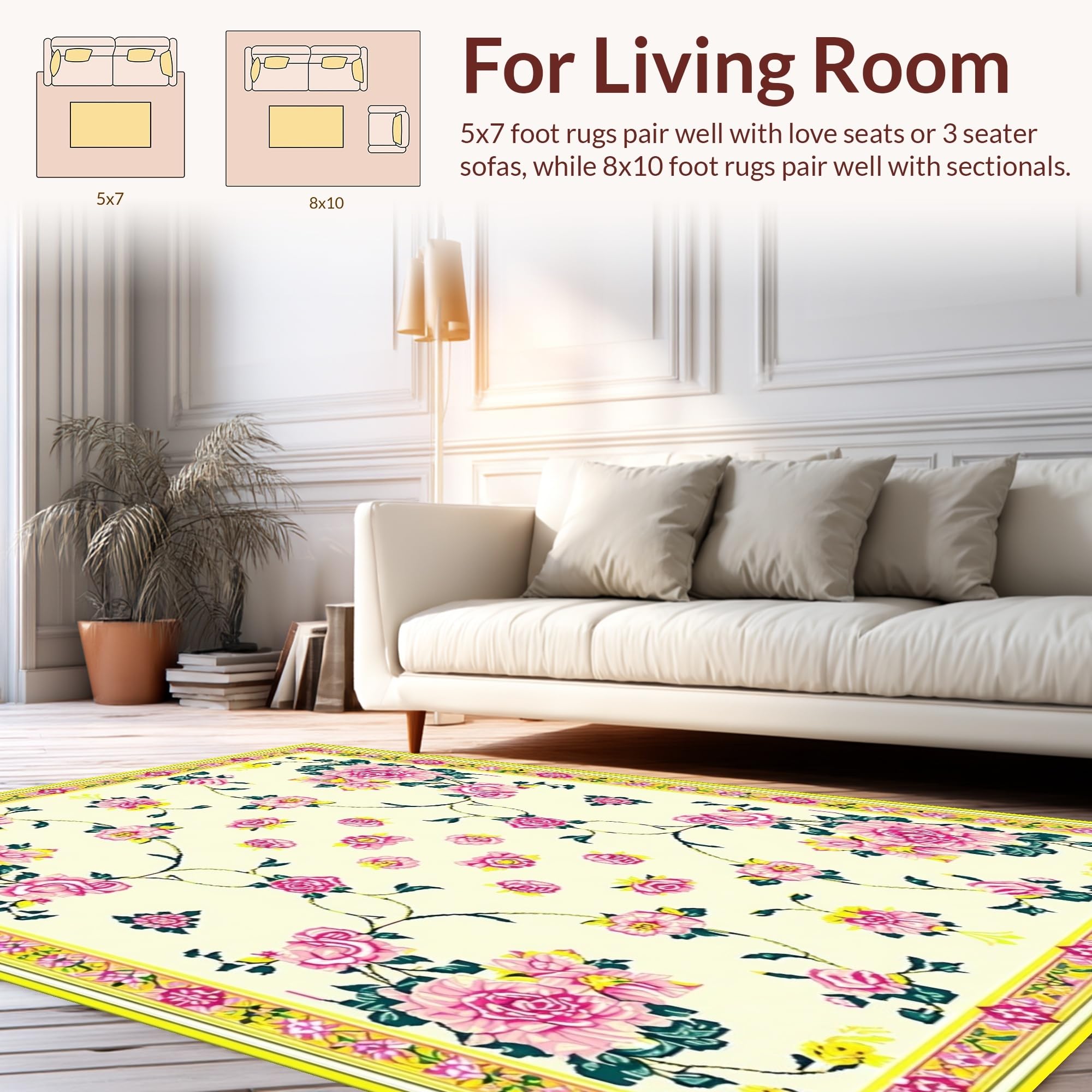 Ultra Soft Area Rug, Non Slip, Stain Resistant, Washable Area Rugs for Living Room, Bedroom, Vibrant Green and Pink Floral Elegance(Ivory) Overview: