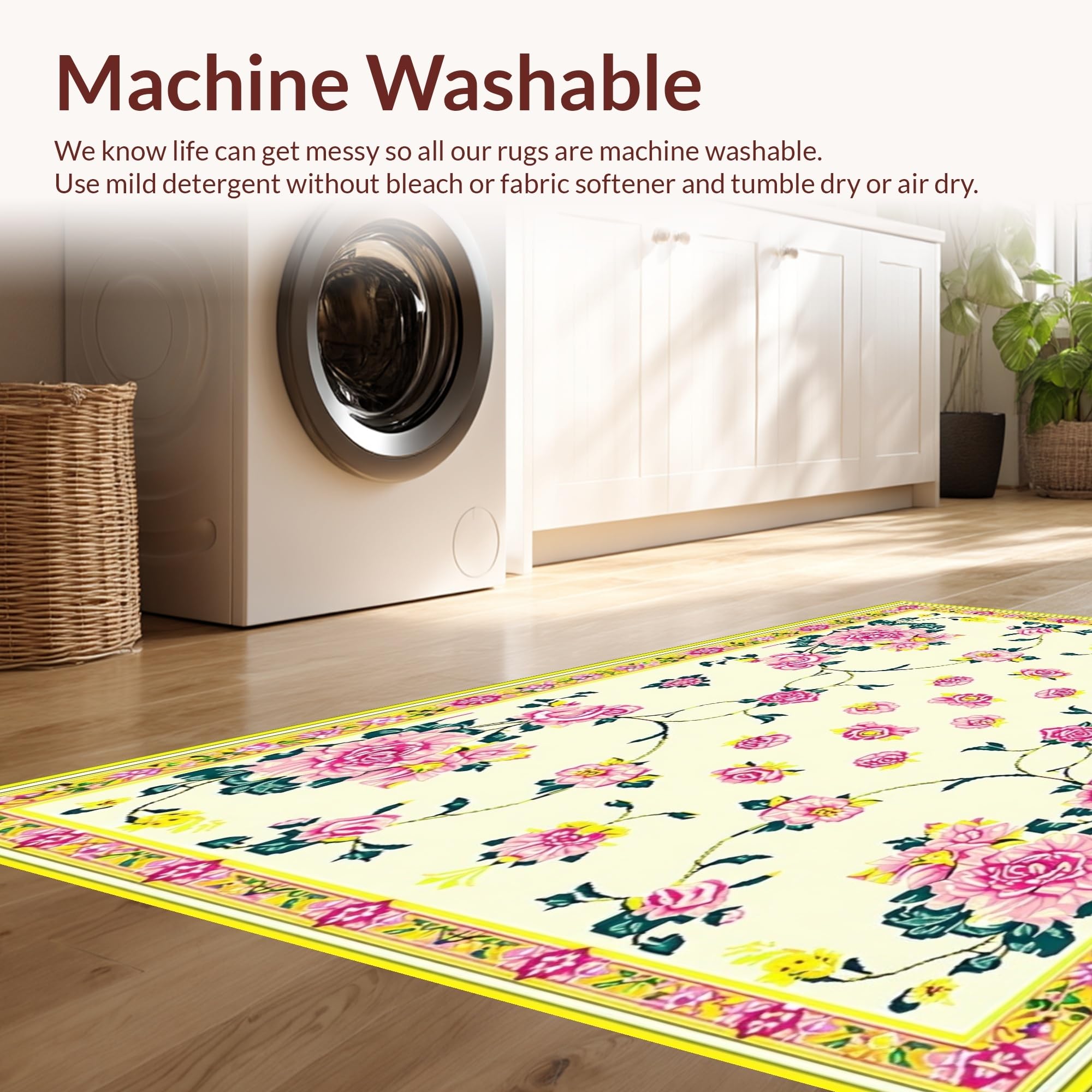 - Machine Washable: Our rugs can be easily thrown in the wash machine.