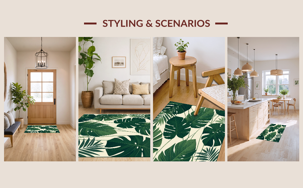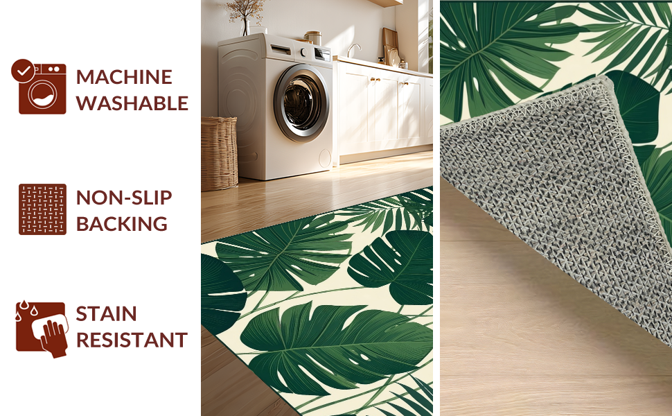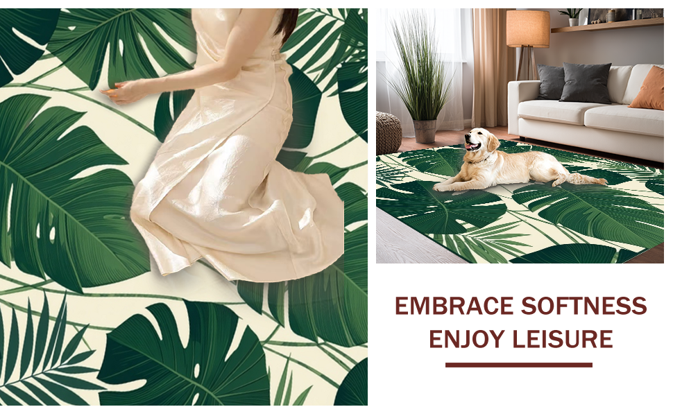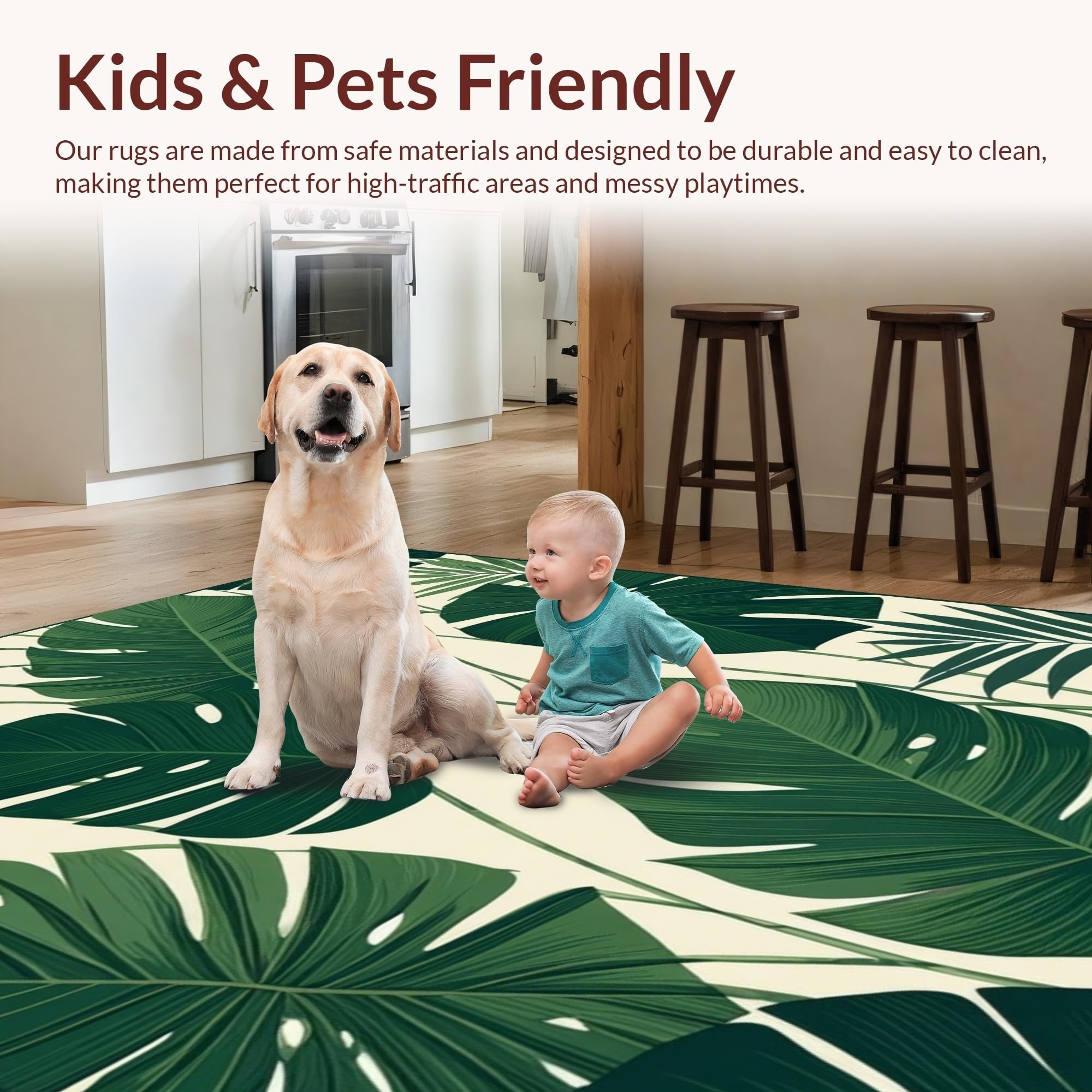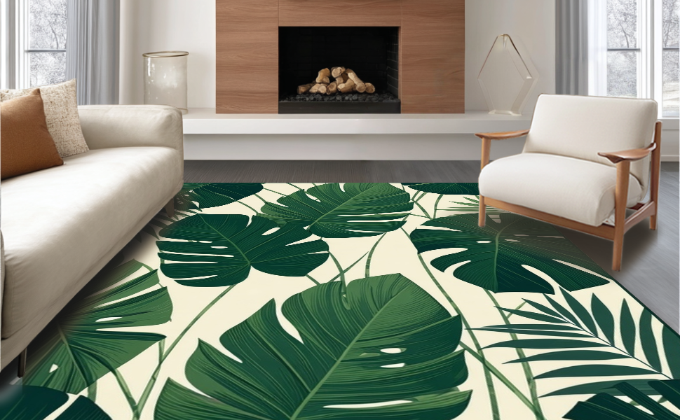 Ultra Soft Area Rug, Non Slip, Stain Resistant, Washable Area Rugs for Living Room, Bedroom, Vibrant Green Botanical Motif(Green) Overview: