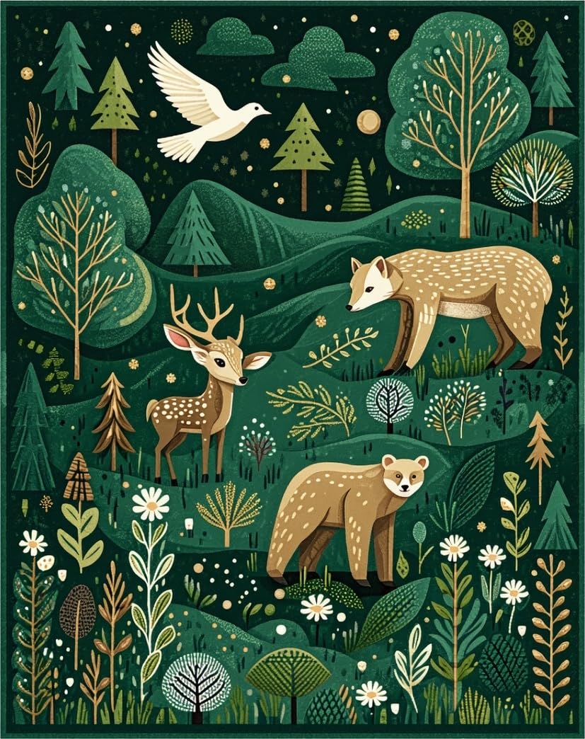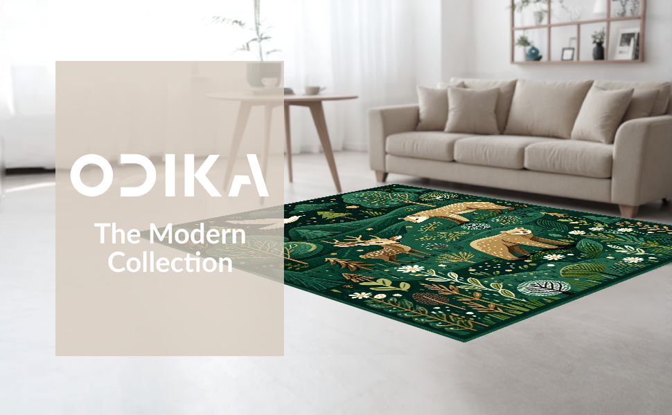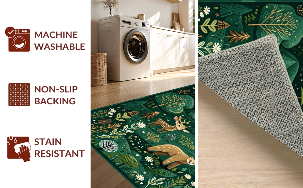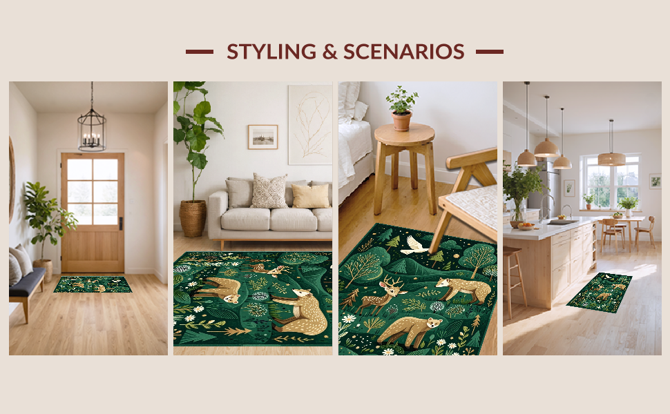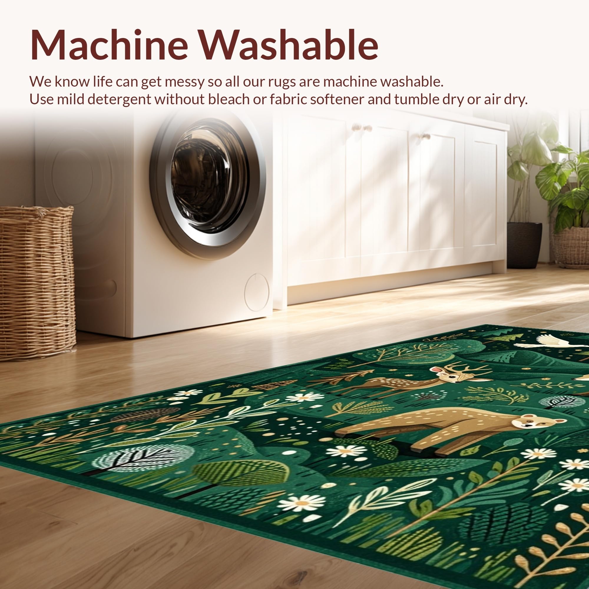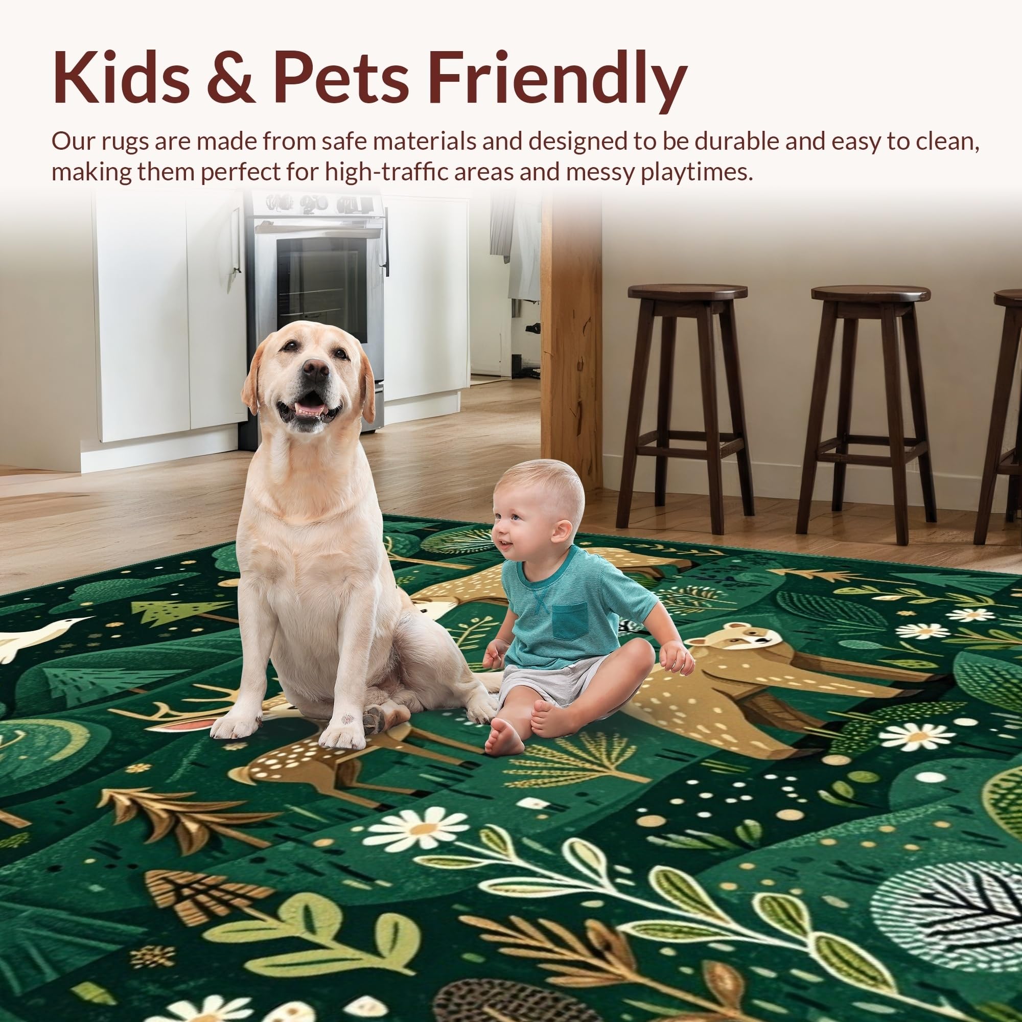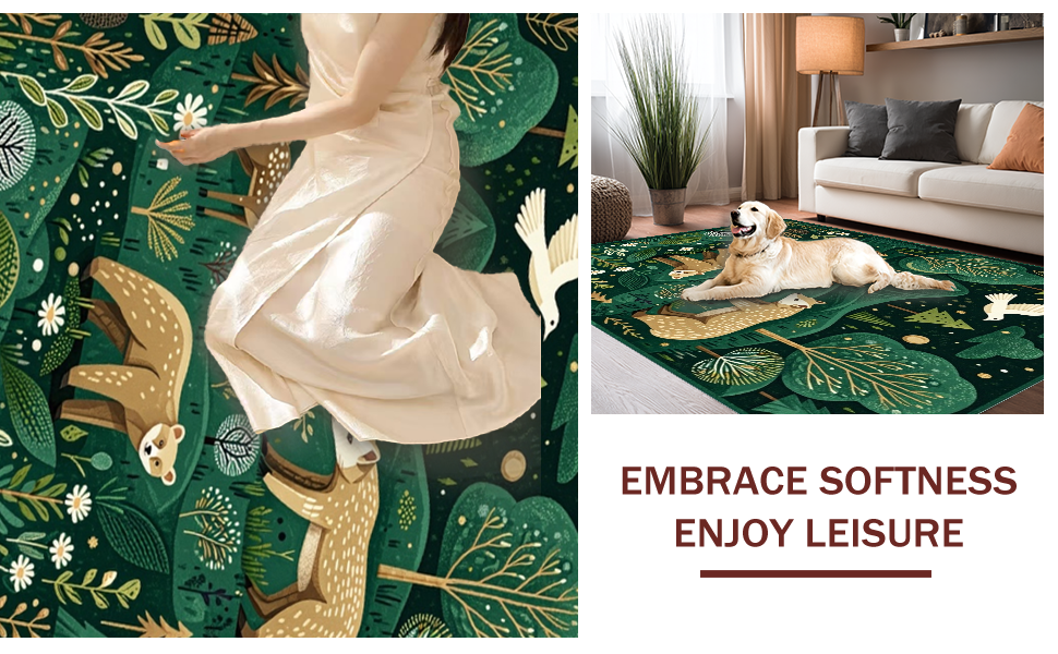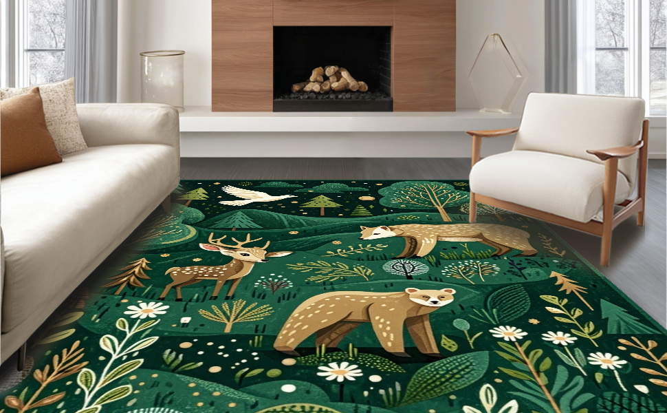 Ultra Soft Area Rug, Non Slip, Stain Resistant, Washable Area Rugs for Living Room, Bedroom, Vibrant Green Wildlife Silhouette(Green) Overview: