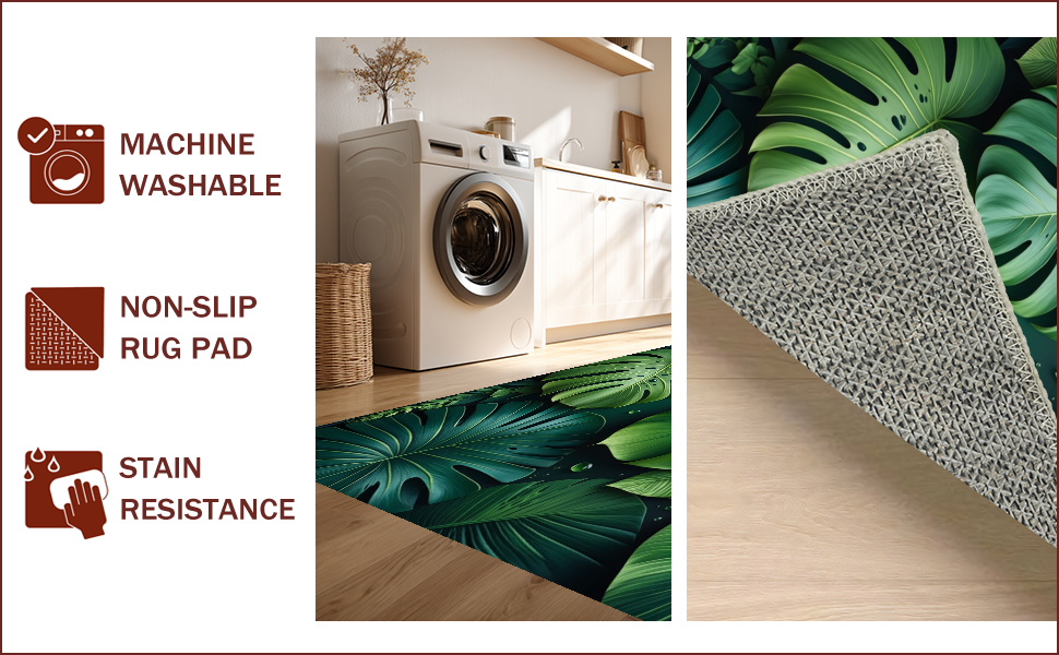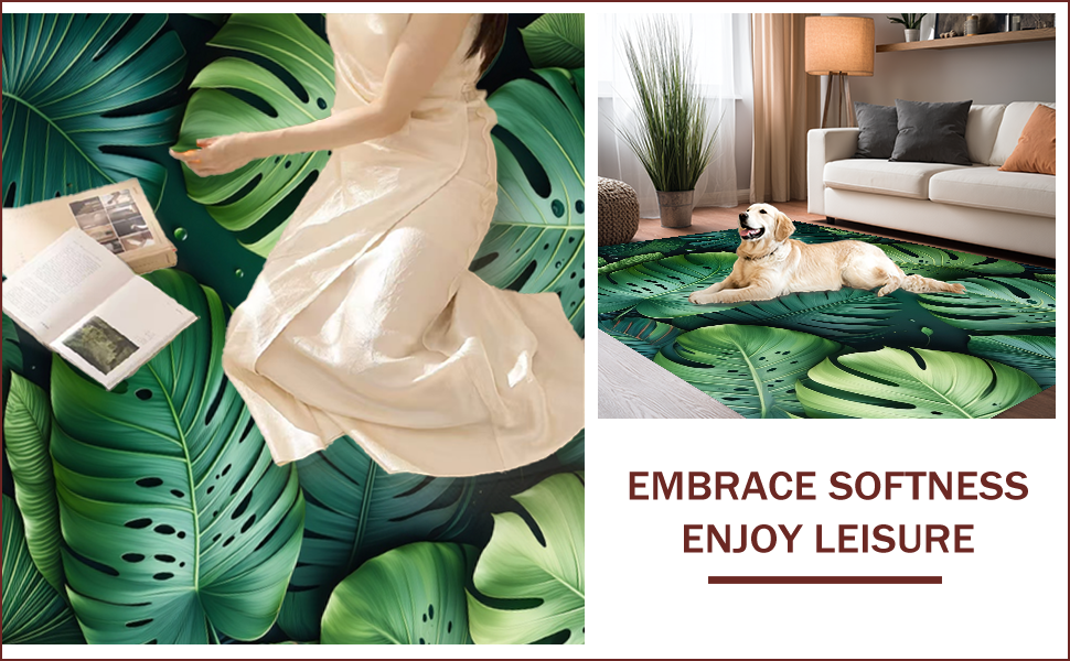 Ultra Soft Area Rug, Non Slip, Stain Resistant, Washable Area Rugs for Living Room, Bedroom, Vibrant Hawaiian Flora Motif(Green) Overview: