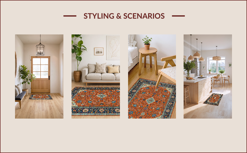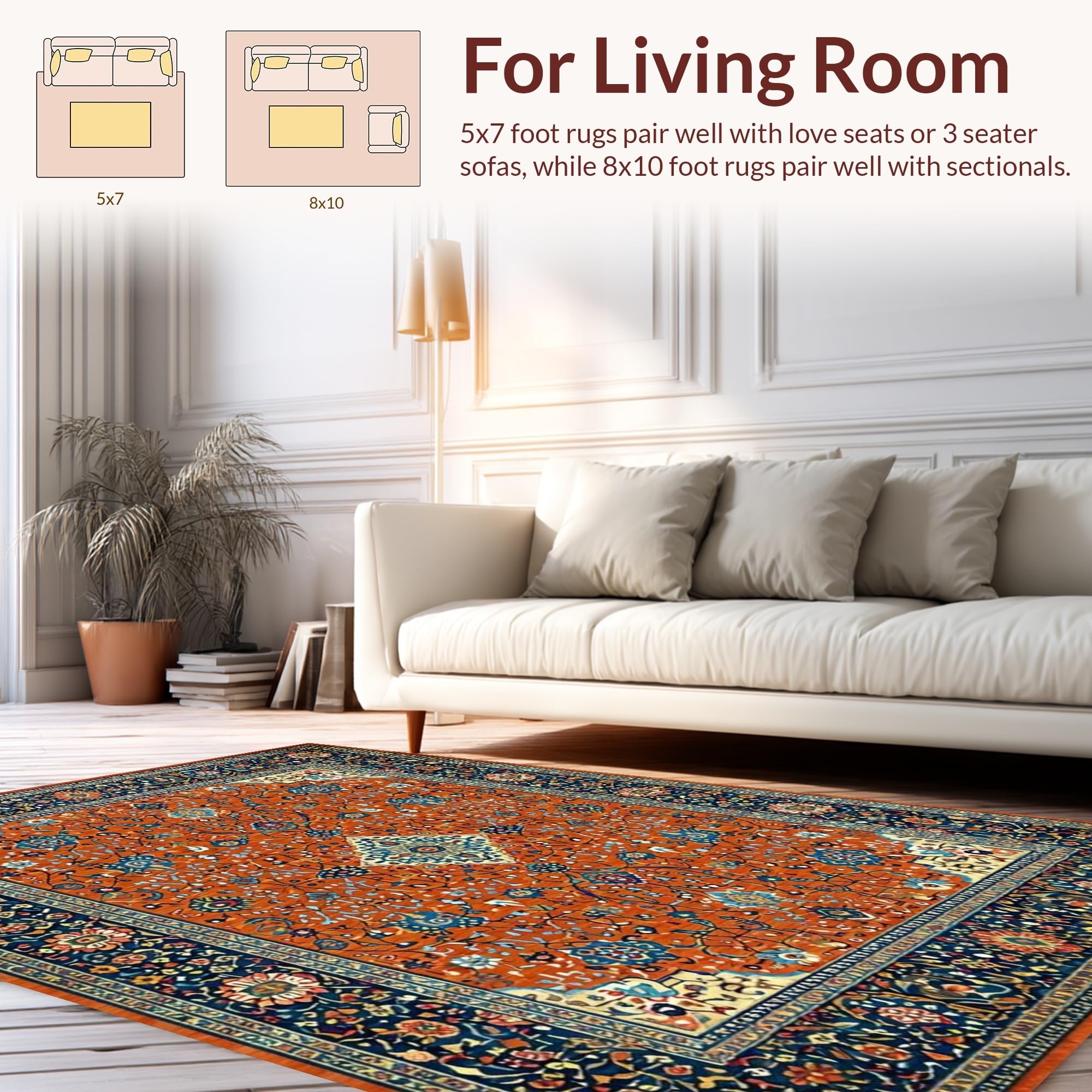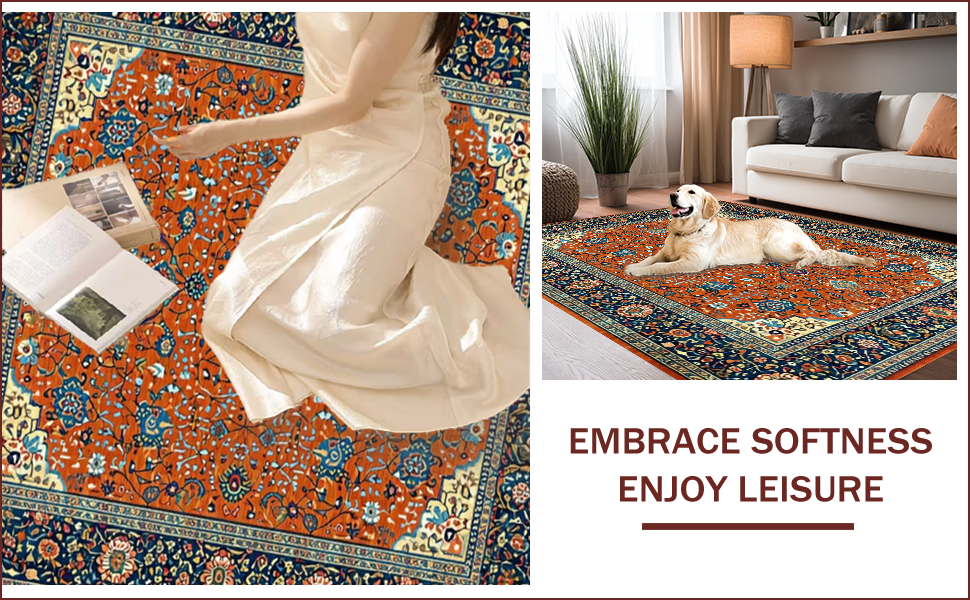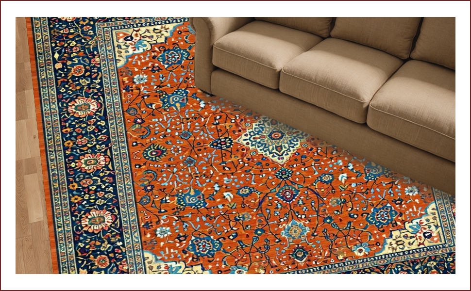 Ultra Soft Area Rug, Non Slip, Stain Resistant, Washable Area Rugs for Living Room, Bedroom, Vibrant High-Low Textured Motif(Orange) Overview: