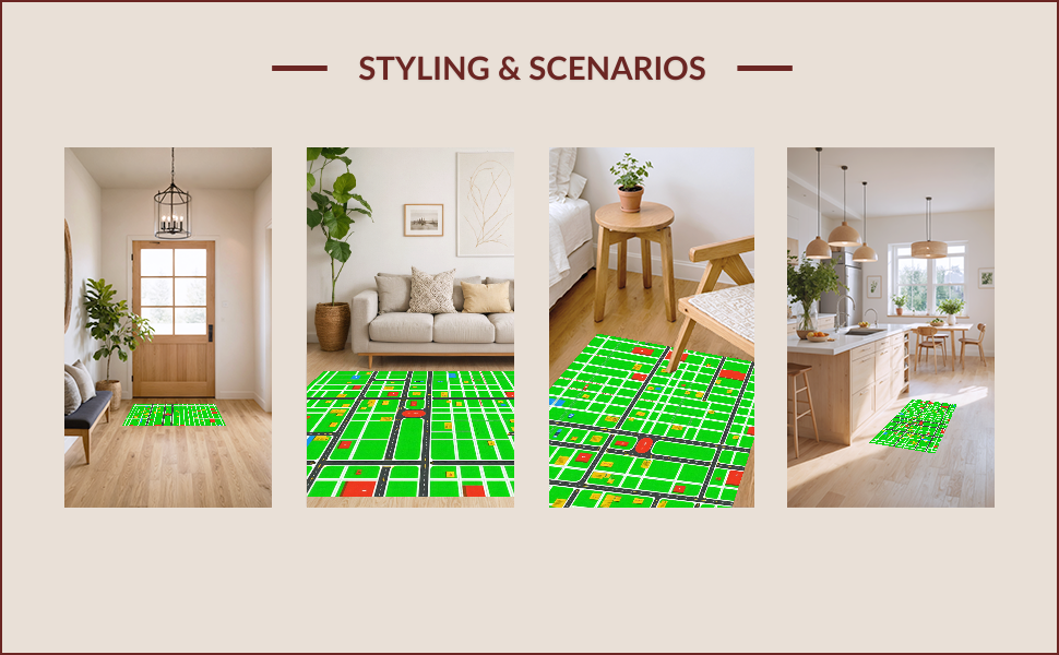 Ultra Soft Area Rug, Non Slip, Stain Resistant, Washable Area Rugs for Living Room, Bedroom, Vibrant Interactive City Map Visual(Green) Overview: