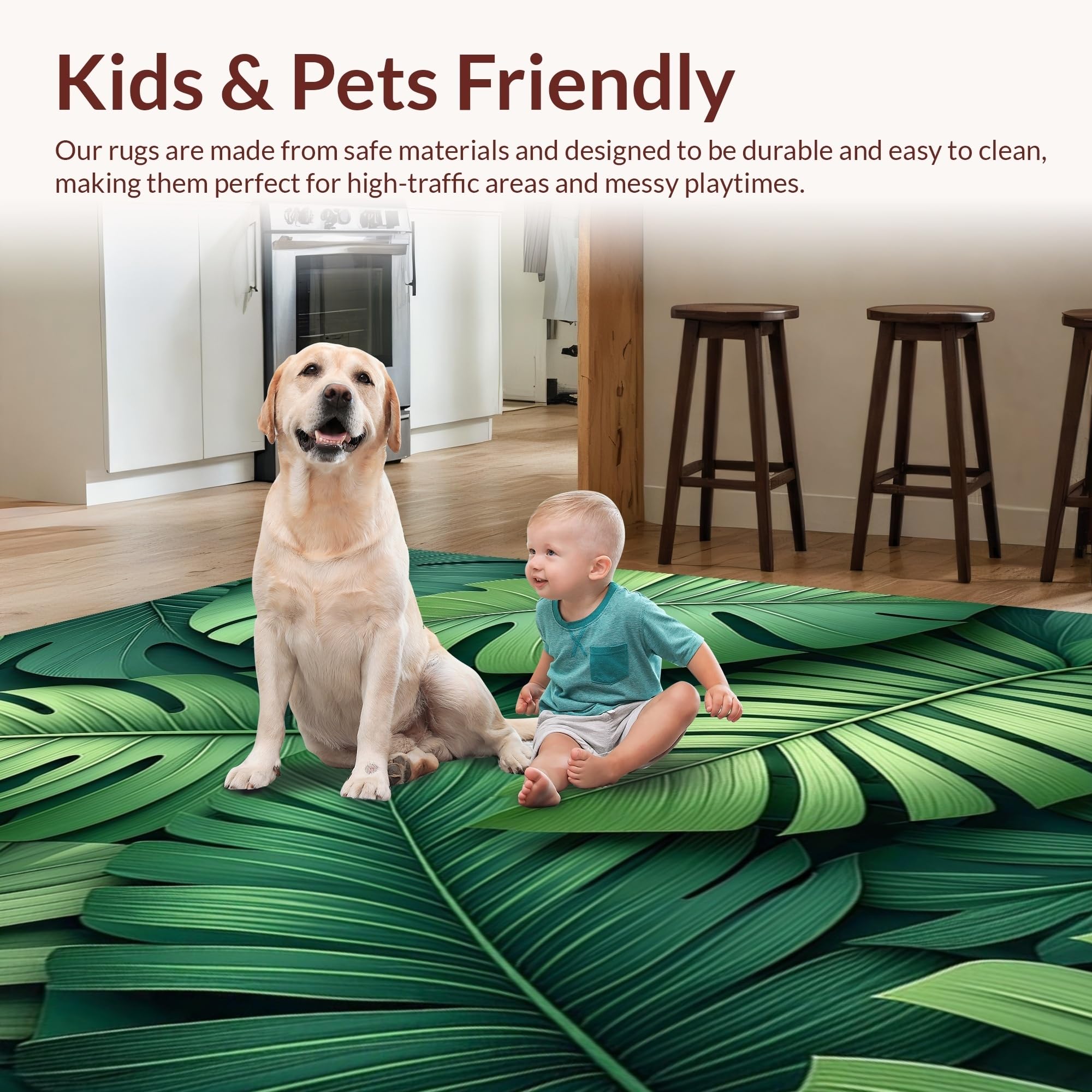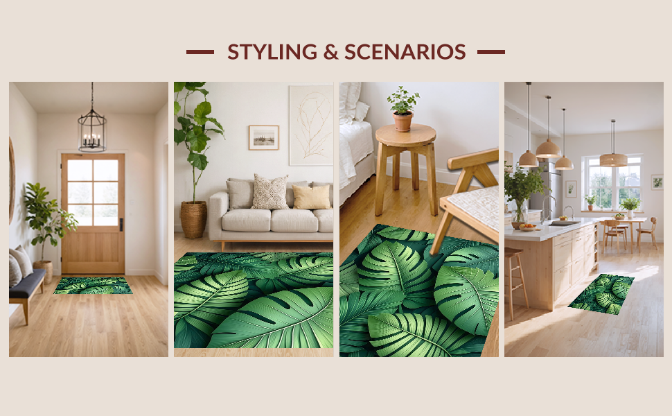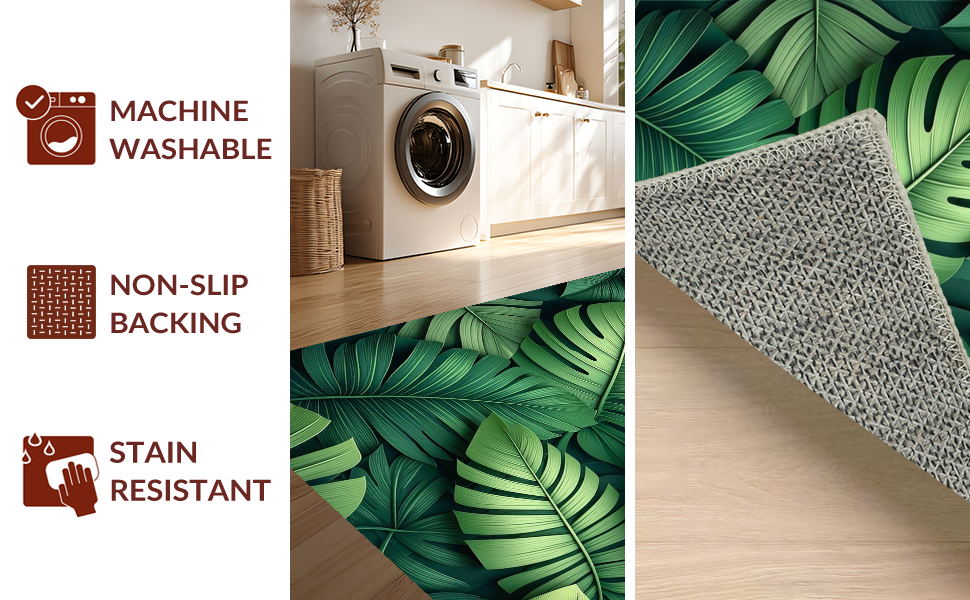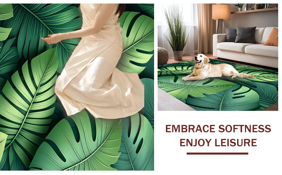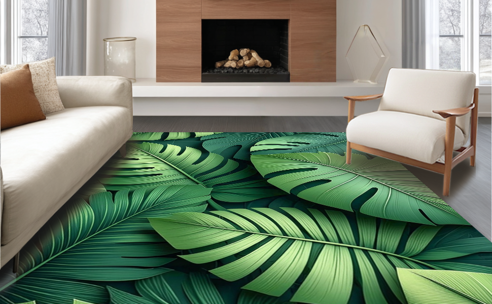 Ultra Soft Area Rug, Non Slip, Stain Resistant, Washable Area Rugs for Living Room, Bedroom, Vibrant Leafy Abstract Aesthetic(Green) Overview: