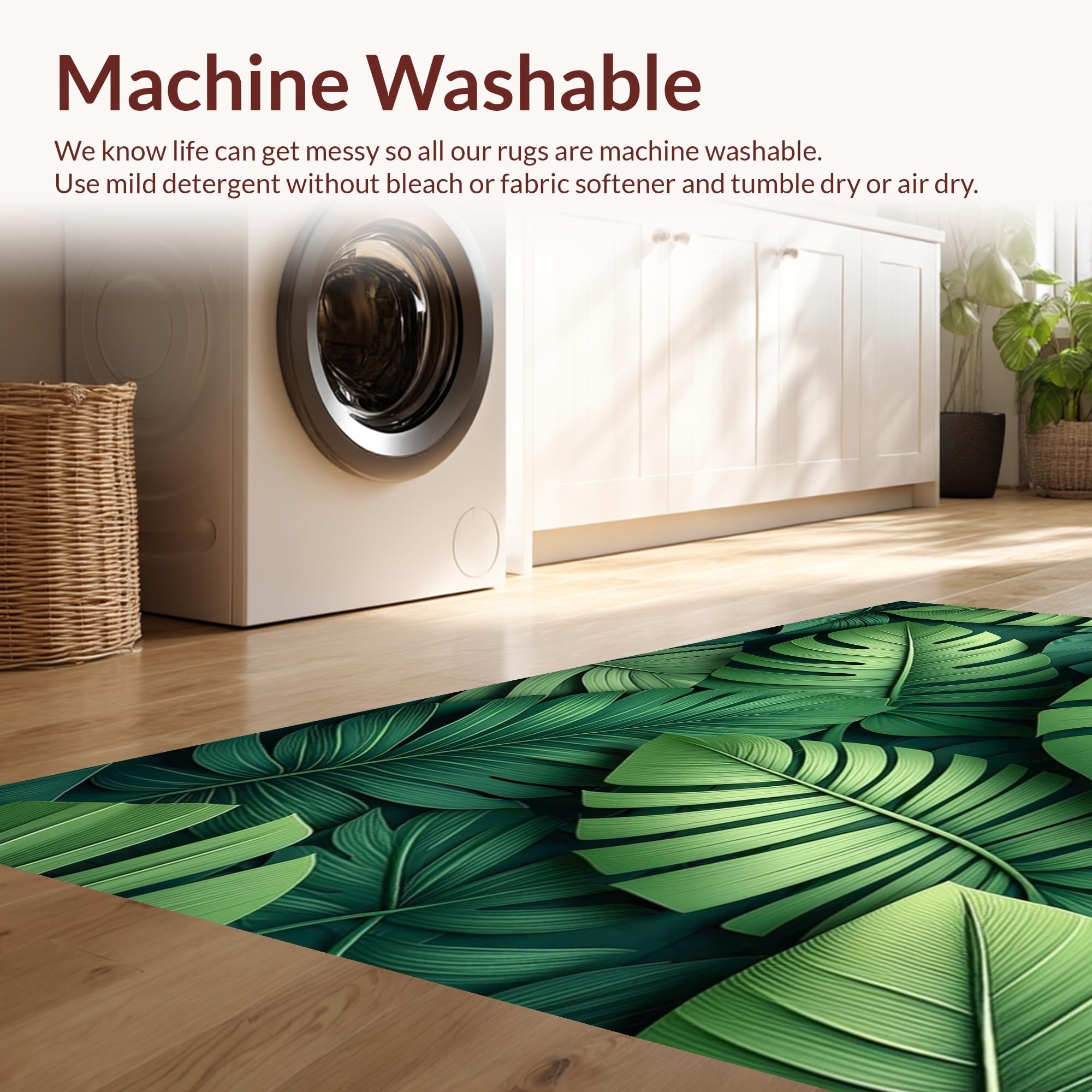 - Machine Washable: Our rugs can be easily thrown in the wash machine.
