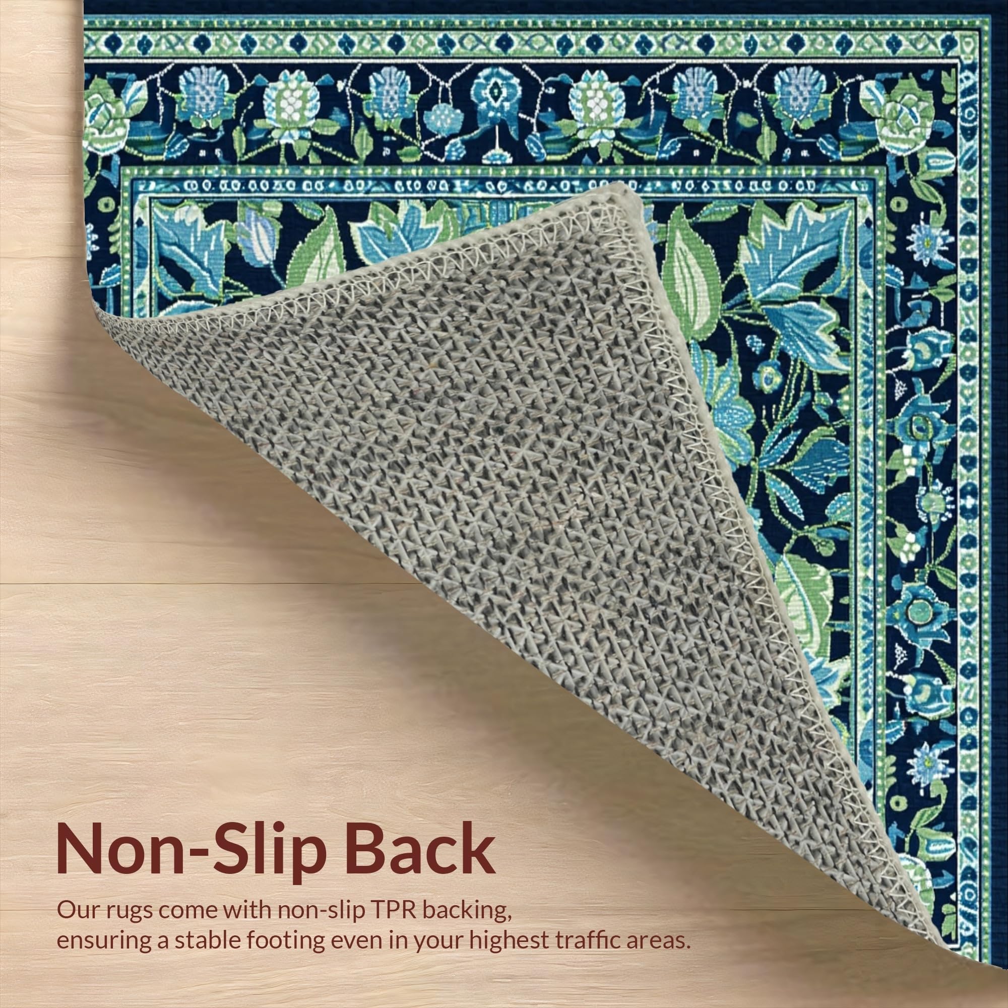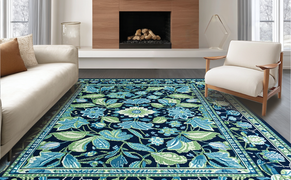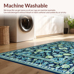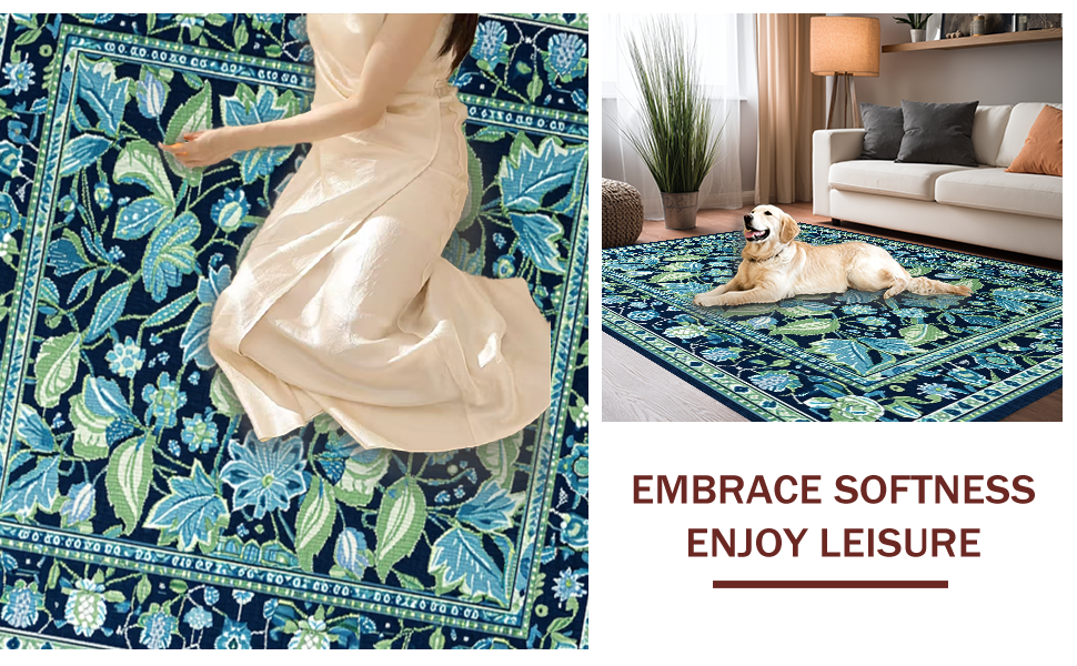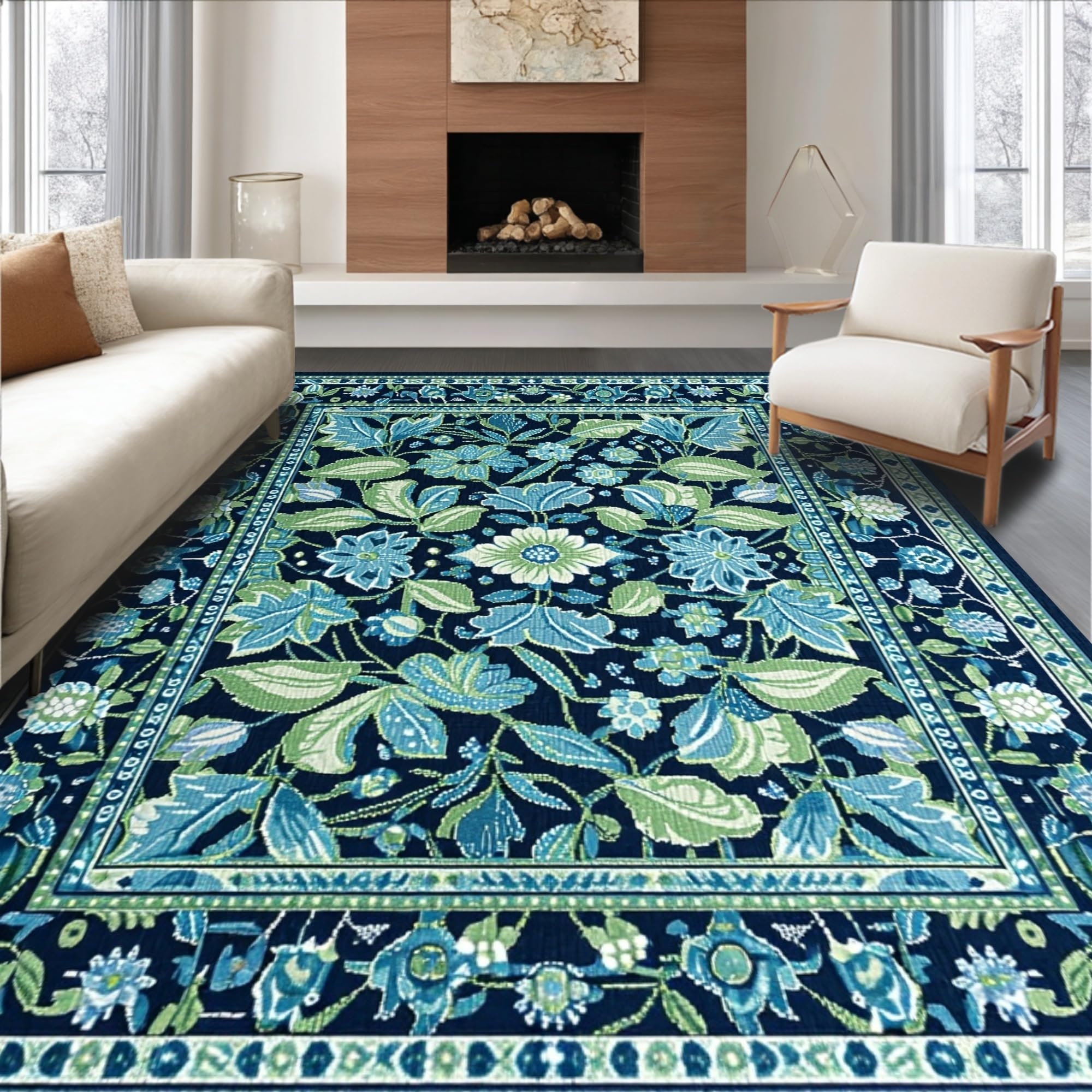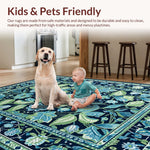 Ultra Soft Area Rug, Non Slip, Stain Resistant, Washable Area Rugs for Living Room, Bedroom, Vibrant Leafy Coastal Aesthetic(Blue) Overview: