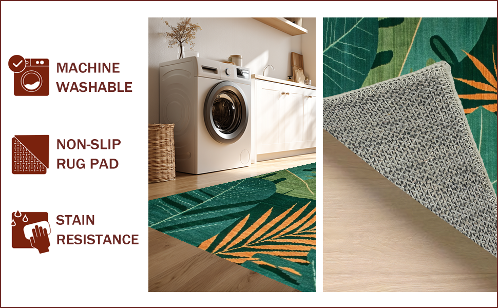 Ultra Soft Area Rug, Non Slip, Stain Resistant, Washable Area Rugs for Living Room, Bedroom, Vibrant Leafy Oasis Style(Green) Overview: