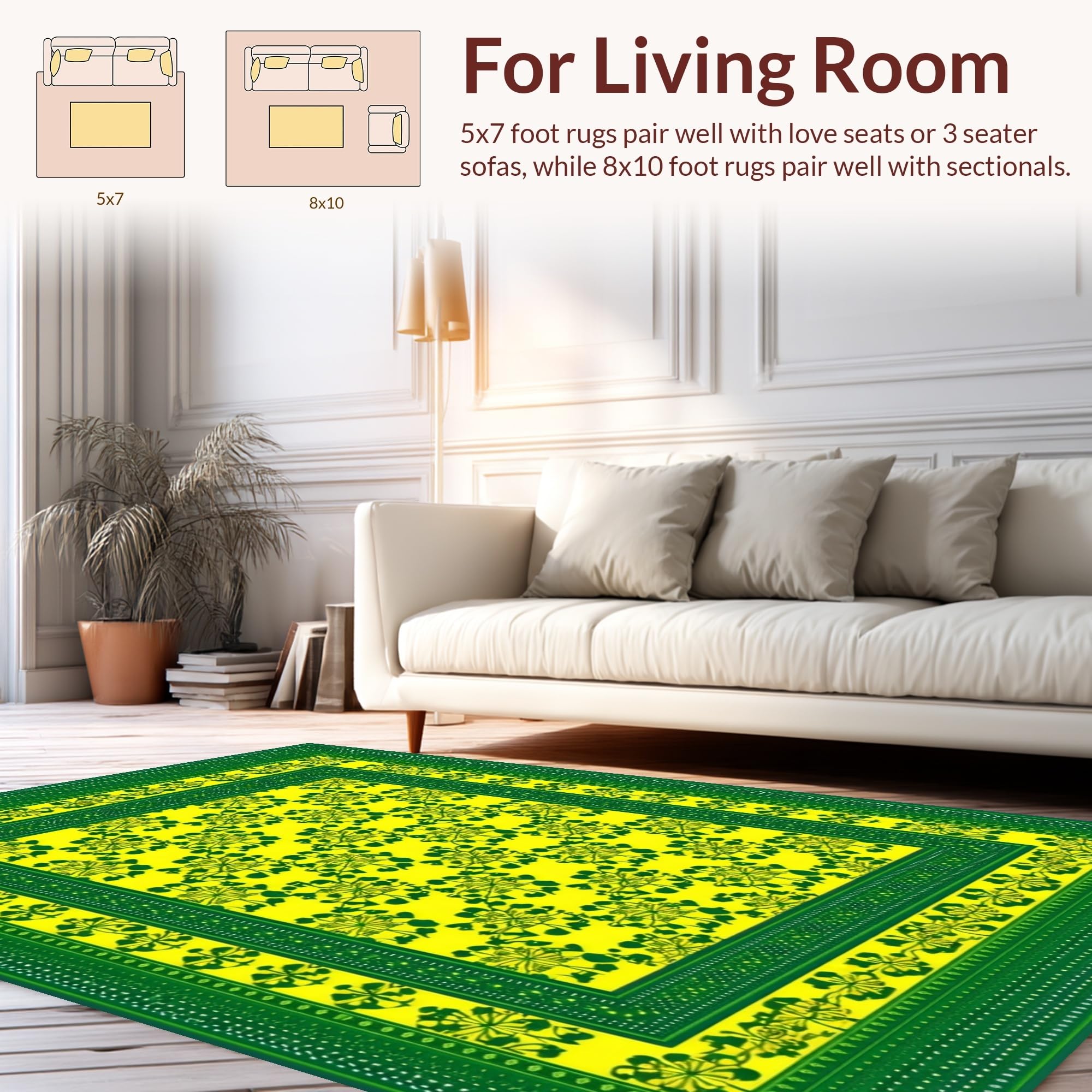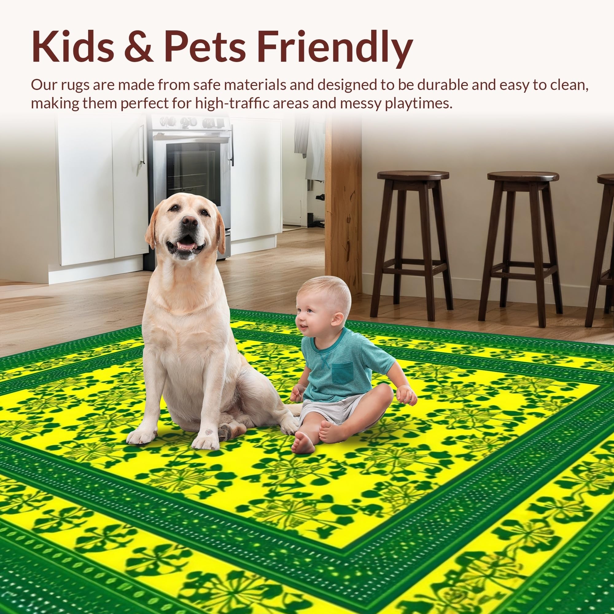 Ultra Soft Area Rug, Non Slip, Stain Resistant, Washable Area Rugs for Living Room, Bedroom, Vibrant Lucky Clover Design(Green) Overview: