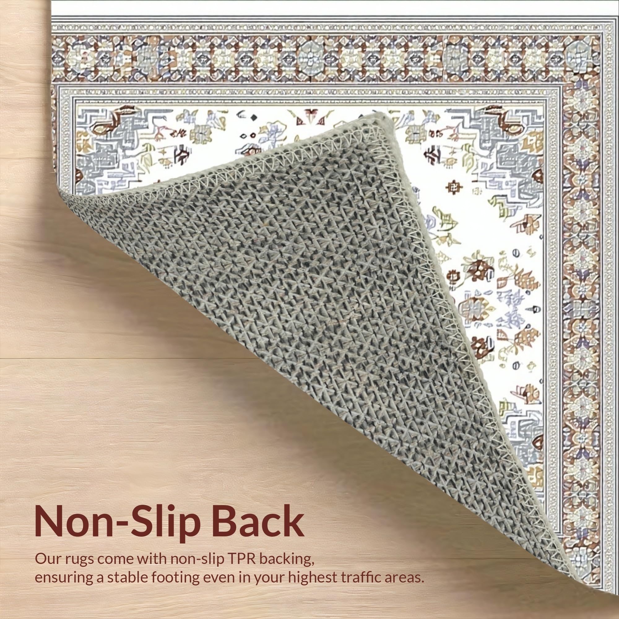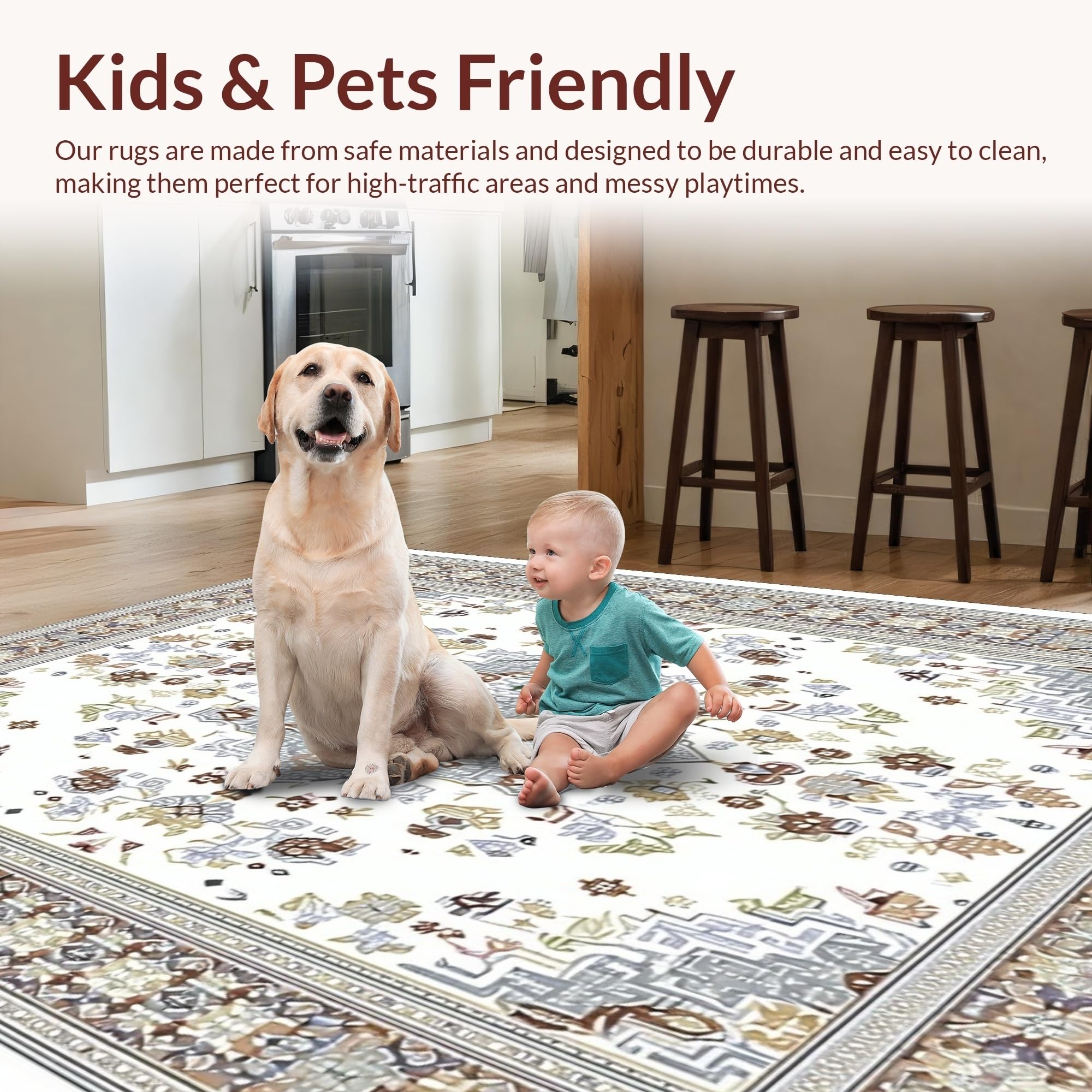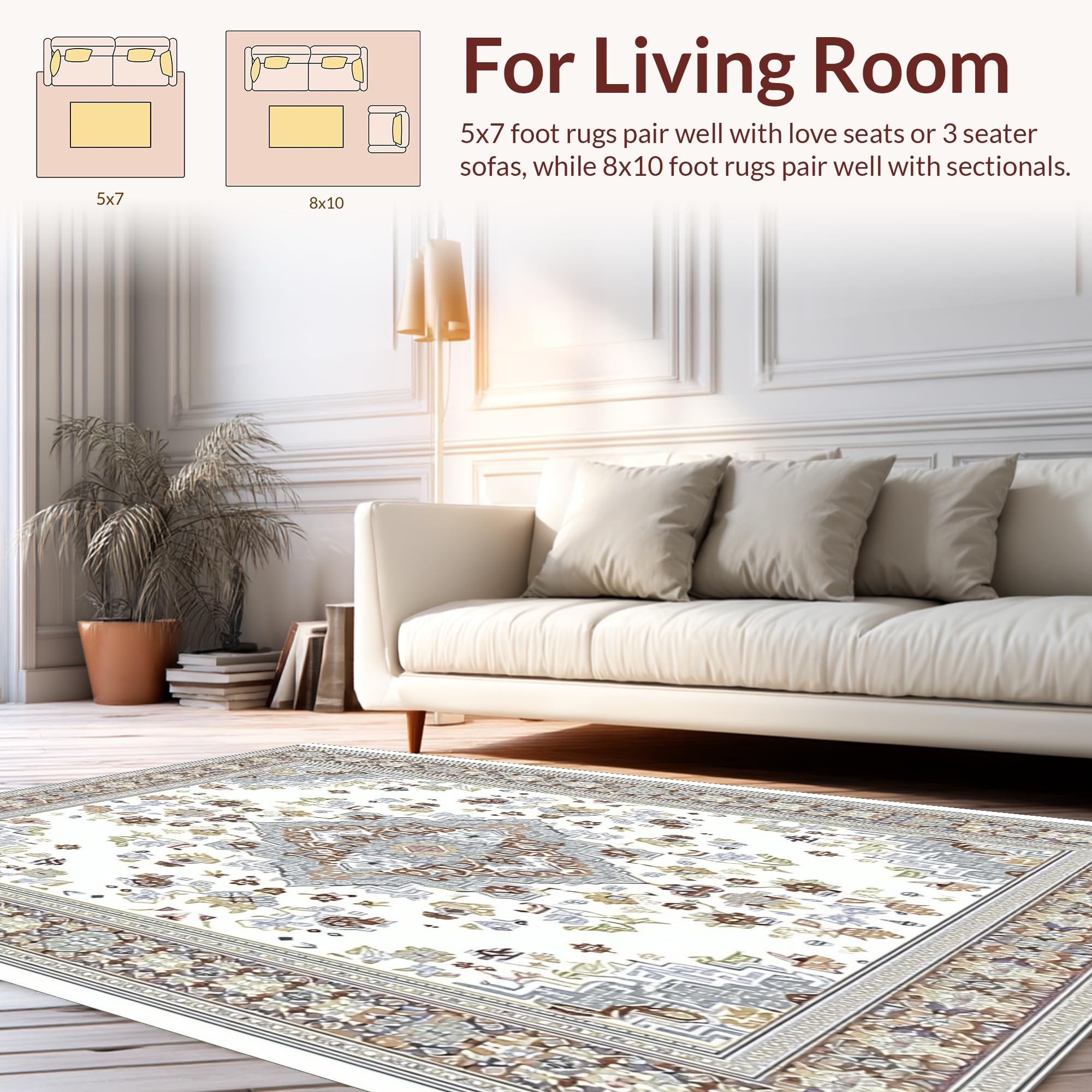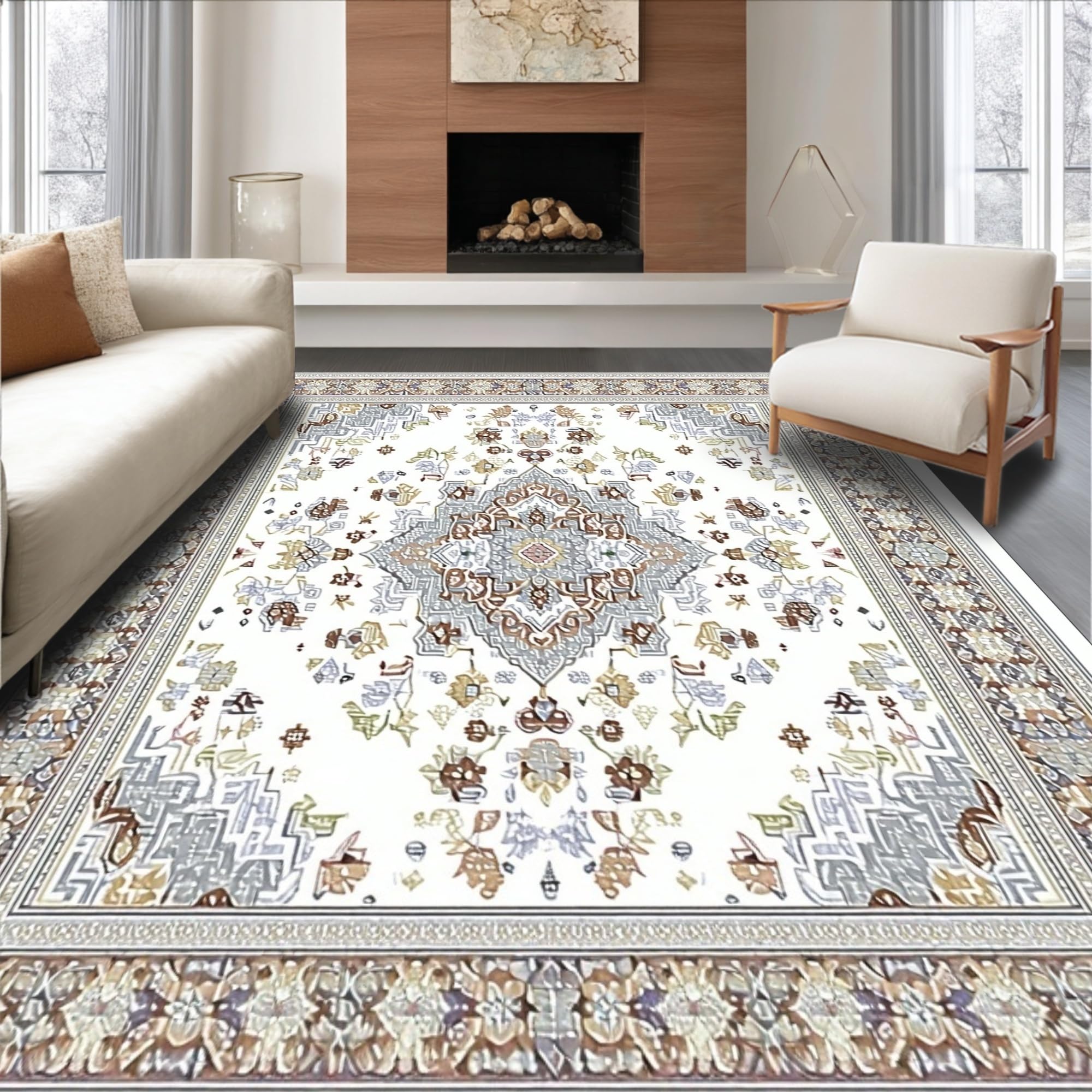 Ultra Soft Area Rug, Non Slip, Stain Resistant, Washable Area Rugs for Living Room, Bedroom, Vibrant Luxurious Medallion Theme(White) Overview: