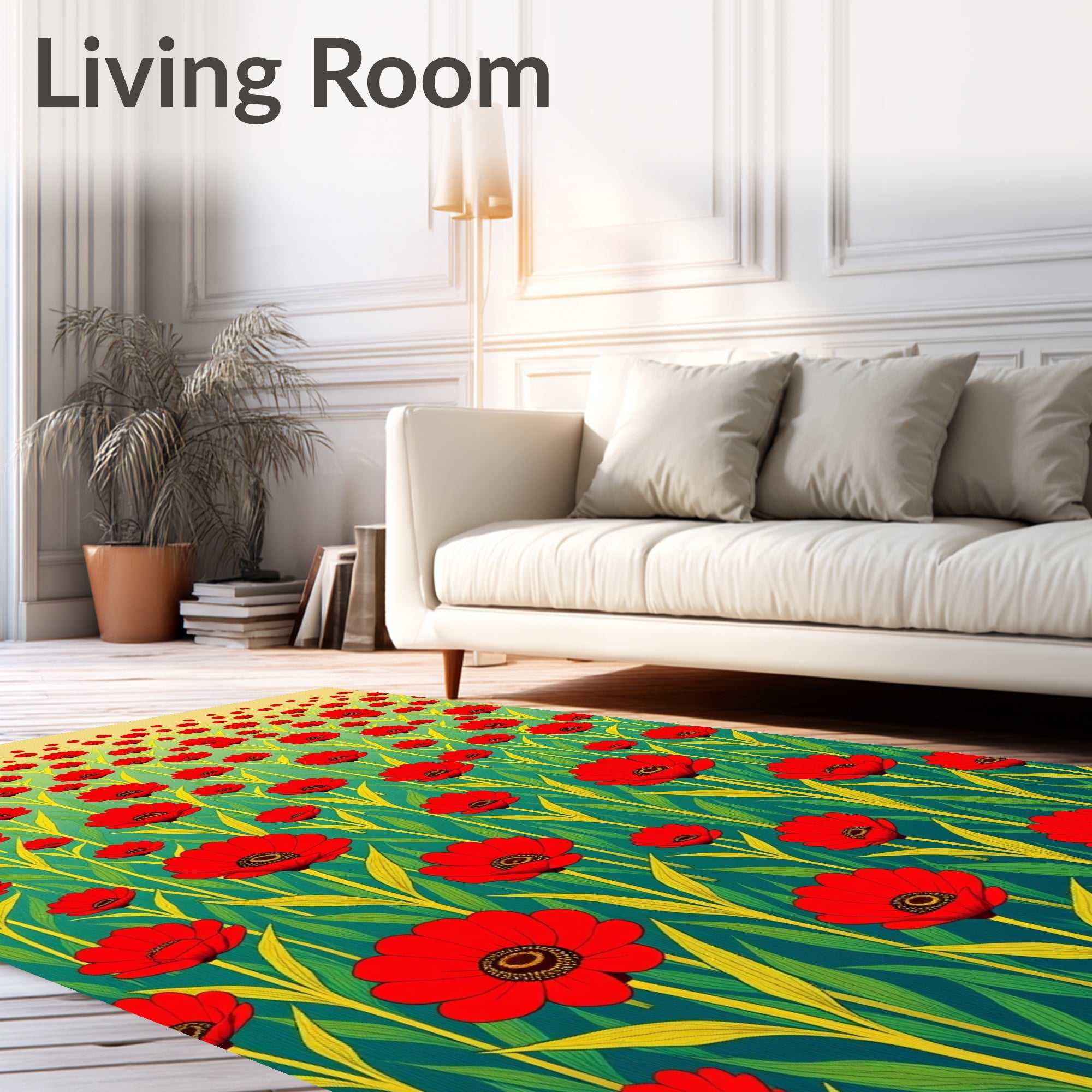 Ultra Soft Area Rug, Non Slip, Stain Resistant, Washable Area Rugs for Living Room, Bedroom, Vibrant Meadow Symphony Collection(Red) Overview: