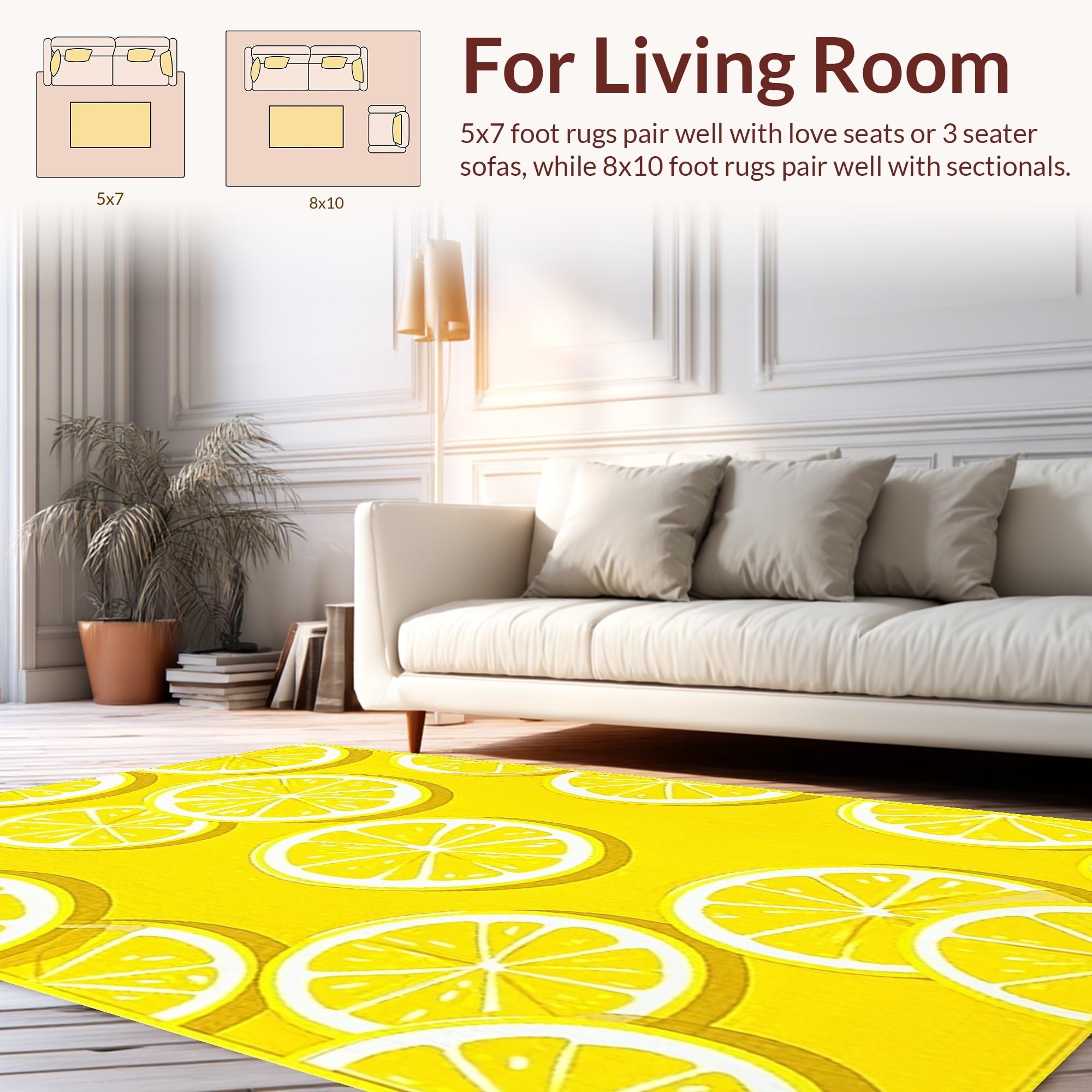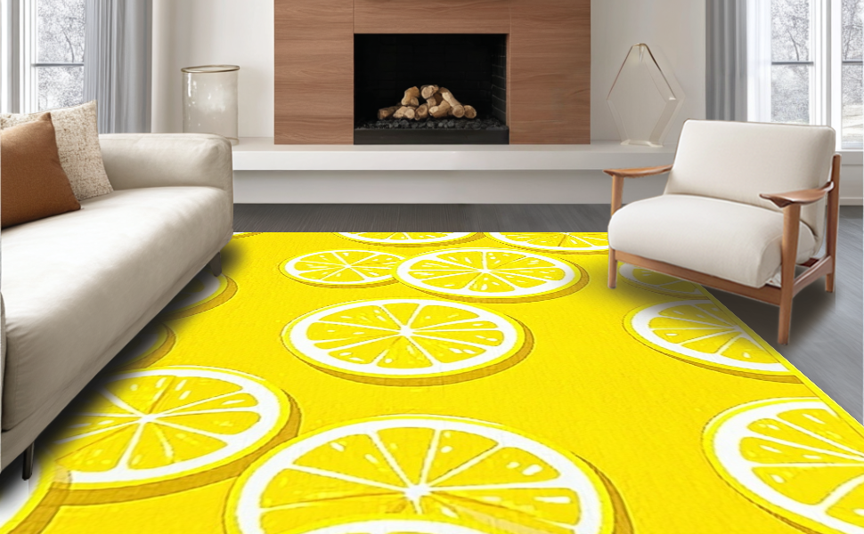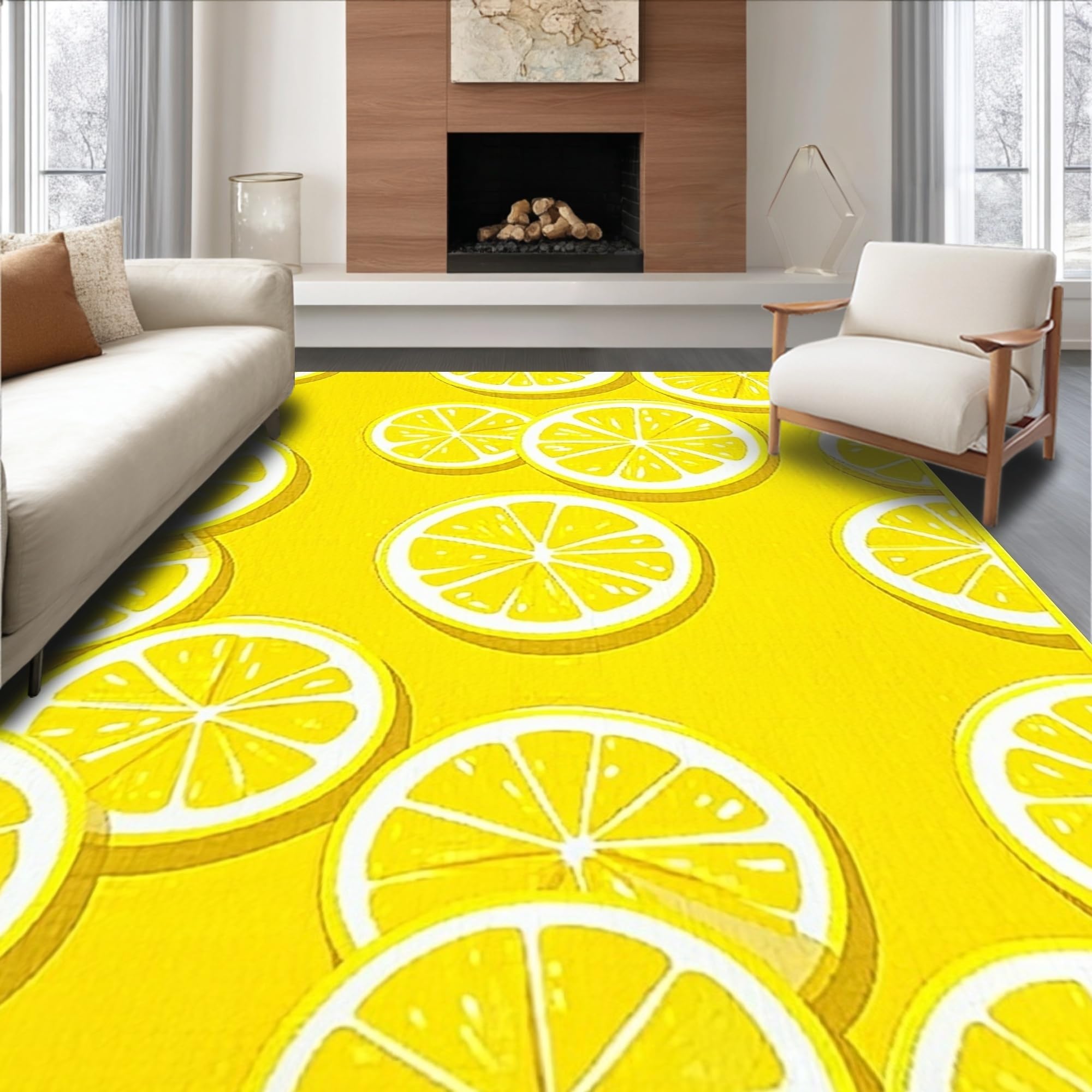 Ultra Soft Area Rug, Non Slip, Stain Resistant, Washable Area Rugs for Living Room, Bedroom, Vibrant Minimalist Fruit Theme(Yellow) Overview: