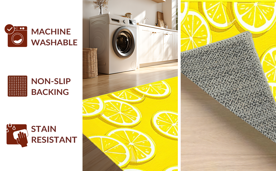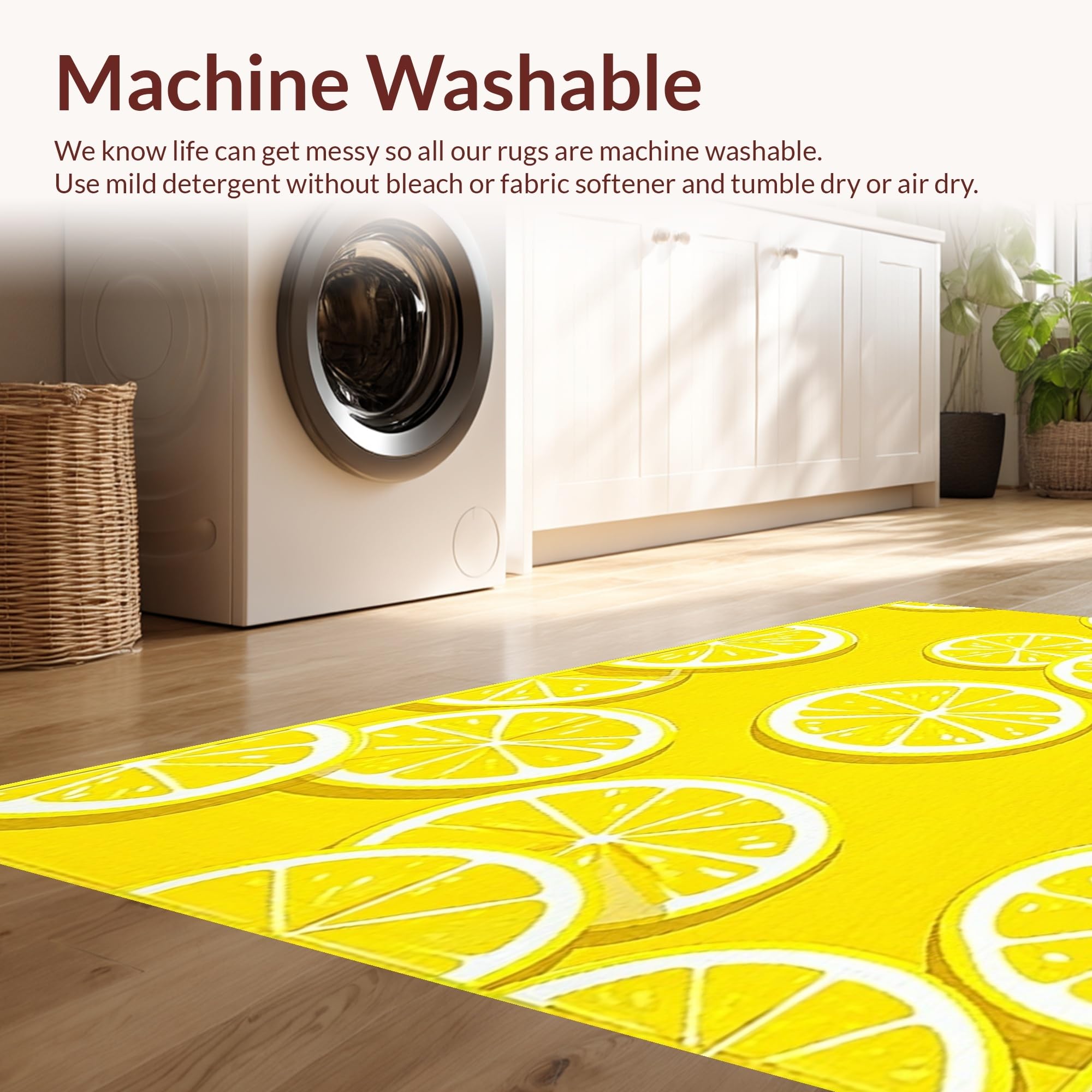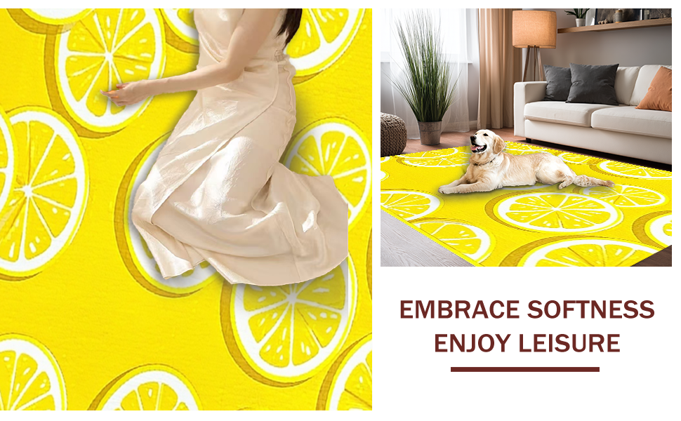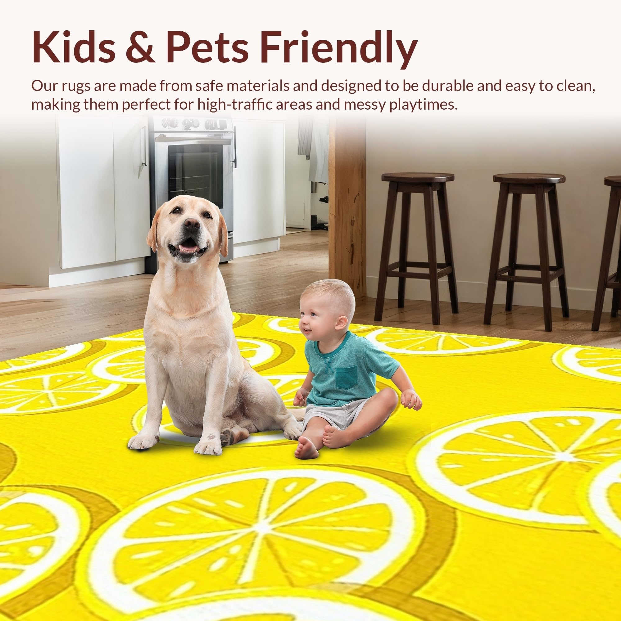 Ultra Soft Area Rug, Non Slip, Stain Resistant, Washable Area Rugs for Living Room, Bedroom, Vibrant Minimalist Fruit Theme(Yellow) Overview: