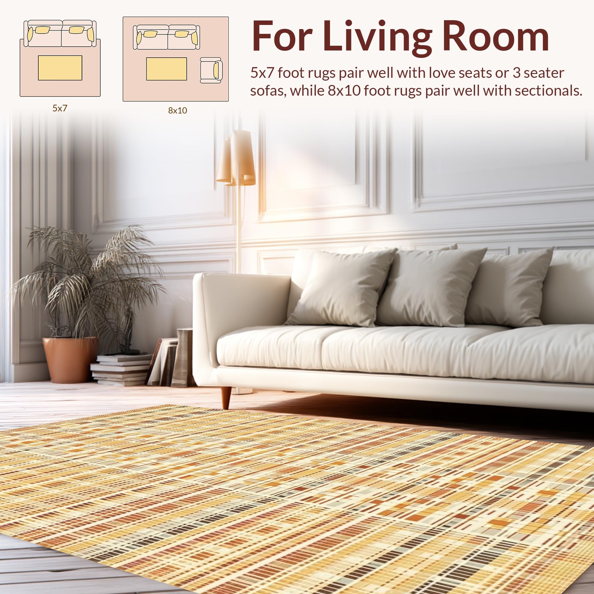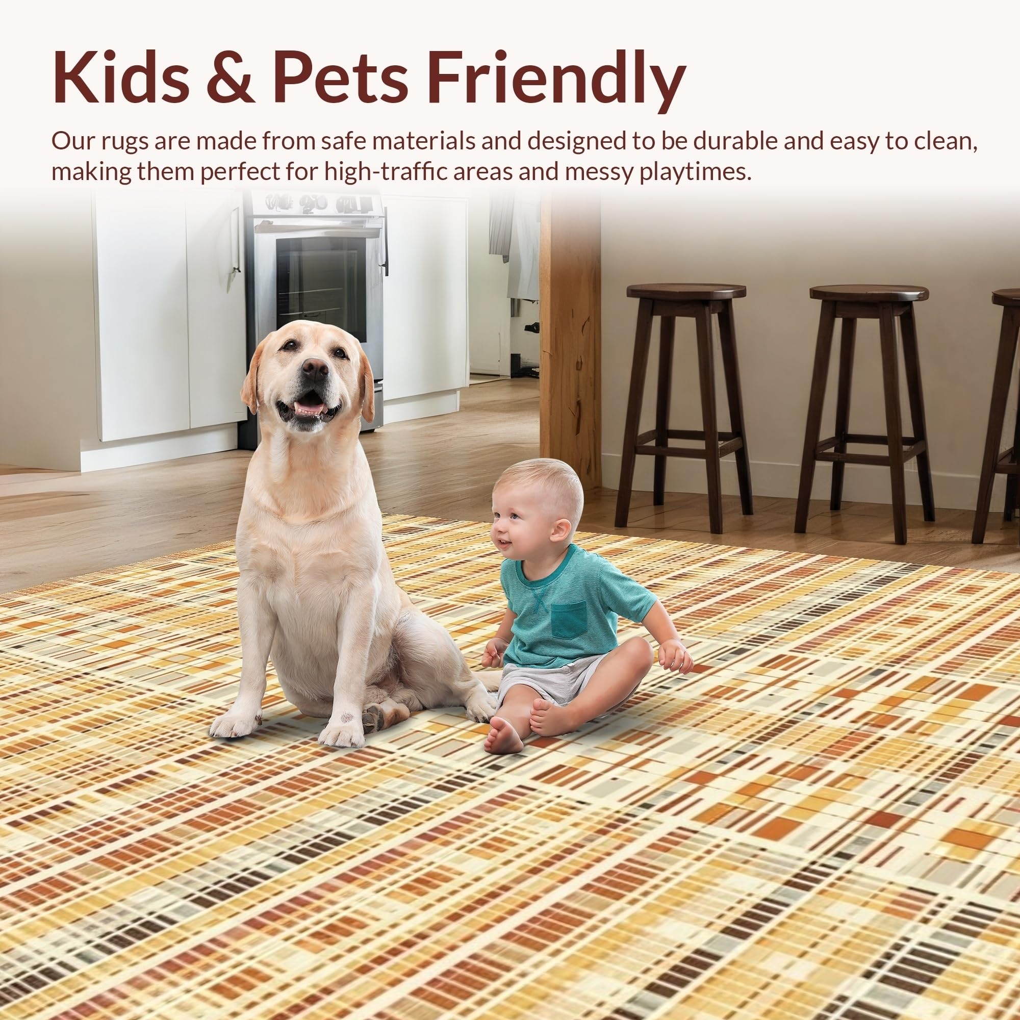 Ultra Soft Area Rug, Non Slip, Stain Resistant, Washable Area Rugs for Living Room, Bedroom, Vibrant Minimalist Geometric Theme(Beige) Overview: