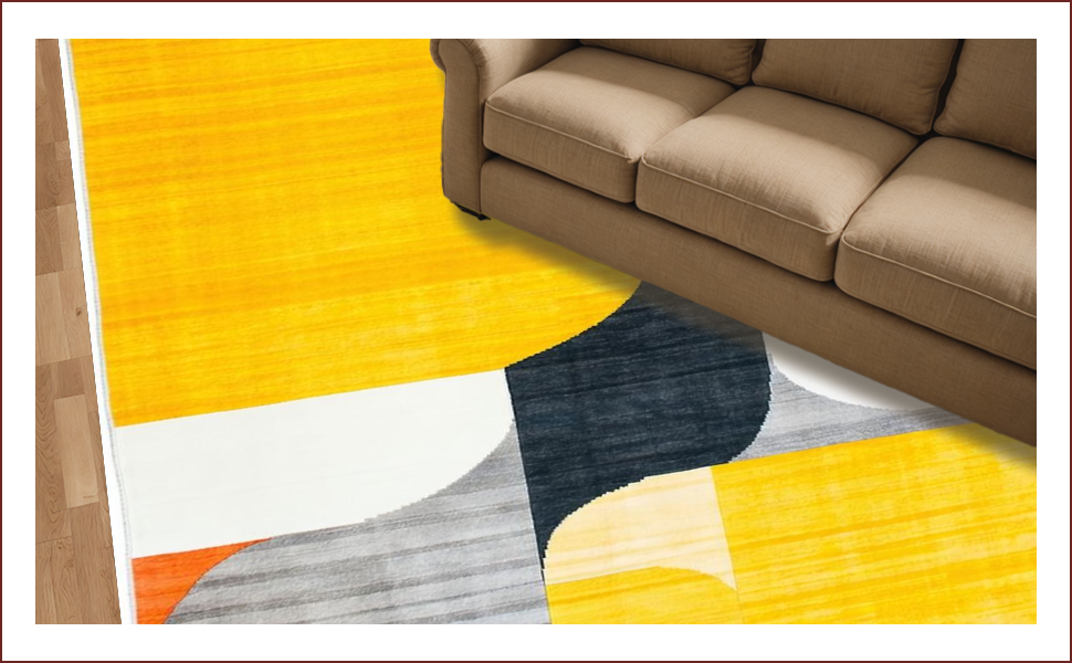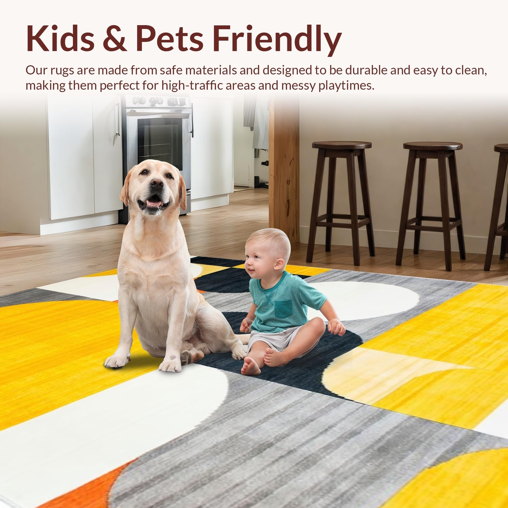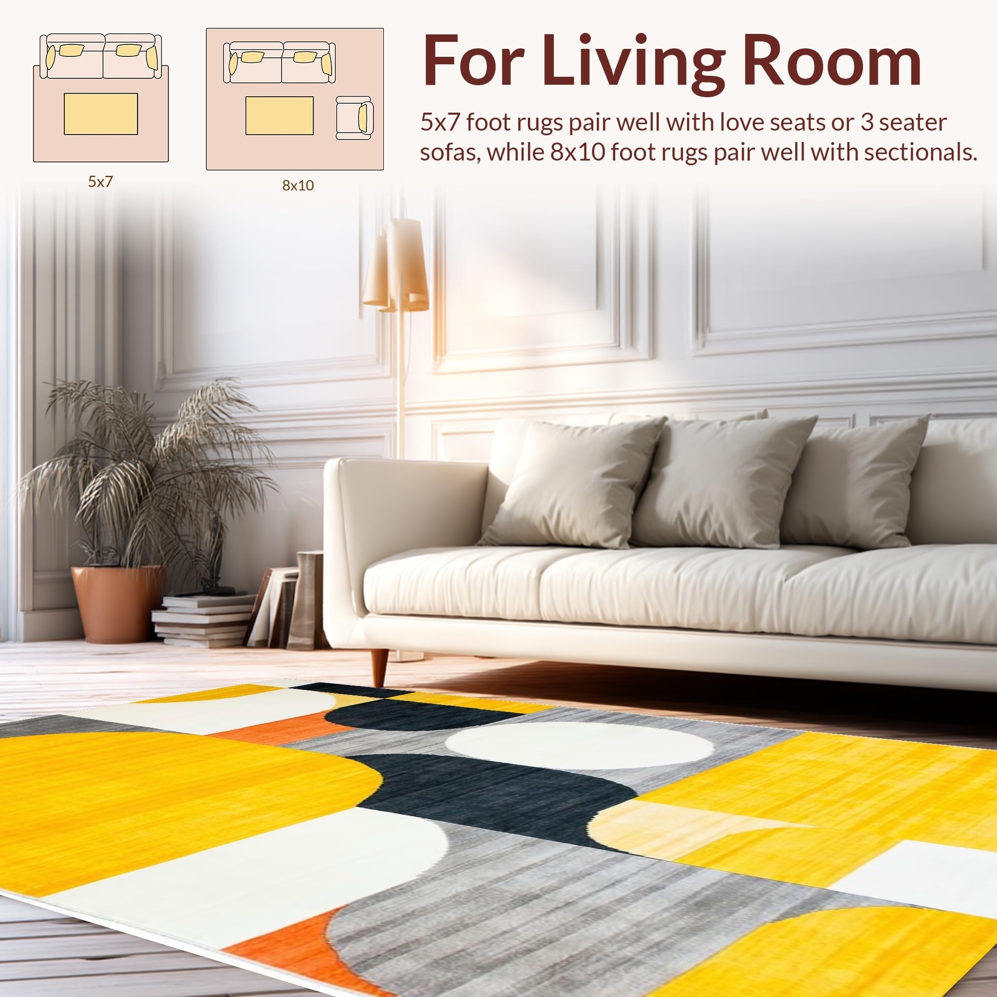 Ultra Soft Area Rug, Non Slip, Stain Resistant, Washable Area Rugs for Living Room, Bedroom, Vibrant Modern Abstract Composition(Yellow) Overview: