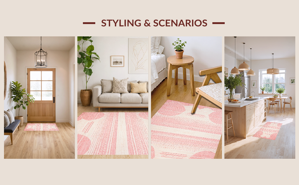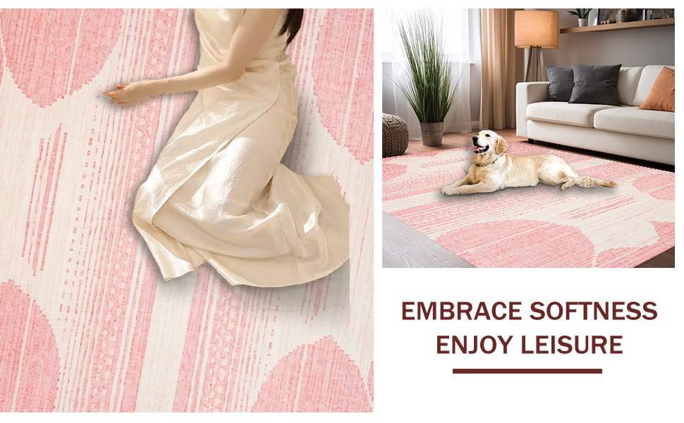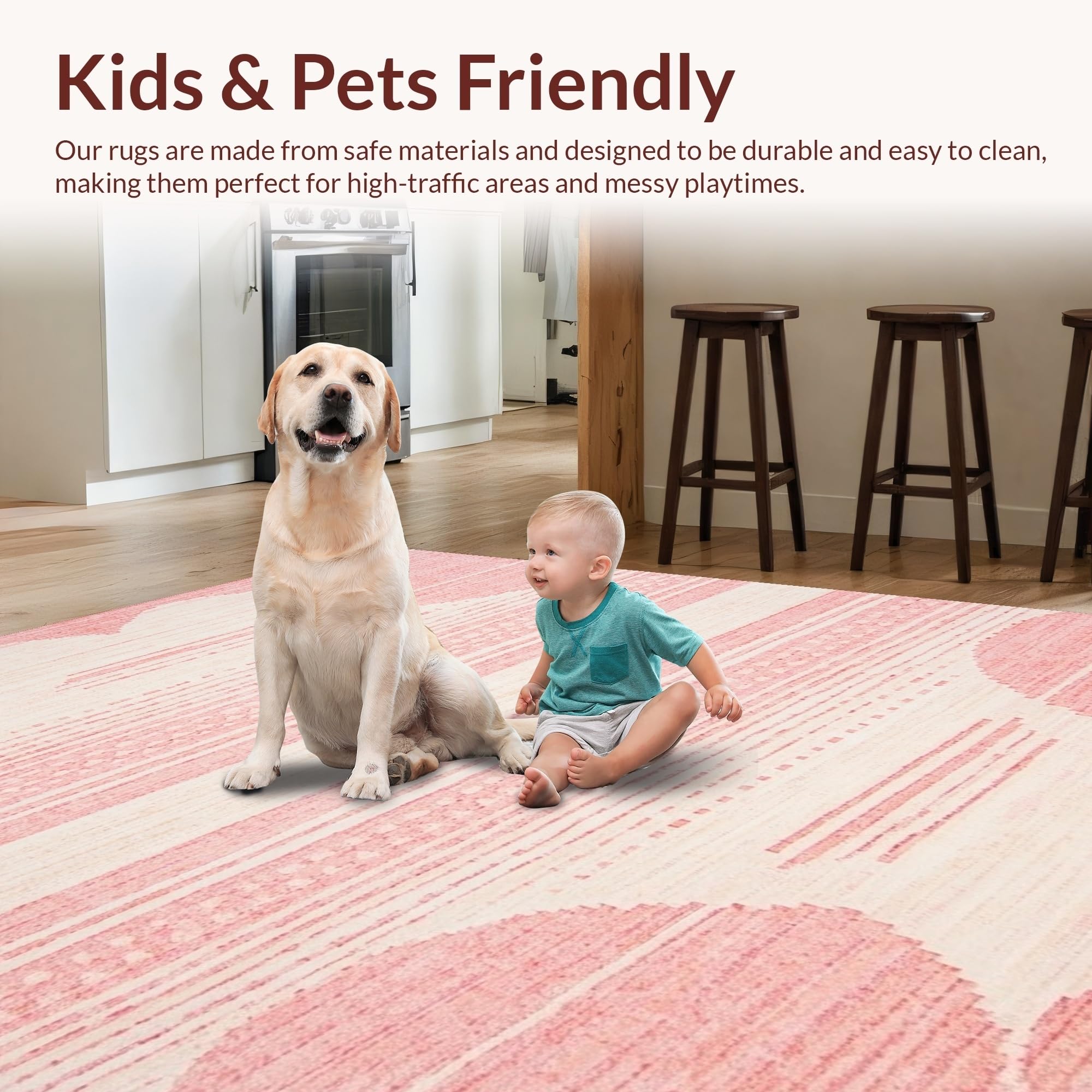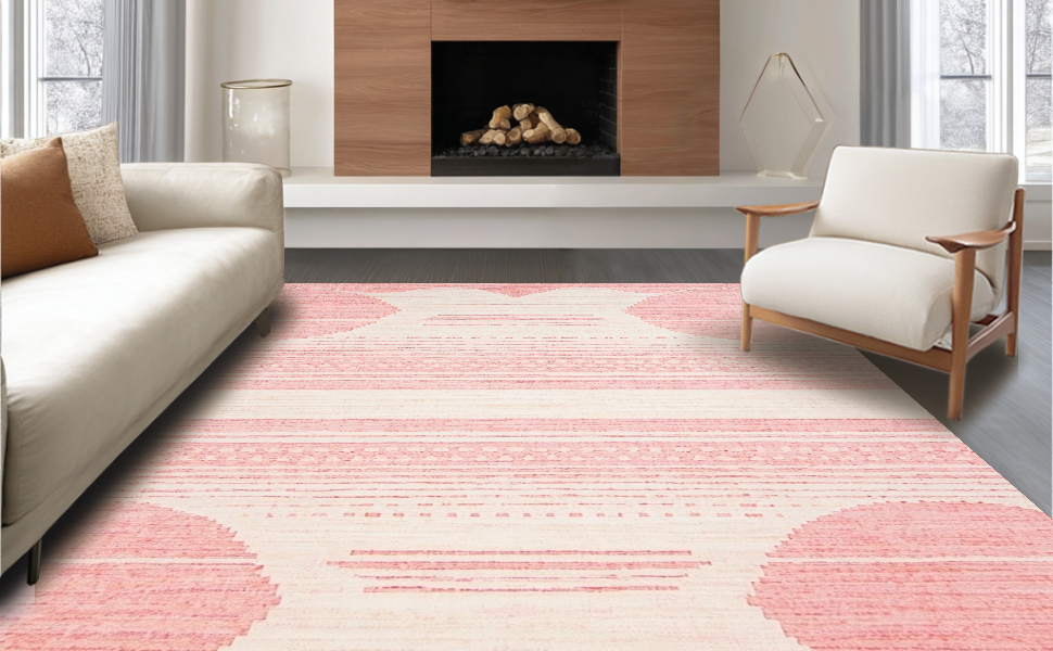 Ultra Soft Area Rug, Non Slip, Stain Resistant, Washable Area Rugs for Living Room, Bedroom, Vibrant Modern Scalloped Silhouette(Pink) Overview: