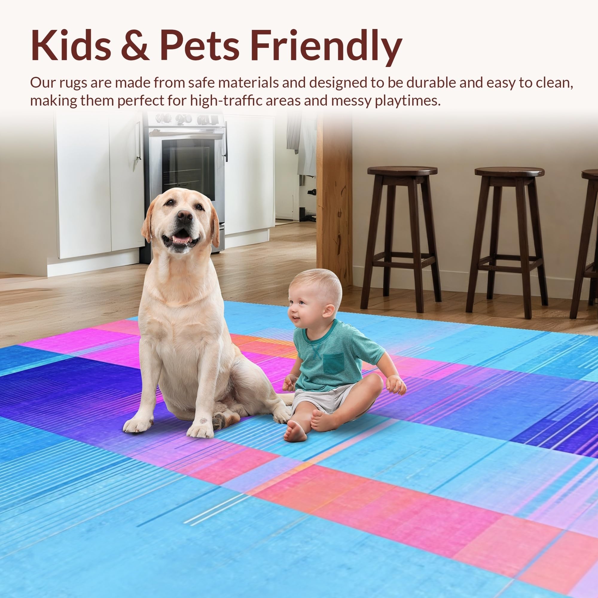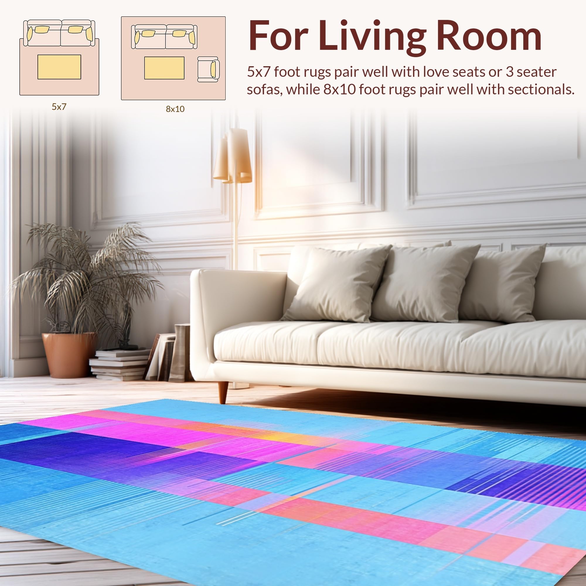 Ultra Soft Area Rug, Non Slip, Stain Resistant, Washable Area Rugs for Living Room, Bedroom, Vibrant Modern Swirling Patterns(Blue) Overview: