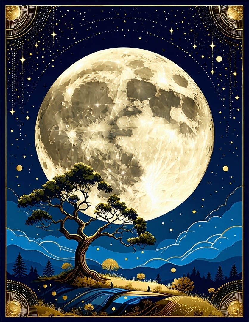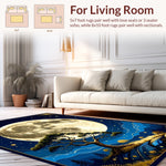 Flatwoven High Traffic Area Rug, Vibrant Moonlit Nature Scene, Non Slip, Stain Resistant, Washable Area Rugs for Living Room, Bedroom (Gold) Overview: