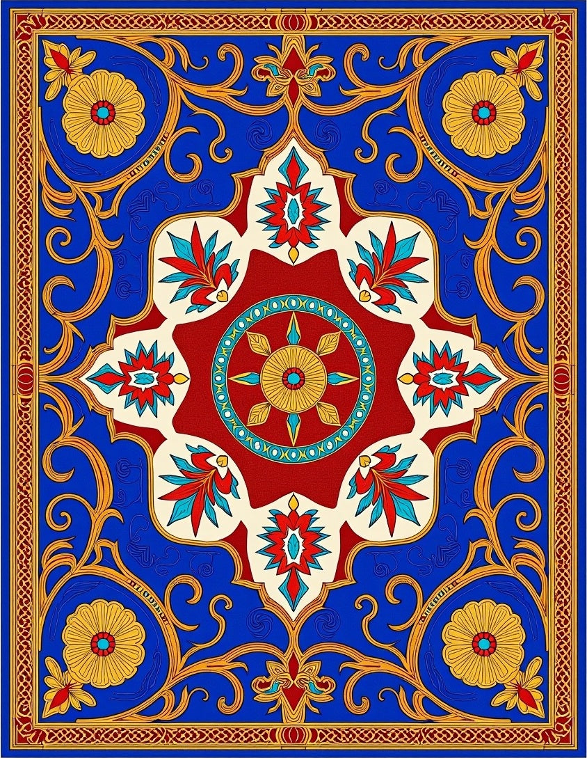 Vibrant Mosaic Tapestry Medallion Swirl Interlacing Design(Blue)