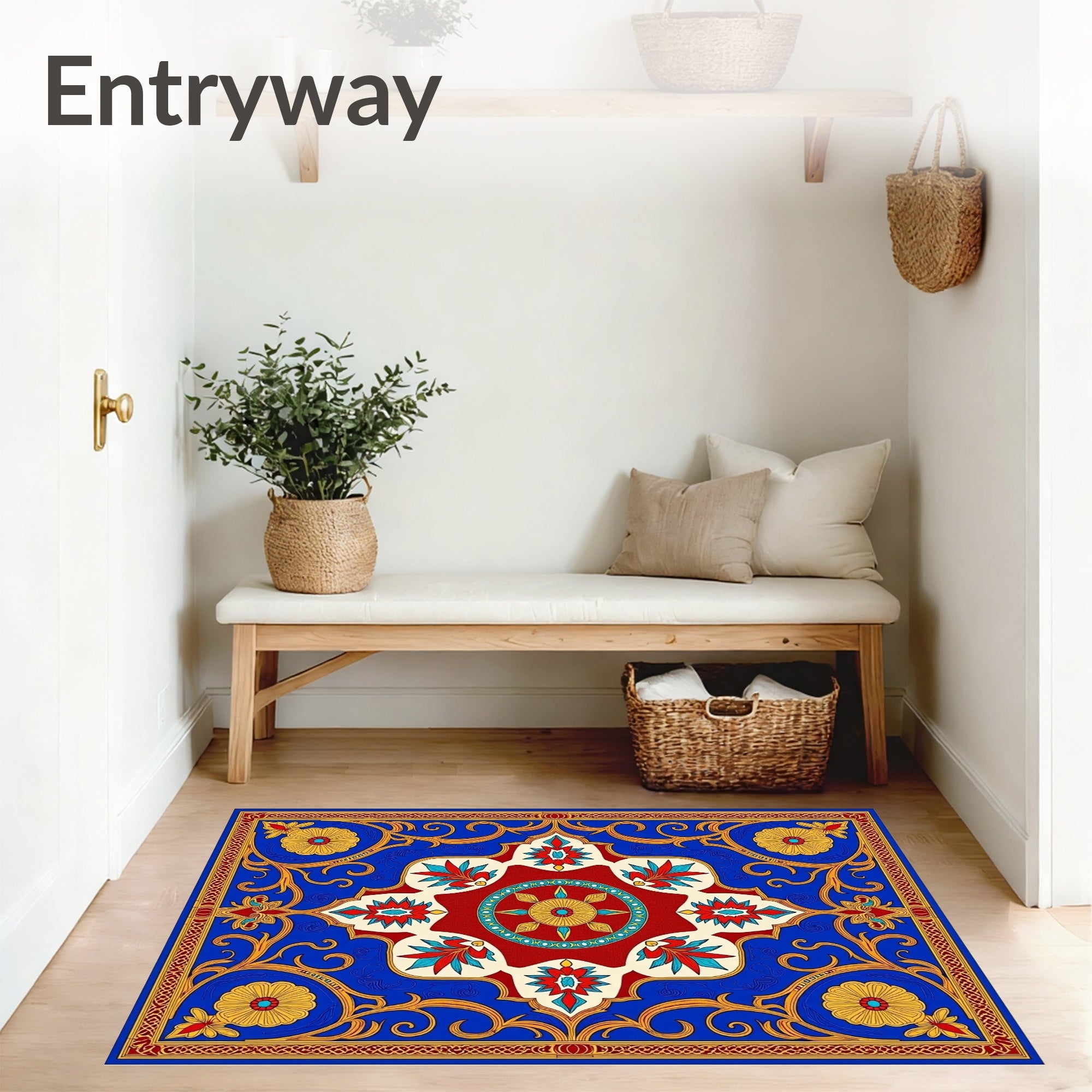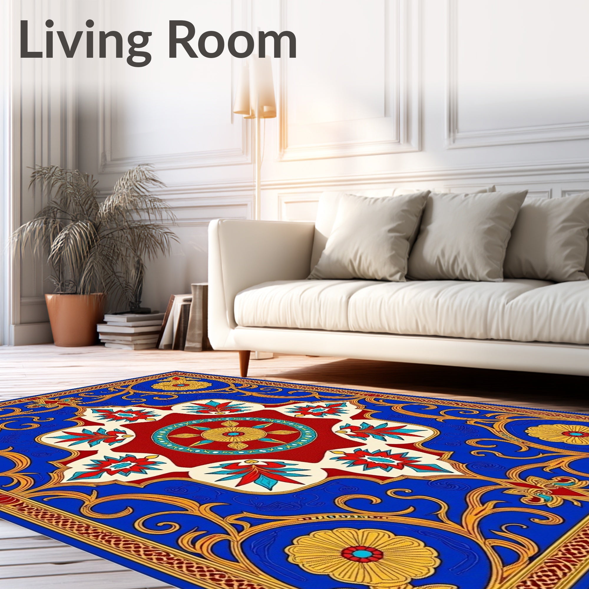 Ultra Soft Area Rug, Non Slip, Stain Resistant, Washable Area Rugs for Living Room, Bedroom, Vibrant Mosaic Tapestry Medallion Swirl Interlacing Design(Blue) Overview: