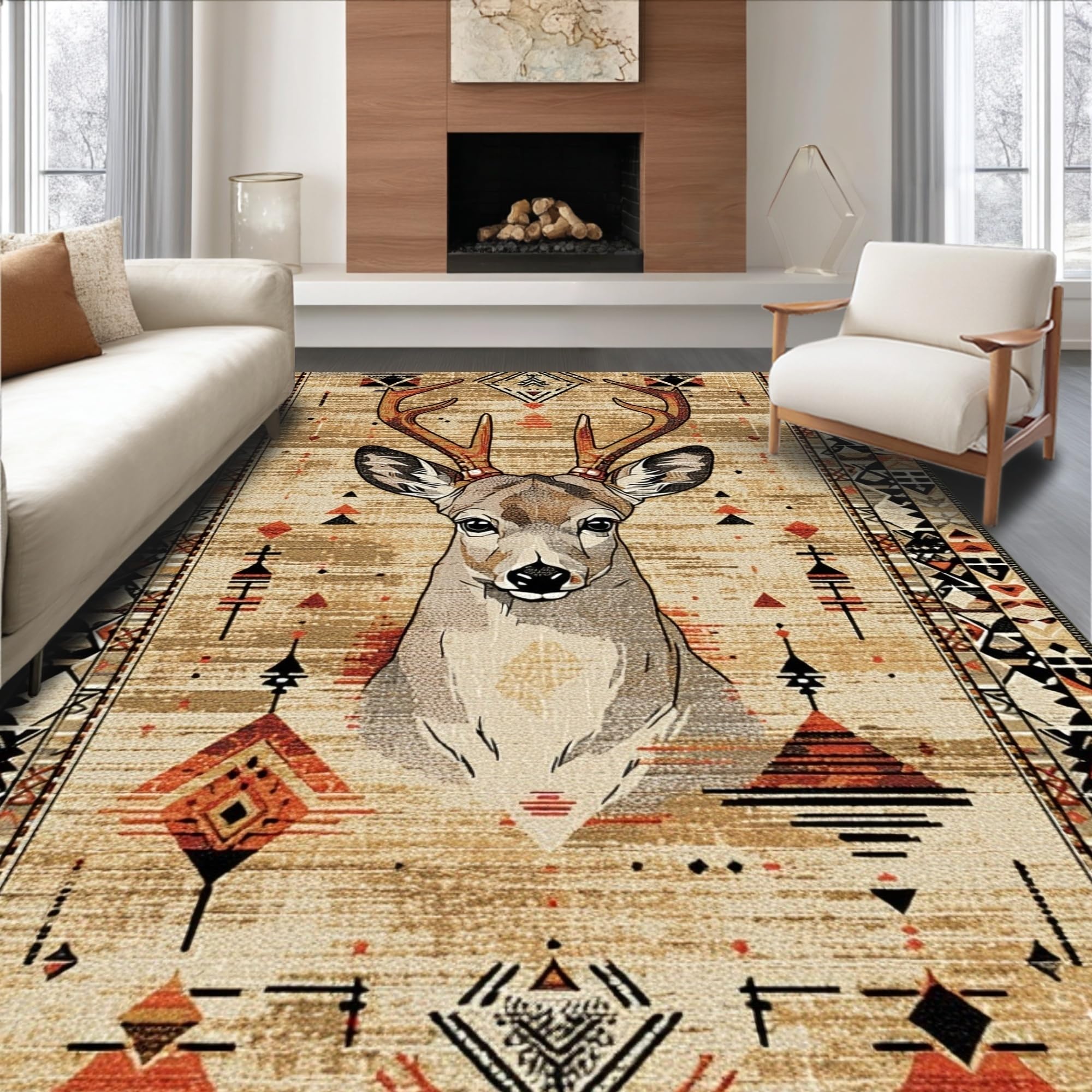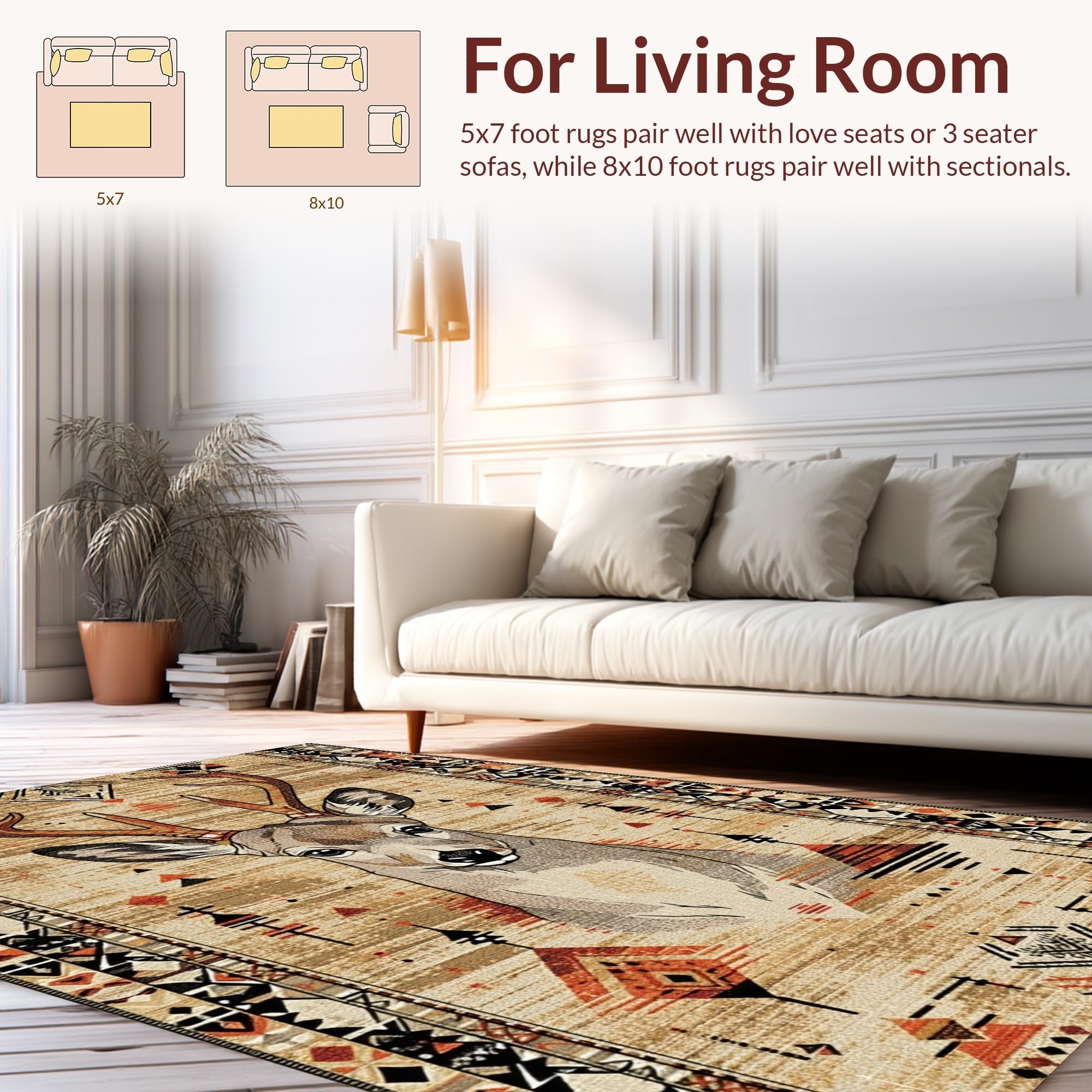 Ultra Soft Area Rug, Non Slip, Stain Resistant, Washable Area Rugs for Living Room, Bedroom, Vibrant Natural Palette Animal Print(Beige) Overview: