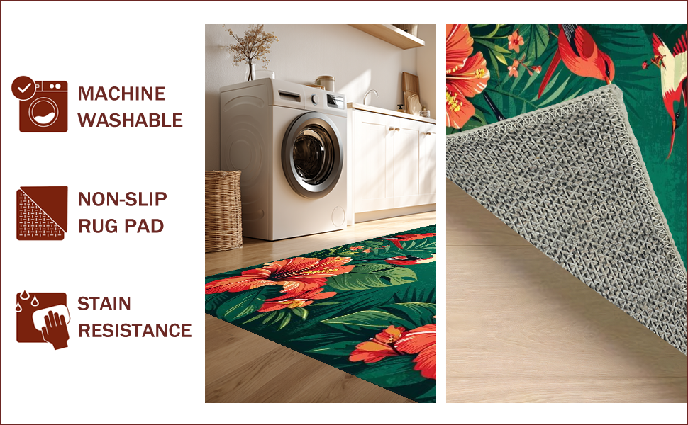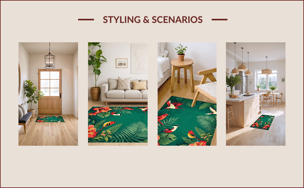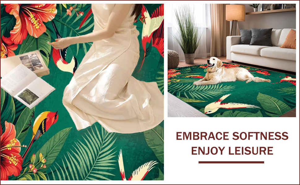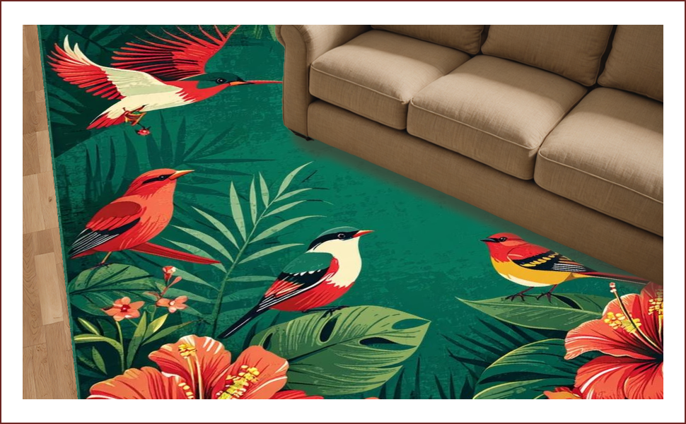 Ultra Soft Area Rug, Non Slip, Stain Resistant, Washable Area Rugs for Living Room, Bedroom, Vibrant Nature-Inspired Artistry(Red) Overview: