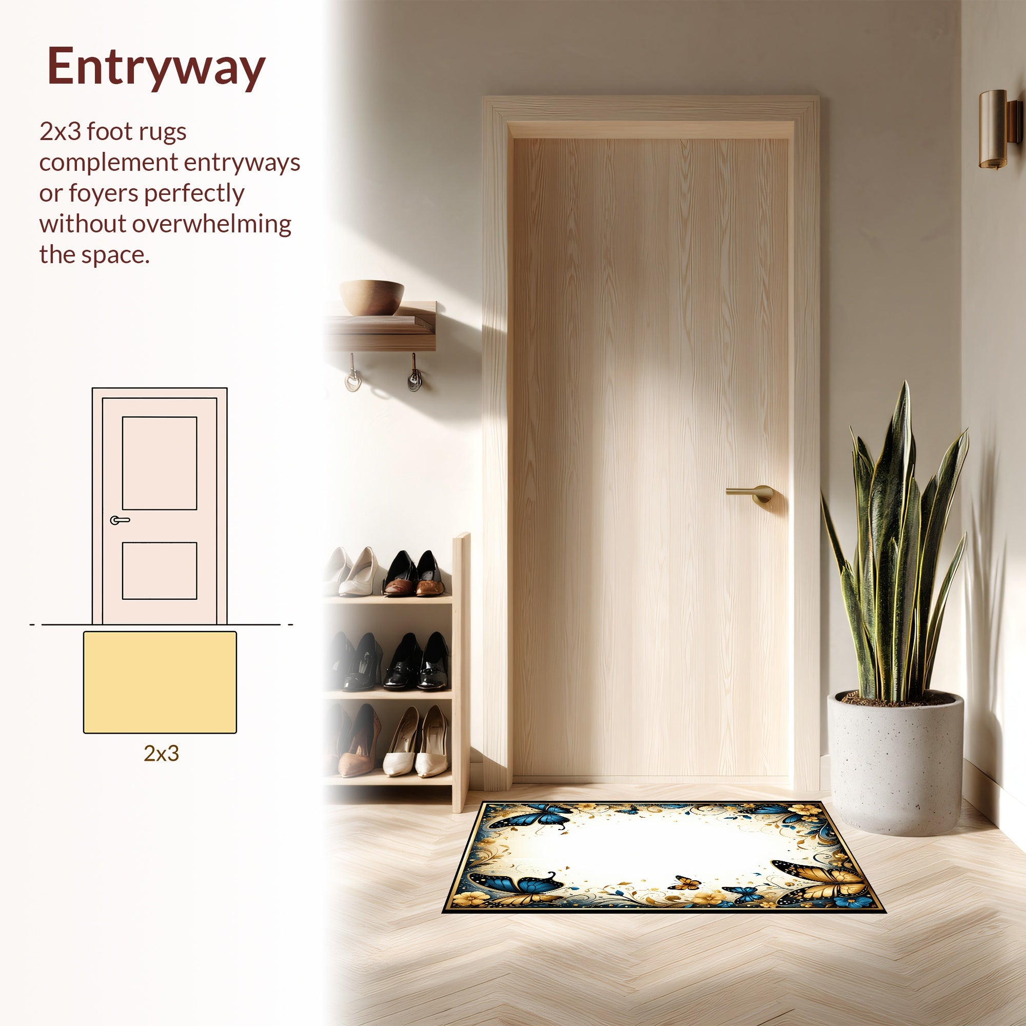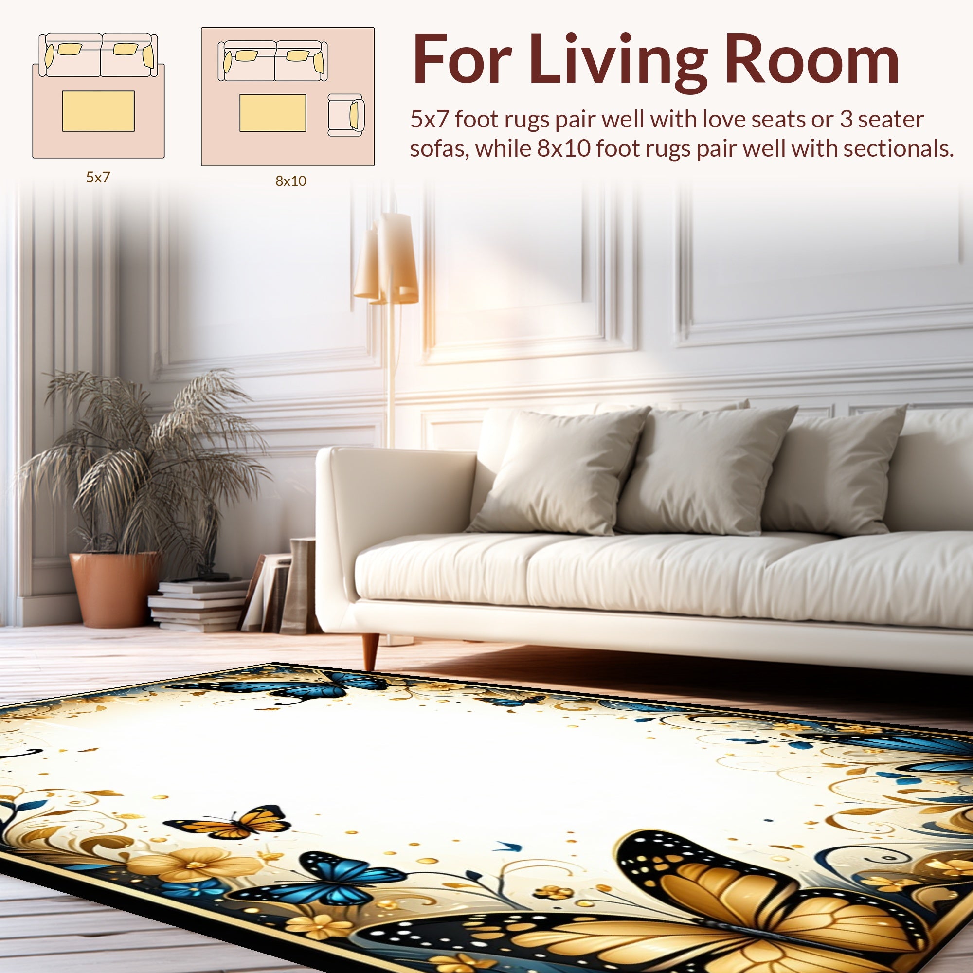 Flatwoven High Traffic Area Rug, Vibrant Nature Inspired Print, Non Slip, Stain Resistant, Washable Area Rugs for Living Room, Bedroom (Gold) Overview: